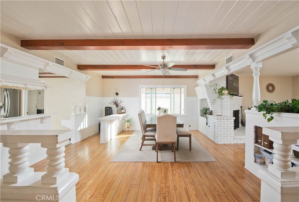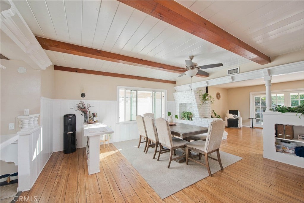 Charming Northridge Single-Story Home with Spacious Living! A long driveway welcomes you to this cozy and well-maintained single-story home in the heart of Northridge. Offering 1,774 square feet of comfortable living space on an expansive 8,973 square foot lot, this home boasts a thoughtful floorplan ideal for both everyday living and entertaining. Enjoy the warmth and character of original, refinished hardwood floors throughout, complemented by recessed lighting in the living room. Gather around the warm fireplace in the living room—perfect for family time, or entertaining. All bedrooms are thoughtfully situated on one side of the home, providing privacy and separation from the main living areas. Step through the sliding glass doors into your own spacious backyard, complete with a covered patio, a grassy yard, a charming dollhouse, and a versatile office/storage area—perfect for remote work or hobbies. Recent upgrades include copper plumbing and an updated shower in the main bathroom. Centrally located, this home offers easy access to shopping centers, dining, entertainment, public transportation, and major freeways, making it the perfect blend of comfort and convenience.