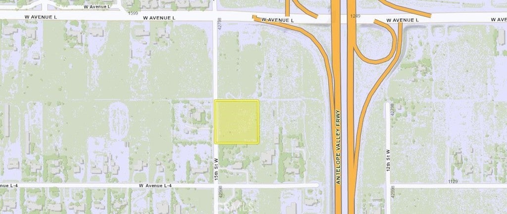 2.56 Acres level lot centrally located and close to all things Lancaster. Water Meter Installed. Block wall on East property line, chain-link fencing on the South property line. Surrounded by established custom homes. This lot is perfect for a Custom Home allowing for space and privacy and just a few minutes from Hospitals, Shopping and Restaurants. Conveniently located less than a 1,000' from the 14 Freeway Onramps. Traffic signal at 15th St W & Avenue L. Electric power poles are on 15th St W. Utilities are nearby (buyer to verify). This is a rare chance to own a sizable parcel in the City of Lancaster with everything you need just minutes away.