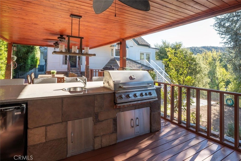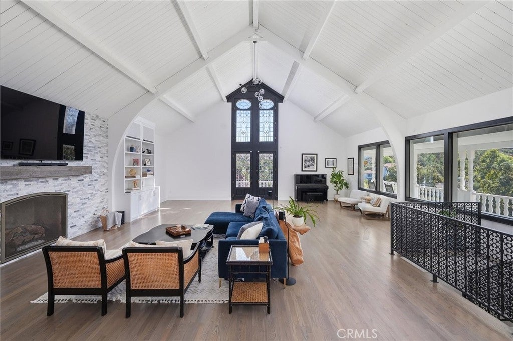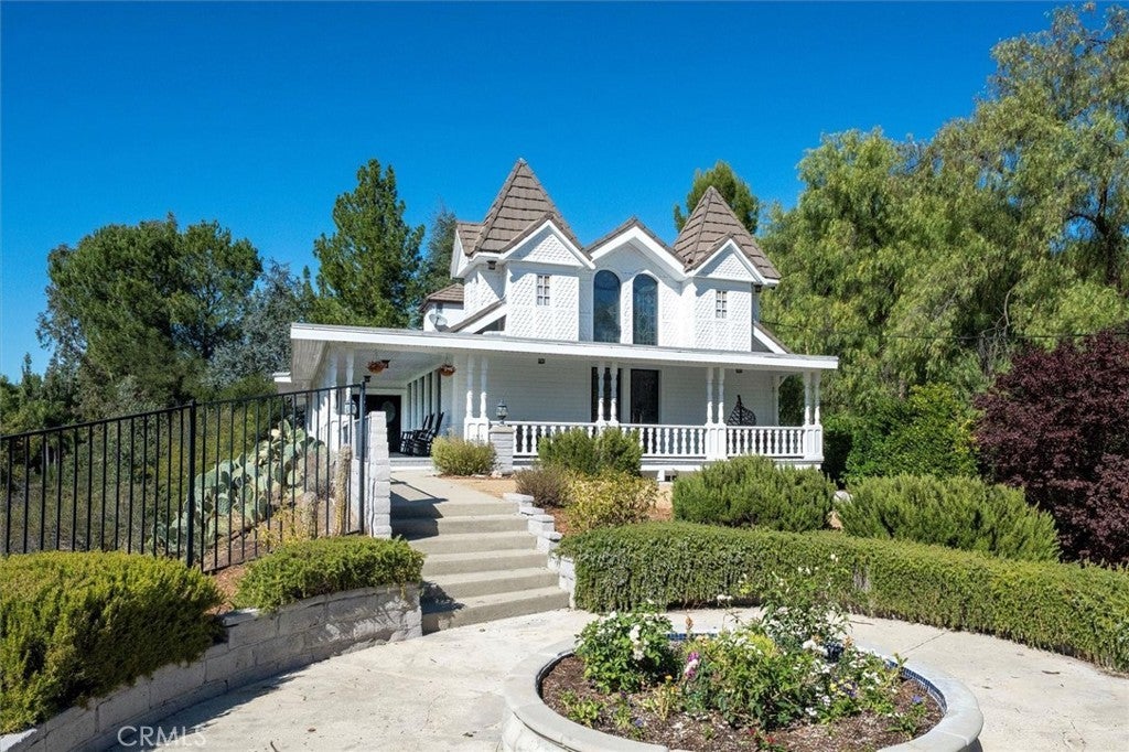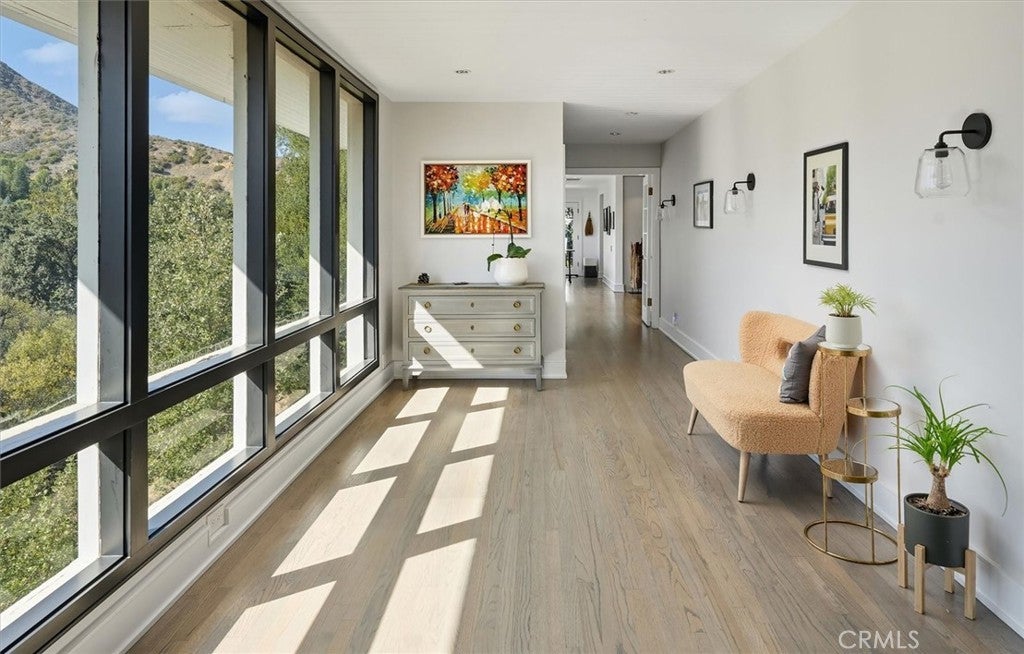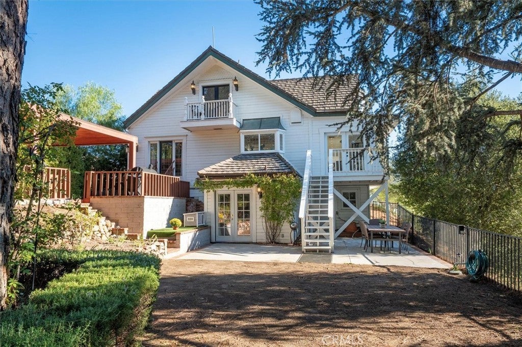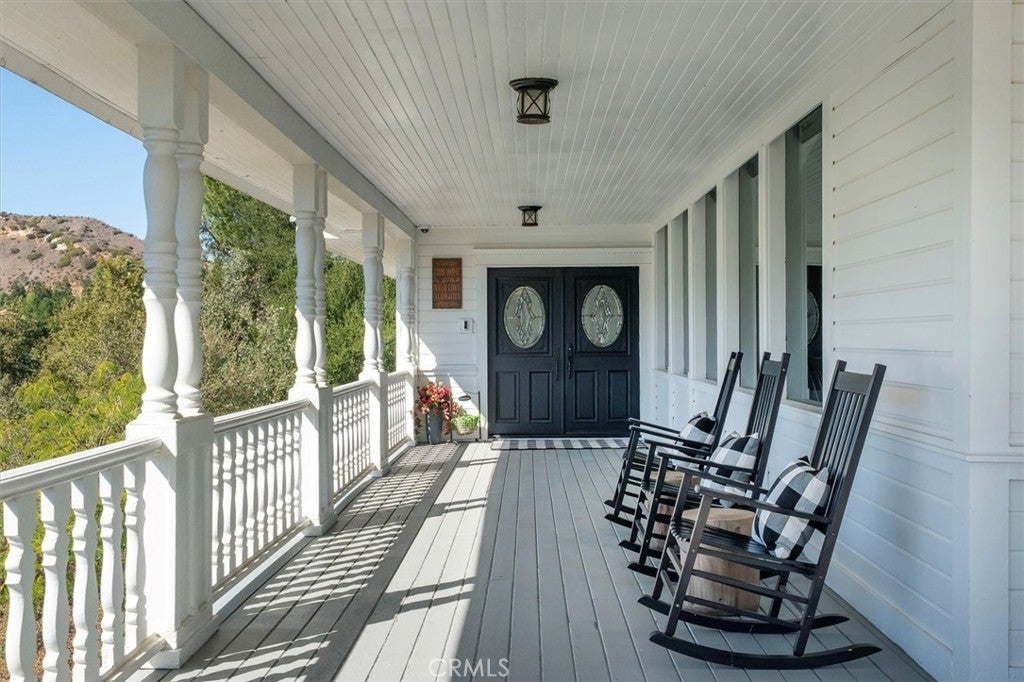 VIEWS, STYLE & LOCATION! Nestled on over an acre in a private gated Agoura Hills community, this modern farmhouse blends luxury living with the serenity of the surrounding hills and breathtaking views of Ladyface Mountain. With a private entrance to the scenic Paramount Ranch hiking trails, this home offers the best of Agoura’s nature, privacy, and convenience. The light-filled main living spaces feature refinished floors, freshly painted cabinetry with new hardware, and thoughtfully updated finishes throughout. The kitchen combines charm and function with new quartz countertops, stylish tile backsplash, open shelving, upgraded lighting, and Waterstone fixtures including a farmhouse sink and pot filler. Perfect for entertaining, the open-concept living room and dining area flow effortlessly into the outdoor spaces. Three bathrooms on the main level were completely remodeled, each designed with high-end materials and modern comforts — including Bluetooth ceiling speakers and Jacuzzi tubs for a spa-like experience. The top-floor primary suite is a peaceful retreat with beamed ceilings, ample natural light, character and charm, and a private balcony overlooking the backyard and mountain views. The ensuite features a soaking tub, large tiled shower with a window, steam room, and a spacious walk-in closet fit for a dream wardrobe. The lower level offers exceptional versatility, featuring a professional recording studio and sound booth — ideal for music, podcasting, or creative production — along with an additional bedroom or office. A separate one-bedroom guest suite with its own living room and bath provides flexible space for guests or multi-generational living. Outdoor living is equally impressive. Enjoy a wraparound farmhouse porch, gazebo, and multiple patios designed for indoor/outdoor living. The backyard includes a built-in BBQ, pizza oven, treehouse, trampoline, and play area — perfect for relaxing in the California sunshine or entertaining under the stars. With its stunning views, updated interiors, private trail access, and endless charm, this home is a one-of-a-kind Agoura Hills haven at its FINEst!