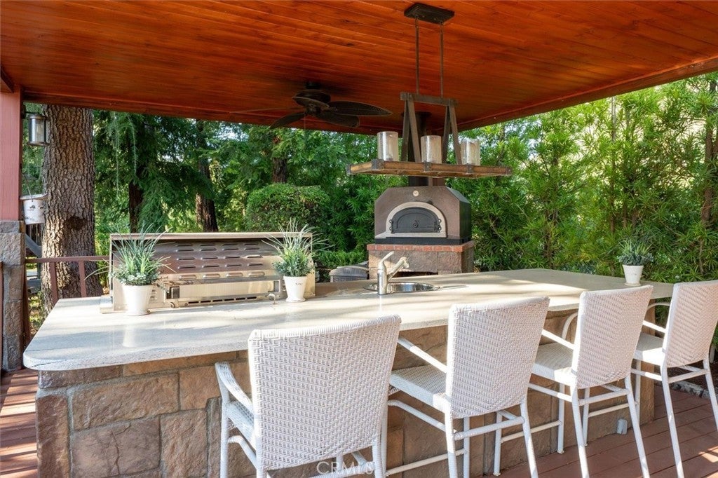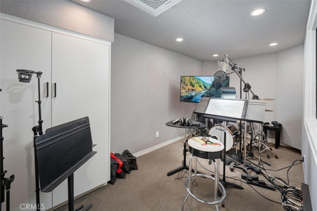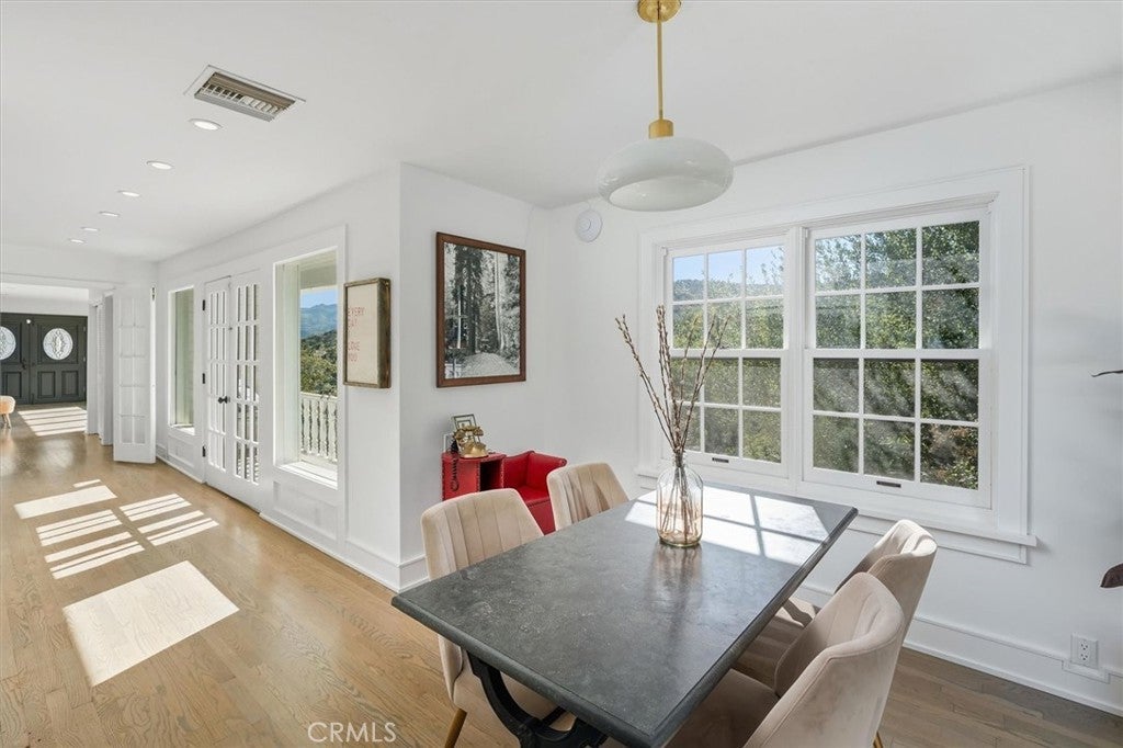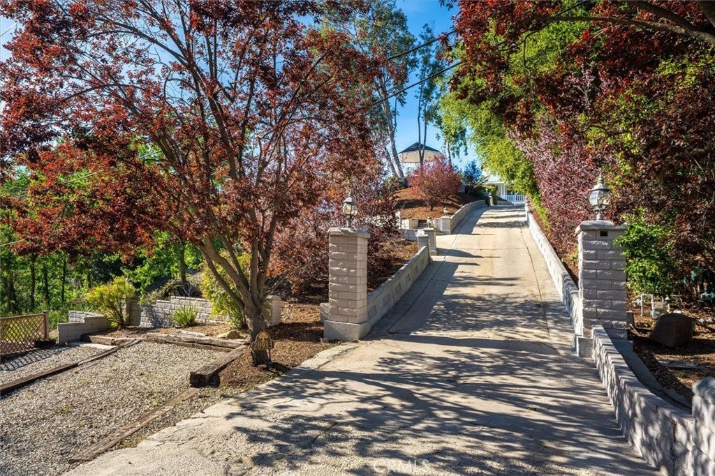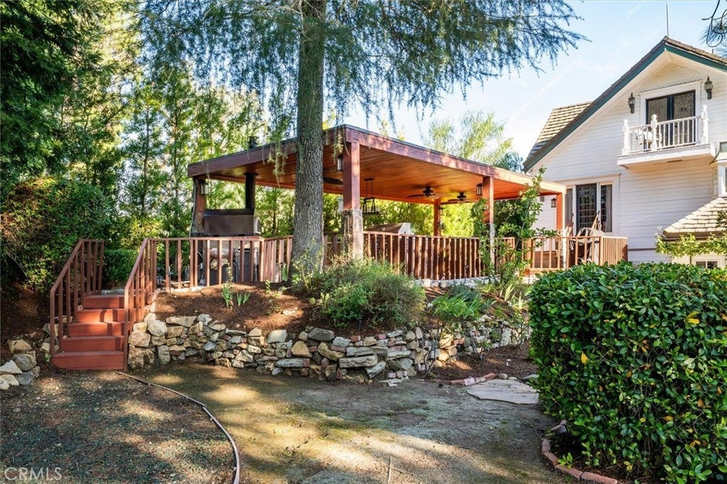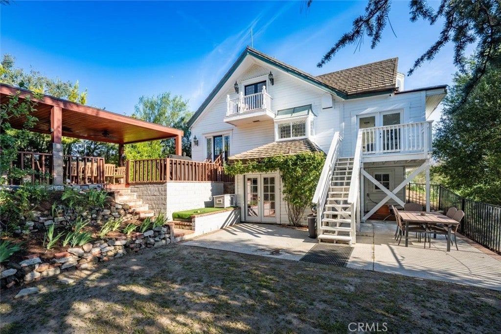 A rare private canyon estate set on its own elevated hilltop within a gated enclave south of the boulevard, offering sweeping views of Ladyface Mountain and a serene creek below. A cherry blossom-lined approach welcomes you into over 1.3 acres of serene natural beauty. The property overlooks surrounding horse properties and a year-round creek that flows toward Malibou Lake—where the sounds of water, birds, and evening frogs create a peaceful, immersive retreat. The approximately 6,167-square-foot residence features expansive living spaces filled with natural light, thoughtfully designed to capture the surrounding canyon views. A curated collection of custom glasswork—including stained, beveled, and etched details—adds warmth, character, and architectural distinction throughout. The home offers seamless indoor-outdoor living, with multiple balconies and outdoor spaces designed to take in the setting—from morning coffee off the kitchen to quiet evenings overlooking the canyon. A private top-floor primary suite serves as a true retreat, elevated above the landscape with a bird’s-eye view of the horses across the creek. The suite features a spa-inspired bathroom with steam room and an expansive walk-in closet. The lower level provides exceptional versatility with a professional recording studio complete with isolation booth, along with a separate guest apartment—ideal for a private creative compound, multigenerational living, or extended stays. Additional features include a dedicated mudroom, two large storage areas, a private outdoor patio, built-in garage storage, and an electric vehicle charger. Outdoor spaces are designed for both relaxation and entertaining, featuring a wraparound porch, multiple seating areas, pizza oven, gazebo, and mature fruit trees. Recent improvements include nearly $400,000 invested into the property, including interior updates, refreshed front landscaping, hardscape improvements, termite inspection, and a newly enhanced presentation for this relaunch. The home is also connected to sewer (no septic). Located within the award-winning Las Virgenes School District and just minutes from Malibu, this is a rare opportunity to own a truly special canyon estate. Agoura Hills living at its FINEst!