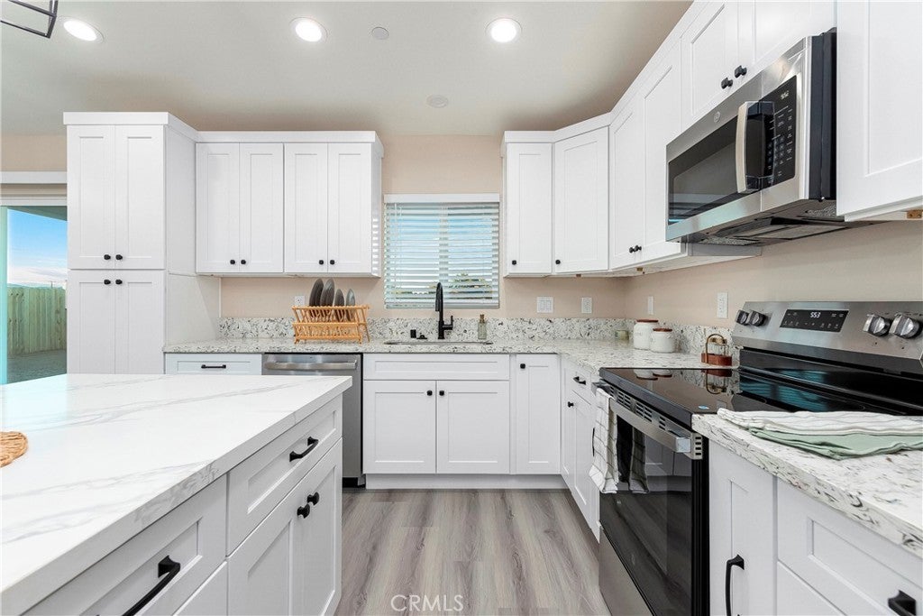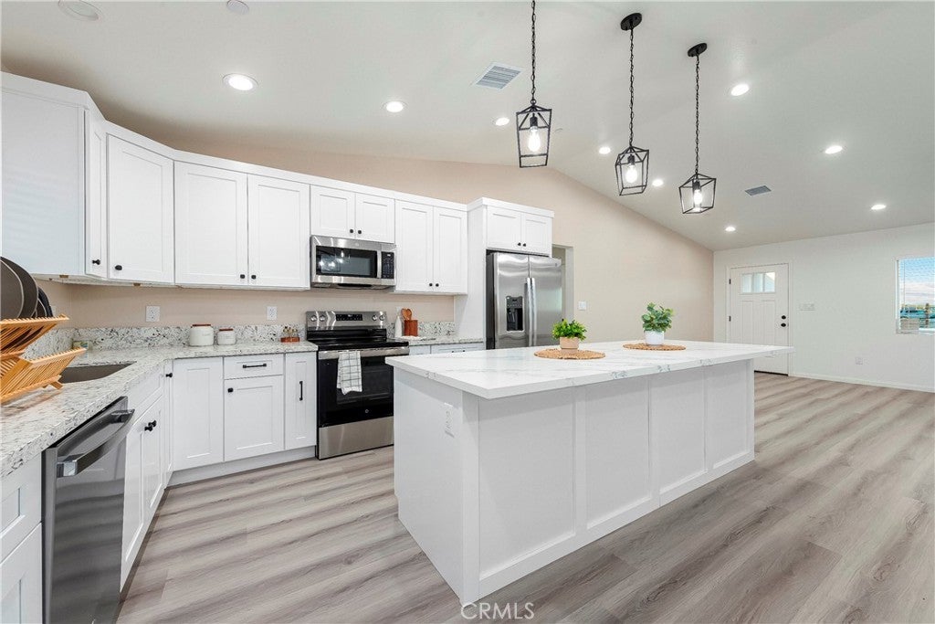 **BUILDER INCENTIVES THRU NOV 21, 2025 INCLUDE CLOSING COSTS, REFRIGERATOR, WASHER AND DRYER** BEAUTIFUL BRAND NEW CONSTRUCTION!!! 3+2, 1629 Sq Ft Single Family Home Located in a Quiet and Quaint Area of California City!! This home has all the high quality features that come with a modern semi-custom home. The standards that come with this home start with but not limited to a spacious, light and bright open floor plan, on-demand water heater, luxury vinyl plank flooring, dual pane argon gas filled windows, Quartz countertops, finger pull cabinets, quality appliances, ceiling fans and upgraded fixtures throughout, smart WI-FI thermostat, indoor laundry room, insulated garage, large fully fenced backyard, covered patio, front yard finished with beautiful hardscape, RV potential, exterior stucco and so much more. With all the modern conveniences of central heating & air, solar, and fire sprinklers, this house has it all!!