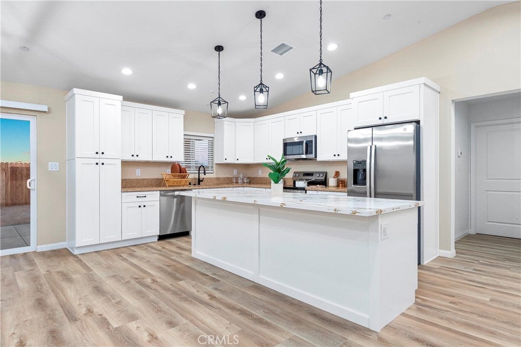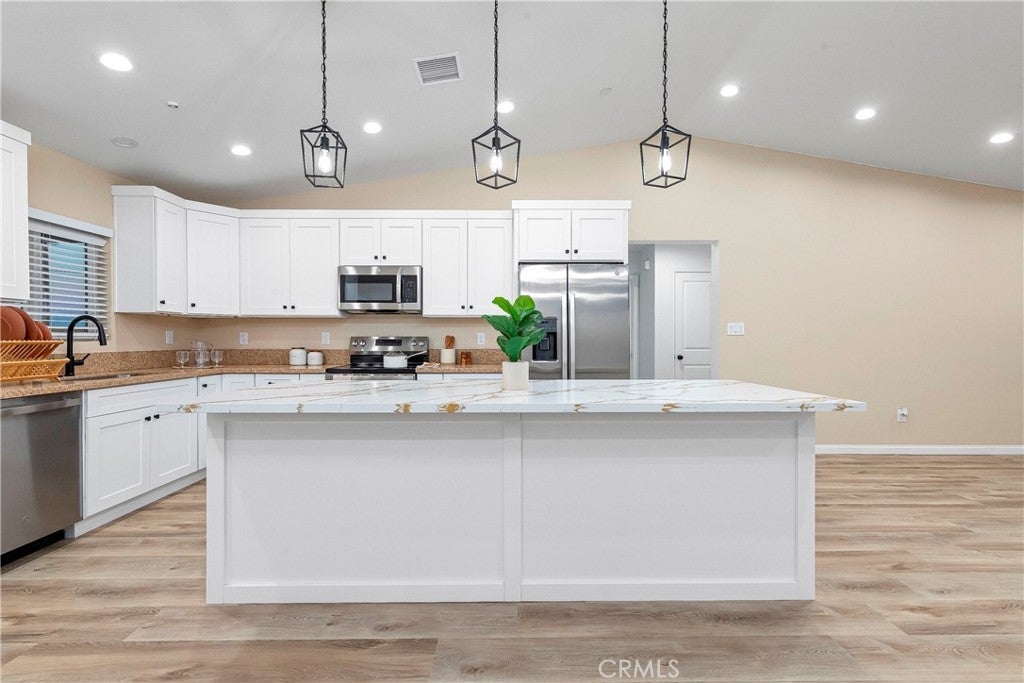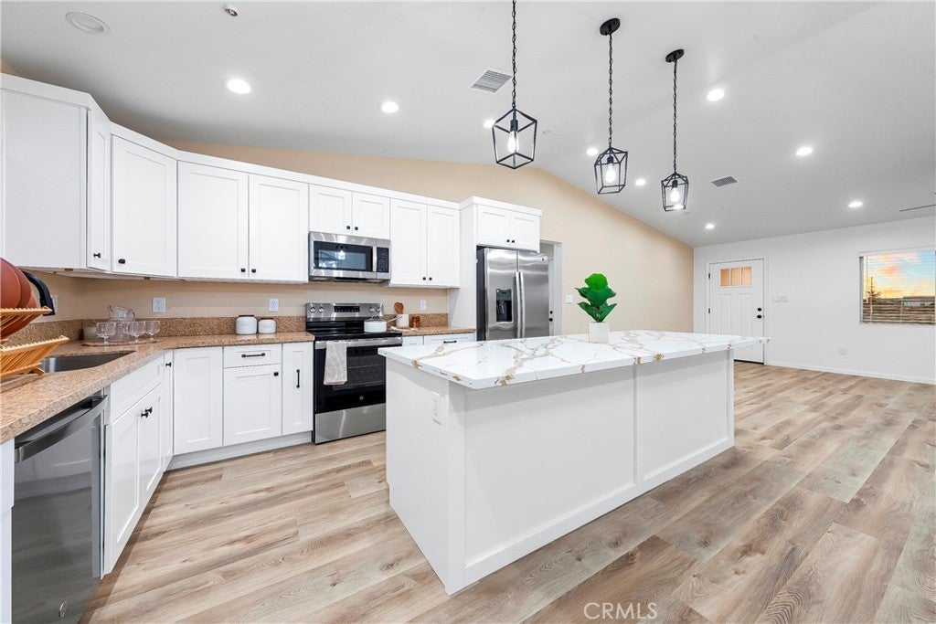 BEAUTIFUL BRAND NEW CONSTRUCTION!!! 3+2, 1629 Sq Ft Single Family Home Located in a Quiet and Quaint Area of California City!! This home has all the high quality features that come with a modern semi-custom home. The standards that come with this home start with but not limited to a spacious, light and bright open floor plan, on-demand water heater, luxury vinyl plank flooring, dual pane argon gas filled windows, Quartz countertops, finger pull cabinets, quality appliances, ceiling fans and upgraded fixtures throughout, smart WI-FI thermostat, indoor laundry room, insulated garage, large fully fenced backyard, covered patio, front yard finished with beautiful hardscape, RV potential, exterior stucco and so much more. With all the modern conveniences of central heating & air, solar, and fire sprinklers, this house has it all!!