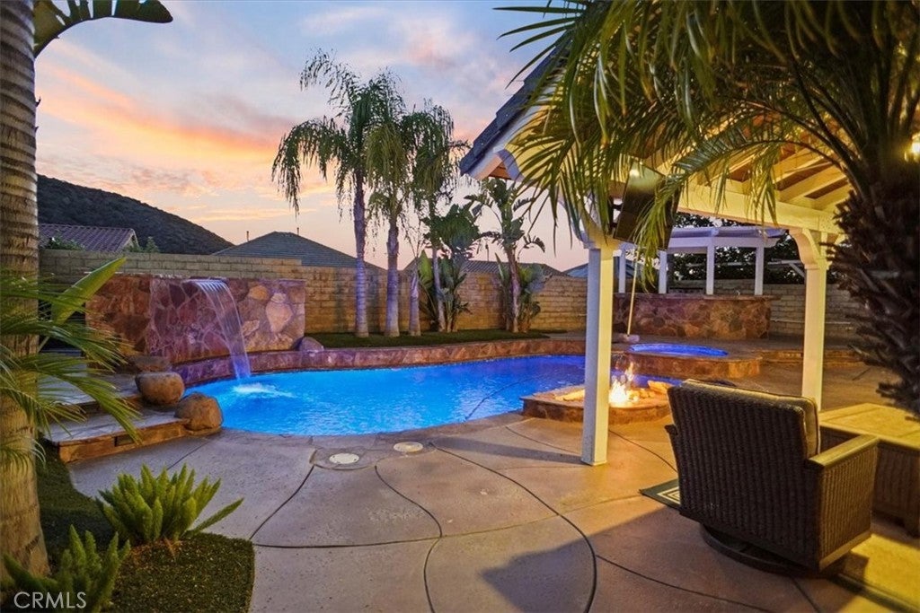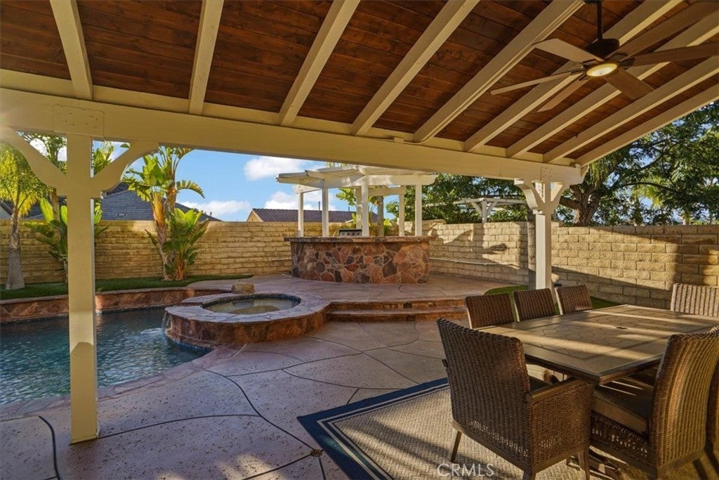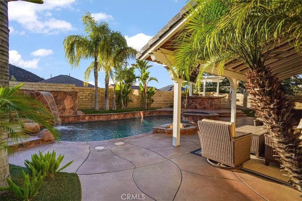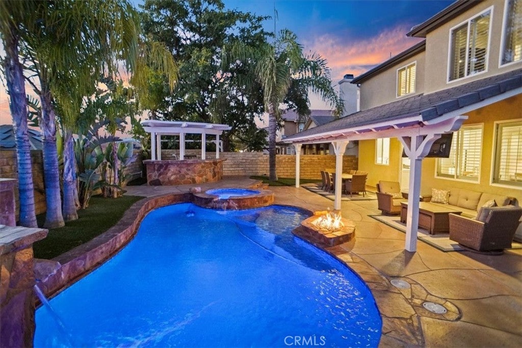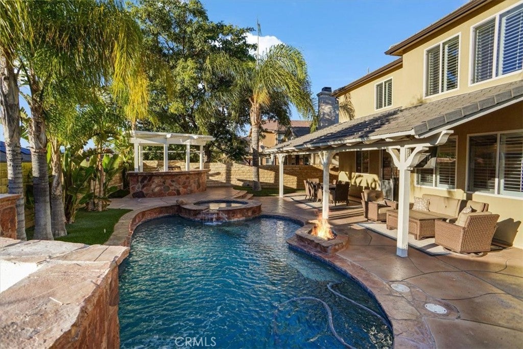 Welcome to this beautifully upgraded, turn-key Saugus POOL home where no detail has been overlooked. Downstairs features a formal living room, a dining room with custom built-in cabinetry, a convenient laundry room, and a powder room. The open-concept kitchen and family room create the perfect space for entertaining, complete with a large center island, oversized sink, and top-of-the-line appliances. On the second floor, the primary suite boasts stunning views of the backyard and surrounding hillsides, along with a luxurious ensuite bathroom featuring a walk-in shower, soaking tub with a view, and a large custom walk-in closet. The secondary bedrooms all include ceiling fans and generous closet space. The shared upstairs bathroom features dual sinks and a tub/shower combination. Step through the sliding doors to the expansive backyard, where you’ll find a covered patio overlooking a sparkling pool with waterfall and spa. The pool was recently re-finished with PebbleTec (within the last two years), and all pumps and filters were replaced at that time. The outdoor kitchen includes a large built-in BBQ and smoker, ideal for hosting gatherings. A separate side yard features a custom dog run, perfect for furry family members. Upstairs offers five spacious bedrooms. Additional highlights include a three-car tandem garage with epoxy floors and built-in cabinetry, owned solar, a recently replaced AC unit and ducting, and a built-in humidity control system. End of cul-de-sac location! This home has it all! MUST SEE!