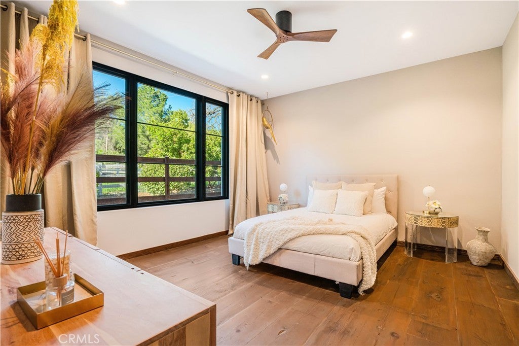 Welcome to your private sanctuary—an exquisite Spanish/Cuban-style estate nestled in the tranquil, equestrian community of Old Agoura, offering breathtaking views and unmatched serenity. Set on 2.25 gated acres, this 2018-built residence boasts over 6 bedrooms and 7 bathrooms of luxurious living space, designed with elegance, comfort, and privacy in mind. Inside, discover hand-finished Barnwood flooring, expansive glass walls that flood the home with natural light, and a seamless open-concept layout. The primary suite is a peaceful retreat, featuring a spa-inspired ensuite and a private balcony overlooking lush, picturesque landscapes. The gourmet kitchen is equipped with top-of-the-line appliances, including a Wolf range, Sub-Zero refrigerator/freezer, dual Wolf ovens, and a Bosch dishwasher. This fully-automated smart home offers sophisticated technology with exterior lighting, irrigation systems, motion-sensitive security cameras, pool controls, and a built-in sound system—all at your fingertips. Step outside to experience an extraordinary outdoor lifestyle. The grounds include a unique underground bunker with electricity, a sump system, and ventilation, as well as a serene loggia/yoga area. Spanning both sides of Chesebro Creek, the property features a charming rope bridge leading to a private glamping retreat. Resort-style amenities continue with multiple lounging and entertainment spaces—ideal for hosting or simply unwinding in nature. With ample room for horses and direct access to endless riding, hiking, and biking trails, this estate epitomizes the best of California outdoor living. Located just minutes from Malibu, Calabasas, and Westlake Village, this one-of-a-kind Agoura Hills retreat offers timeless beauty, modern sophistication, and an unparalleled connection to nature. Don’t miss the opportunity to own this truly spectacular estate!