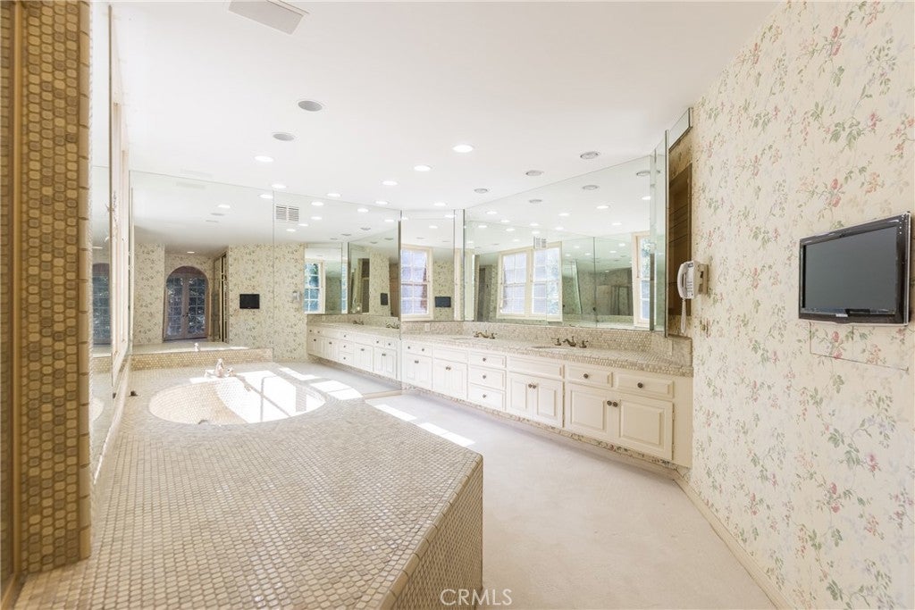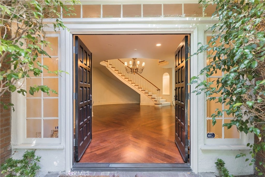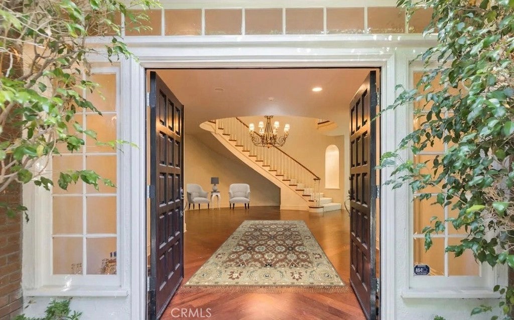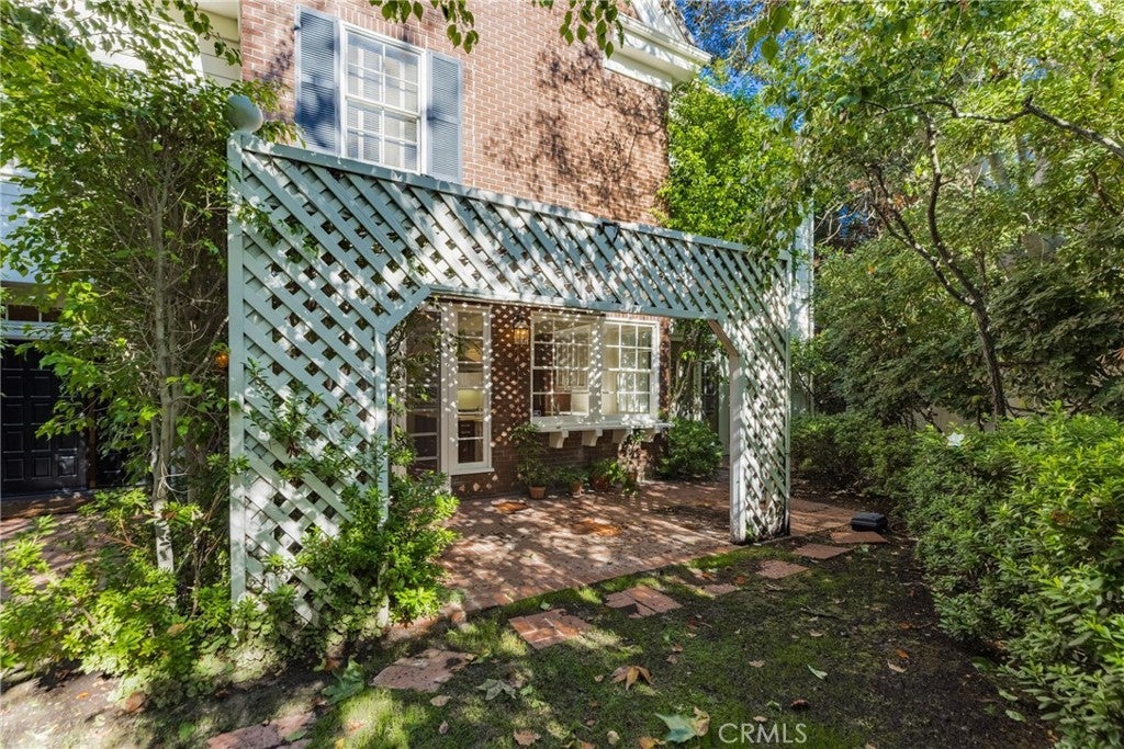 This exceptional 3-bedroom, 4-bathroom 4,018 square foot corner townhome delivers resort-style living in the highly desirable guard-gated Ridge area of Mountain Gate in Brentwood Hills. Located in a very secluded area with 24 hr. security and unmatched serenity. Stanley Kramer, American Film Director, was the original owner of this property set behind a private iron gate with a beautiful courtyard offering complete privacy with only one common wall. This lavish home boasts a formal entry, dramatic staircase, expansive living room with fireplace, wet bar, soaring vaulted ceilings, floor-to-ceiling luminous windows, and elegant French doors displaying a well-manicured wrap-around yard and patios that are perfect for entertaining or quiet relaxation in a zen-like atmosphere with mature trees and koi pond. Spacious eat-in kitchen featuring Miele refrigerator, Wolf dual-convection ovens, Bosch dishwasher, two walk-in pantries and center island. The kitchen has easy access to the formal dining and living areas. One bedroom with ensuite bathroom is conveniently located on the first floor. Additional highlights include a library with fireplace and its own private patio, a dedicated laundry room and a double-attached garage with direct access to the home. Upstairs, retreat to an over-sized luxurious primary suite with a sitting area and a private Juliet balcony with tree-lined views. A huge spa-like bath offers a soaking tub, dual vanities, and a separate shower and bidet. Separately located upstairs is a private 2nd bedroom that has easy access to a full bath. The HOA includes community Pool/Spa, Trash Valet, exterior EQ and Fire Insurance as well as roof coverage. You will have the option to join Mountain Gate Country Club that offers golf, tennis, spa and dining. Easy 405 Freeway access, shopping, dining & spectacular hiking trails. Enjoy the tranquil, resort-like lifestyle and make this stunning colonial-style home yours. Call for a private showing.