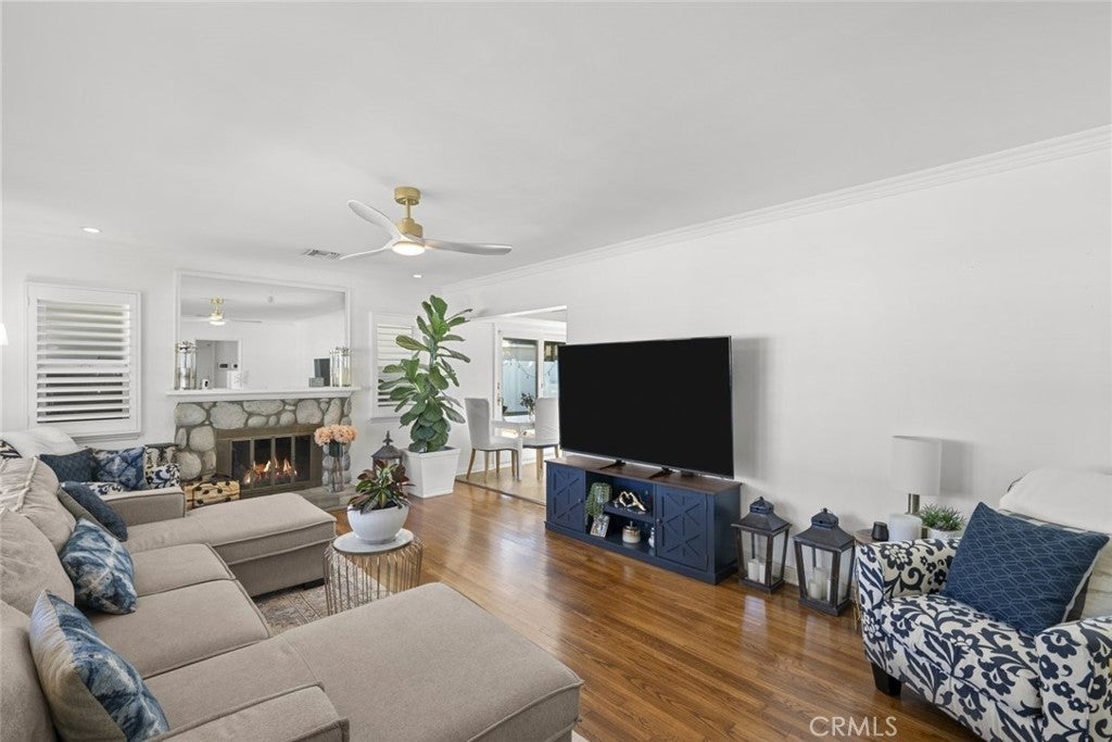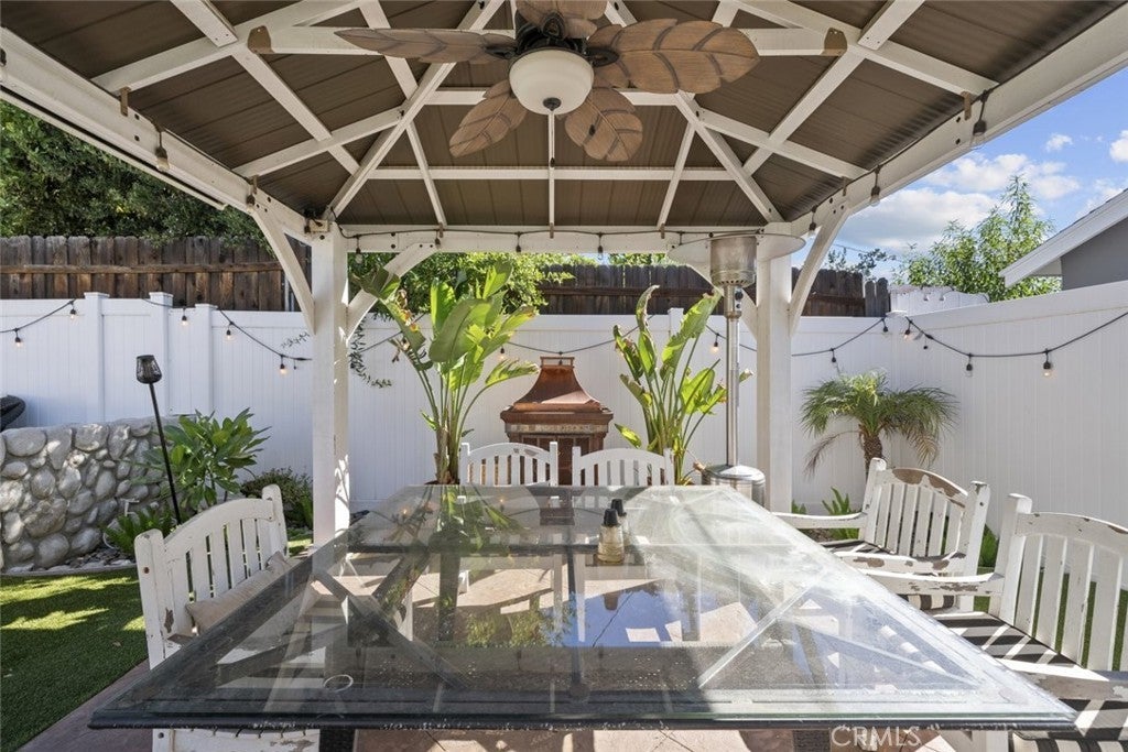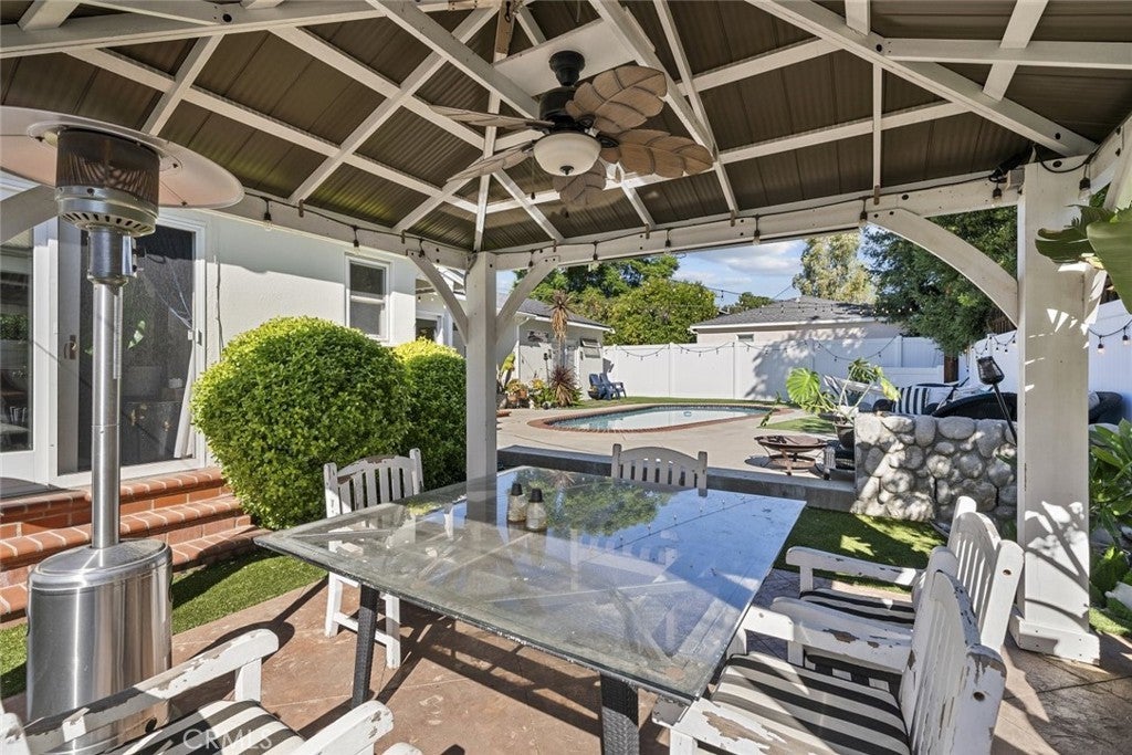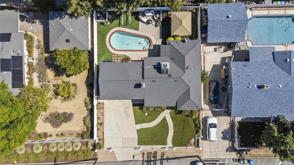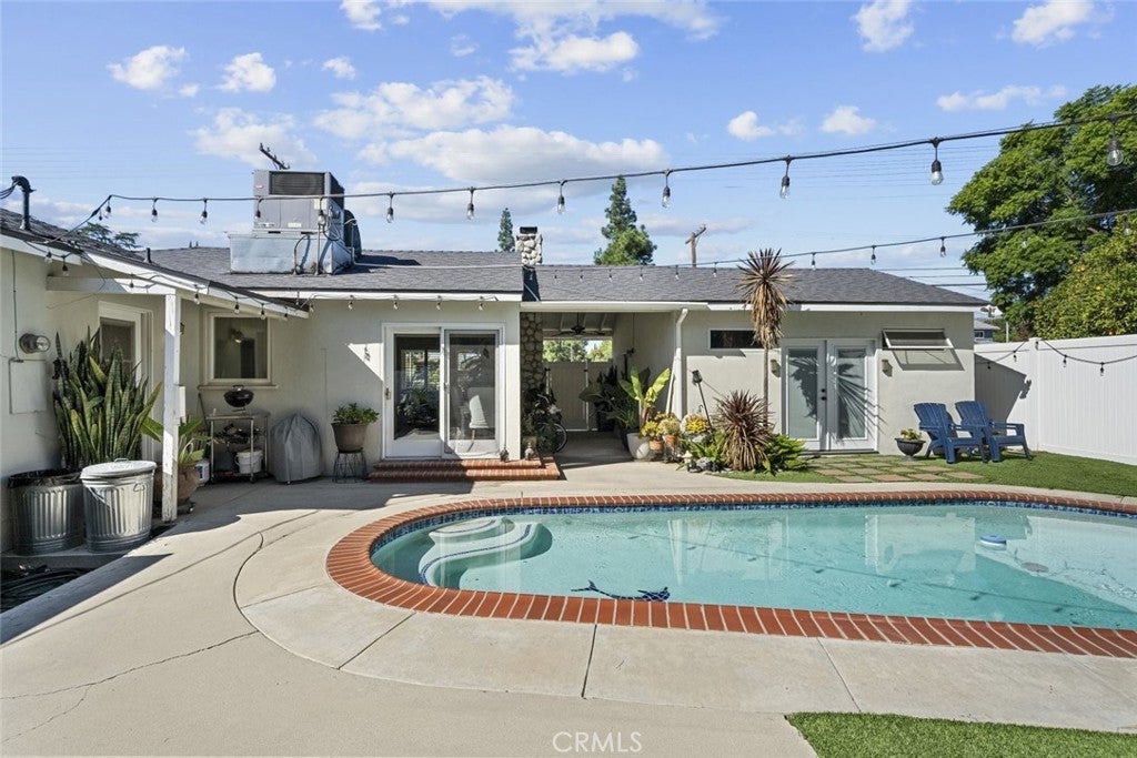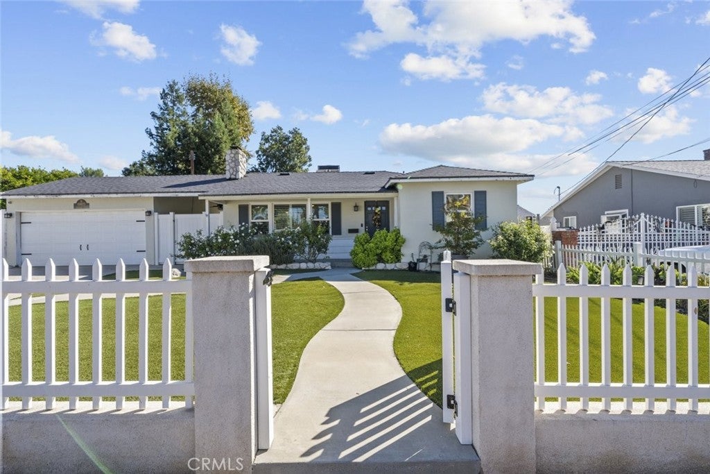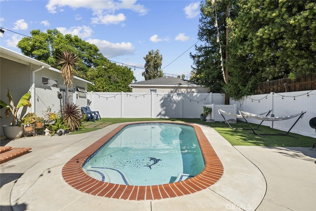 Granada Hills Pool Home! Welcome to this beautifully maintained 2-bedroom, 1.5-bath home offering 1,038 sq. ft. of living space on a generous 5,870 sq. ft. lot. From the moment you arrive, the inviting curb appeal, white picket fence, paved driveway, and manicured front yard set the tone for what awaits inside. Inside, you'll find an open floor plan filled with natural light, highlighted by recessed lighting, ceiling fans, and rich wood flooring throughout. The cozy living room features a stunning rock-accented fireplace, creating a warm and welcoming atmosphere. The kitchen boasts stainless steel appliances, a designated dining area, and double sliding doors that open to the backyard — perfect for seamless indoor-outdoor living. The primary bedroom includes mirrored closet doors and a stylish en-suite bathroom with dual sinks and a shower/tub combo. A convenient laundry room with stackable washer and dryer adds everyday practicality. Outside, enjoy your own private retreat. Take a dip in the sparkling pool, relax under the gazebo, or entertain friends and family in the spacious backyard. The 2-car garage has been thoughtfully converted into a man cave, offering a great bonus space for lounging, hobbies, or entertainment. With tasteful white interior paint throughout, this home perfectly blends comfort, style, and functionality. Must see to appreciate. Located within close distance to Granada Hills Charter High School, a large and highly regarded public charter school in the Granada Hills neighborhood.