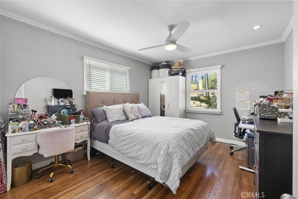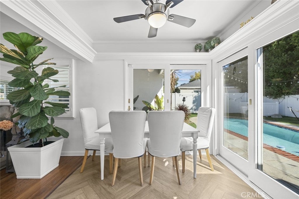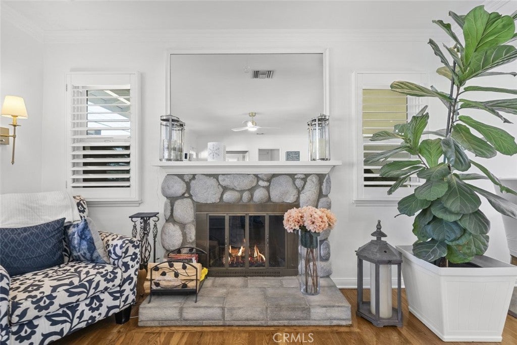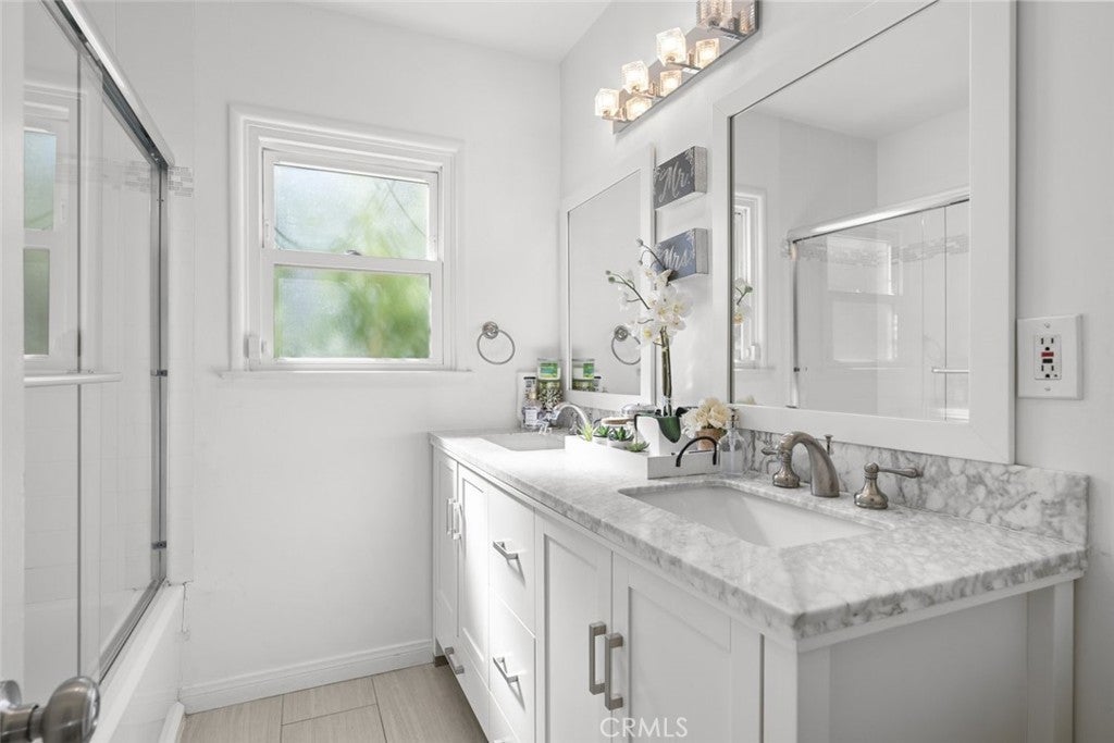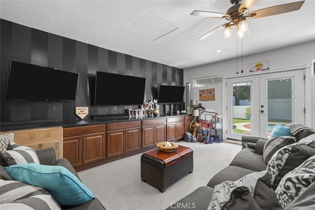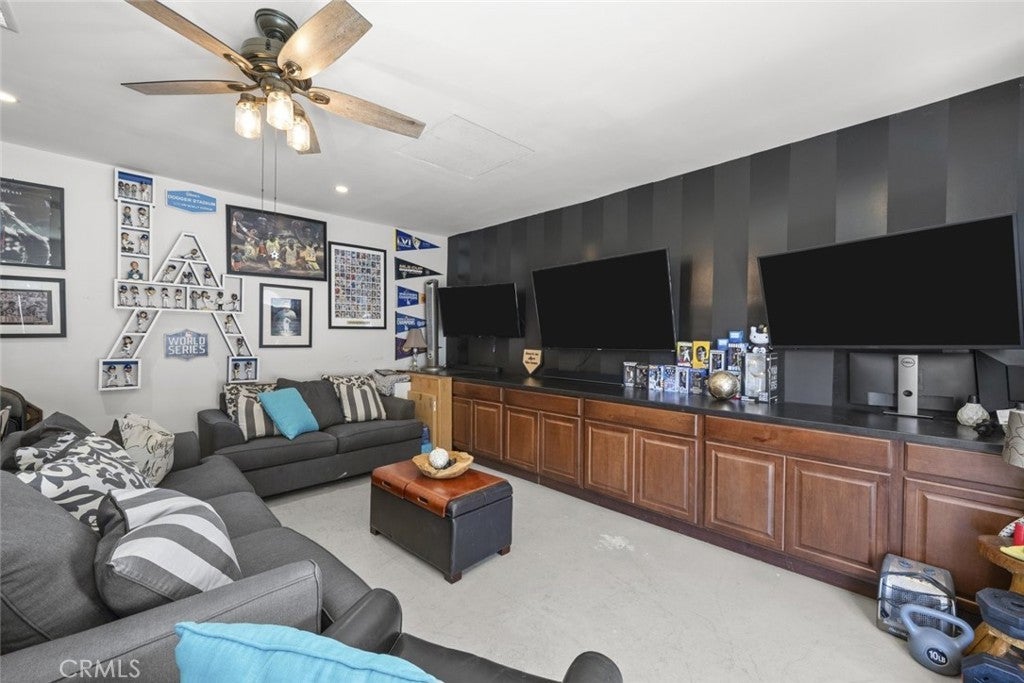 Granada Hills Pool Home! Welcome to this beautifully maintained 2-bedroom, 1.5-bath home offering 1,038 sq. ft. of living space on a generous 5,870 sq. ft. lot. From the moment you arrive, the inviting curb appeal, white picket fence, paved driveway, and manicured front yard set the tone for what awaits inside. Inside, you'll find an open floor plan filled with natural light, highlighted by recessed lighting, ceiling fans, and rich wood flooring throughout. The cozy living room features a stunning rock-accented fireplace, creating a warm and welcoming atmosphere. The kitchen boasts stainless steel appliances, a designated dining area, and double sliding doors that open to the backyard — perfect for seamless indoor-outdoor living. The primary bedroom includes mirrored closet doors and a stylish en-suite bathroom with dual sinks and a shower/tub combo. A convenient laundry room with stackable washer and dryer adds everyday practicality. Outside, enjoy your own private retreat. Take a dip in the sparkling pool, relax under the gazebo, or entertain friends and family in the spacious backyard. The 2-car garage has been thoughtfully converted into a man cave, offering a great bonus space for lounging, hobbies, or entertainment. With tasteful white interior paint throughout, this home perfectly blends comfort, style, and functionality. Must see to appreciate. Located within close distance to Granada Hills Charter High School, a large and highly regarded public charter school in the Granada Hills neighborhood.