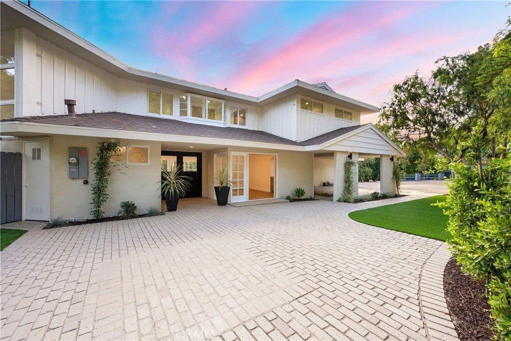 Nestled in the hills of Encino on an expansive private lot. If you are looking for privacy and security, this is definitely the property to be looking at. This secluded property is RTI ready, with plans for a 11,621 sf estate that includes 8 bedrooms, 11 bathrooms and an attached ADU. Enjoy this prime south of the Boulevard location, ideally situated within a highly rated school district and close proximity to everything the Valley and Westside have to offer. Tucked behind a private gate at the end of a long driveway, the current home welcomes you through double doors into a spacious family room that overlooks the lush backyard and flows seamlessly into the formal dining room. A culinary enthusiast's dream, the gourmet kitchen is equipped with chef grade Thermador appliances, custom cabinets, a massive island with seating and walk-in pantry. Rounding out the main level is a sizable living room that boasts a stunning fireplace and walls of glass that flood the space with natural light, laundry/mud room and secluded bedroom. Retreat upstairs to the stately primary suite, complete with a custom walk-in closet and sumptuous bathroom that features a soaking tub, rainfall shower system and double vanity. Additionally, you will find three generously sized bedrooms upstairs, one of which has an ensuite bathroom. Surrounded by mature landscaping, the serene backyard oasis is the perfect spot to relax or entertain guests. This expansive property offers a sparkling pool, covered patio, sports court and grassy yard. Further amenities include a two car carport, large driveway with abundant parking and ample storage space throughout, including an attached storage shed.