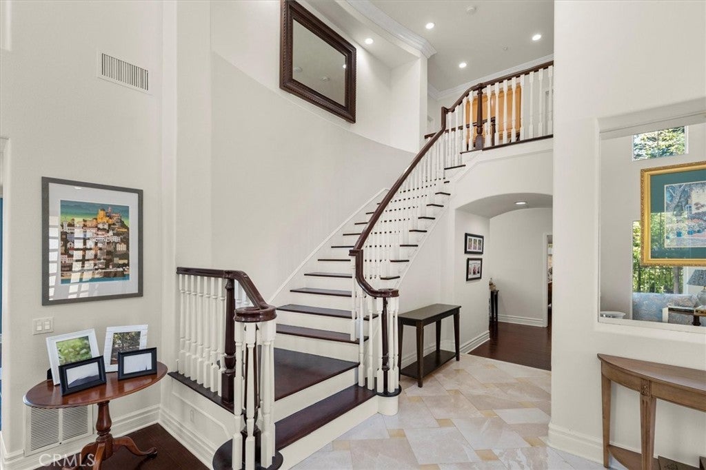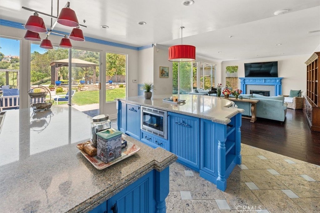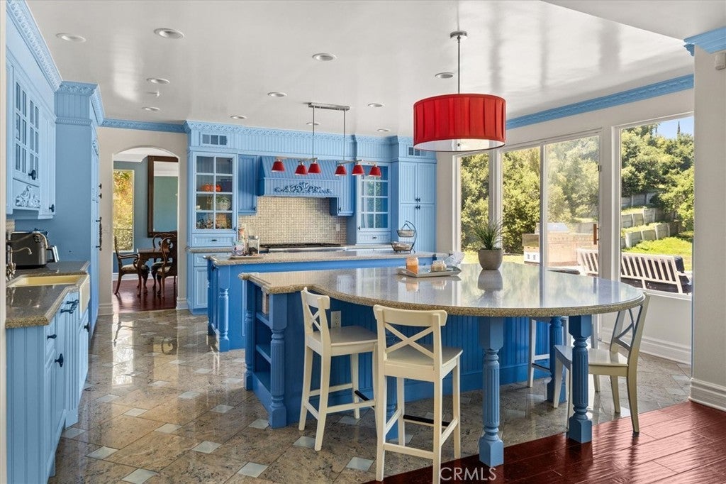 INCREDIBLE VALUE! Tucked away within the prestigious guard-gated enclave of Summit Point Estates, this exquisite five-bedroom, four-and-a-half-bath residence offers the perfect blend of timeless elegance and modern luxury. Situated at the end of a peaceful cul-de-sac, the home welcomes you with a stately double-door entrance that opens to soaring 30-foot ceilings and a bright, thoughtfully designed floor plan ideal for both refined entertaining and everyday living. The grand formal living and dining rooms exude sophistication, seamlessly flowing into a chef's dream kitchen—beautifully appointed with dual center islands, top-of-the-line Thermador appliances, and an abundance of custom French country cabinetry. The adjacent family room, anchored by a cozy gas fireplace, offers a warm and inviting ambiance, while the charming breakfast island provides the perfect spot for casual dining. A well-appointed guest suite with a private bath completes the main level, ideal for visiting family or friends. Upstairs, the expansive primary retreat features a serene sitting area, dual walk-in closets, and a luxurious en-suite bath with double vanities, soaking tub, and separate shower. Three additional bedrooms—two sharing a Jack-and-Jill bath and one with a private en-suite—provide ample space for family or guests. Walls of glass open to the resort-inspired backyard, where lush landscaping surrounds a sparkling pool and spa, expansive lawn, and covered patio—offering an idyllic setting for entertaining or tranquil relaxation. A finished four-car garage, complete with a 220-volt EV charger, adds to the home's exceptional amenities. Located in the scenic Santa Monica Mountains, just minutes from hiking trails, premier shopping and dining at The Village, and the iconic beaches of Malibu—this is California living at its finest.