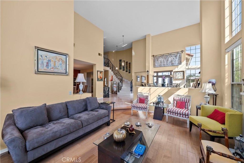Experience the pinnacle of luxurious living in Glendale's desirable Emerald Isle area. This home is located within the Sunset Ridge development of approximately 55 lots, is on the market for the very first time. The seller had the coveted first choice to select this premium lot and best location, ensuring unparalleled privacy and breathtaking panoramic views of mountains and canyons from the front and backyard. Prepare to be captivated by this magnificent residence boasting 5 bedrooms and 4.5 baths. Step inside through a high-ceiling entrance showcasing elegant Iron spiral stairs. The home is flooded with natural light. The main level features a study/office downstairs with custom built-in bookshelves, a formal dining room located adjacent to the living room, and a wet bar for entertaining. A large chef's kitchen with abundant room, granite kitchen counters, and a kitchen island leads into a bright breakfast nook area. Adjacent is the family room featuring a cozy fireplace. For added convenience, the first floor includes a downstairs bedroom with an en-suite bathroom and a separate laundry room. This home is ready for a complete transformation and your signature touches. Upstairs, an open and bright loft is ideal as a media room or secondary lounge. The Primary Bedroom is a true sanctuary with cathedral-style ceilings, stunning views, a two-way fireplace, and an en-suite featuring a large bathtub and separate shower. The backyard is a true entertainer's dream, featuring a swimming pool with a sitting area and Jacuzzi, and a dedicated BBQ area with a sink. Complete with a 3-car garage, this home offers everything for sophisticated living and grand-scale entertaining. Don't miss the rare opportunity to own a piece of one of Glendale's finest real estate.