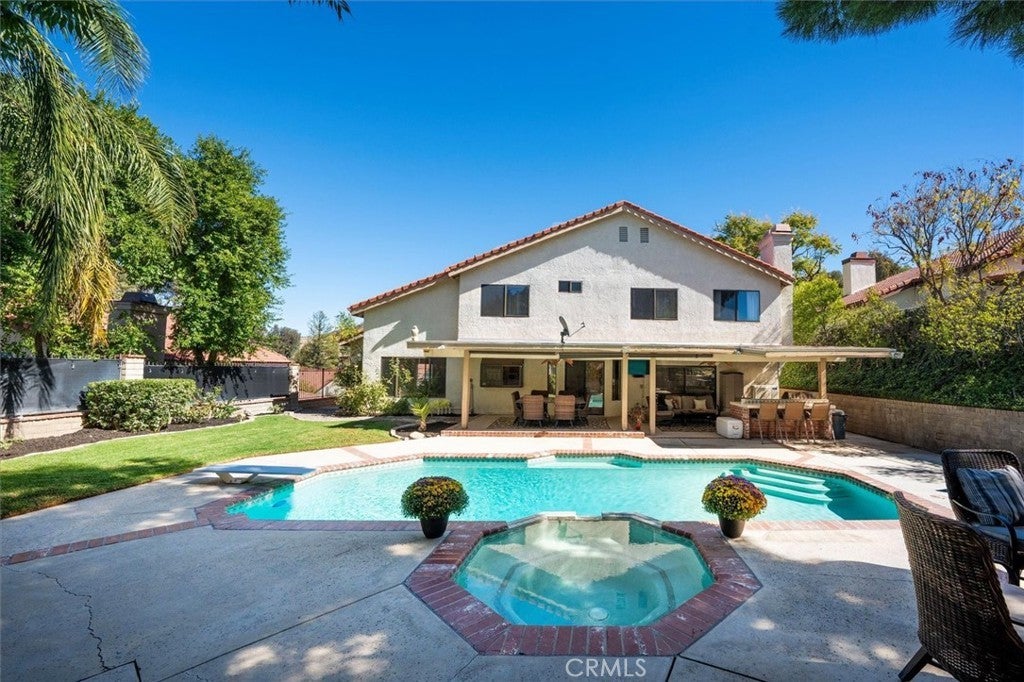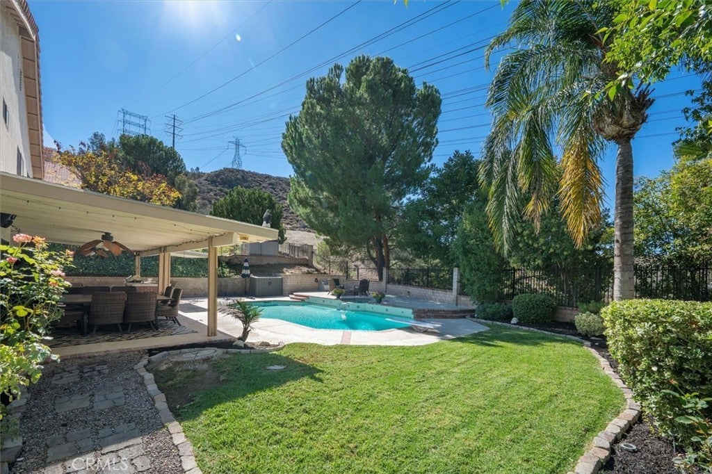Where Comfort Meets Style. Your Hilltop Haven Awaits in Santa Clarita. Welcome to this elegant and inviting two-story pool home, ideally located on a quiet cul-de-sac in one of Santa Clarita’s desirable hilltop neighborhoods. Offering 2,379 square feet of living space on a 9,888 square foot lot, this residence blends modern comfort with timeless design. The home has been thoughtfully updated and meticulously maintained, featuring fresh interior paint, new carpet, and updated bathrooms. Additional improvements include all new interior lighting with adjustable temperature settings, new exterior lighting, and a new air conditioning system for year-round comfort. The spacious kitchen provides generous counter space, ample storage, and a newer dishwasher, making it ideal for both daily living and entertaining. The open layout is enhanced by high ceilings and a neutral color palette, creating a bright and welcoming atmosphere throughout the home. A main level bedroom and bathroom offer flexibility for guests, multigenerational living, or a home office. Upstairs, the expansive primary suite serves as a private retreat, complete with a fireplace and a comfortable sitting area. Two additional fireplaces add warmth and character to the home’s living spaces. Step outside to an entertainer’s backyard designed for California living. Enjoy a pool and spa, built-in BBQ with mini refrigerator, fire pit, and a large covered patio with ceiling fans and lighting, perfect for gatherings or quiet evenings. Recent exterior updates include a new pool pump motor and wrought iron fencing and gates. This tranquil hilltop setting offers no rear neighbors, beautiful sunset views, and well-maintained easements year-round. The established neighborhood features attractive surroundings, friendly neighbors, and a reasonable HOA with three tennis courts and a sport court. An assumable solar loan offers an energy-efficient and cost-saving advantage. Thoughtfully updated and beautifully cared for, this home delivers relaxed luxury and refined living in Santa Clarita. Interested in this home. Call today.