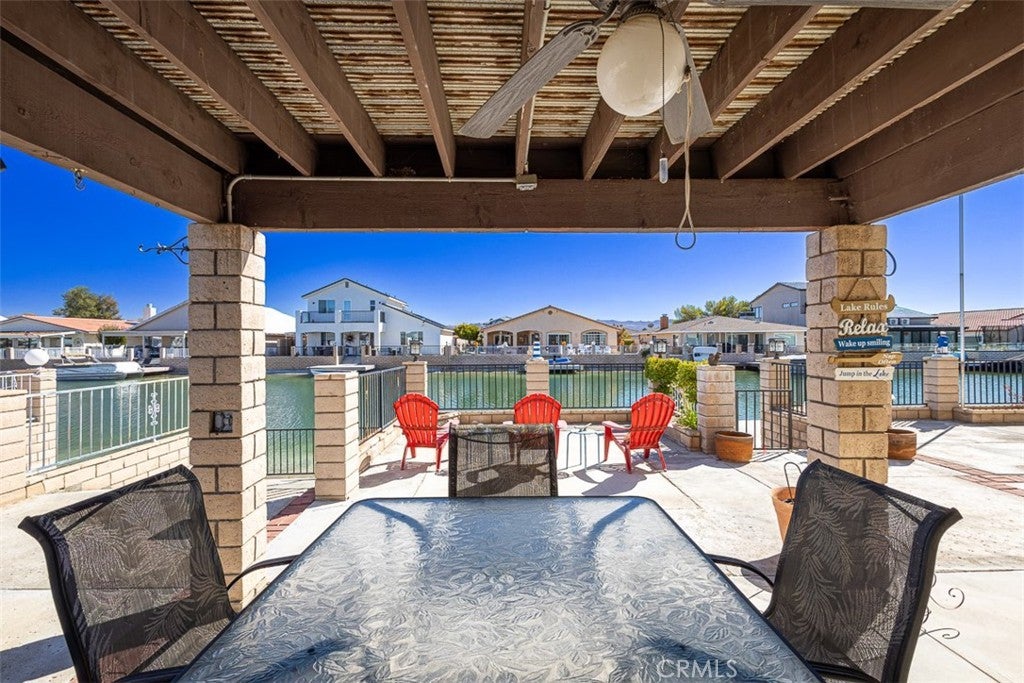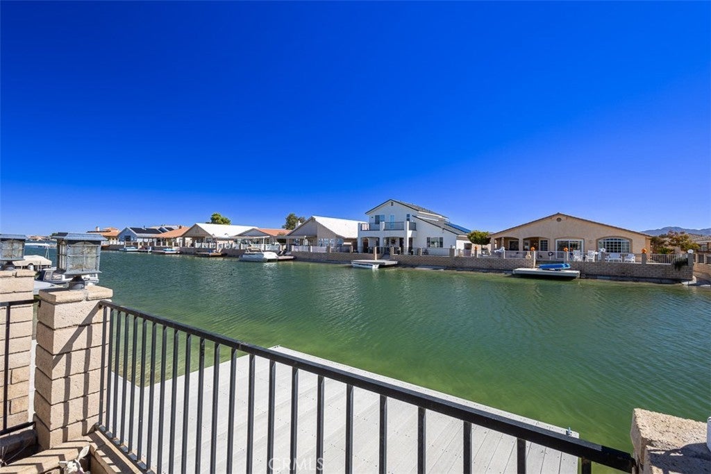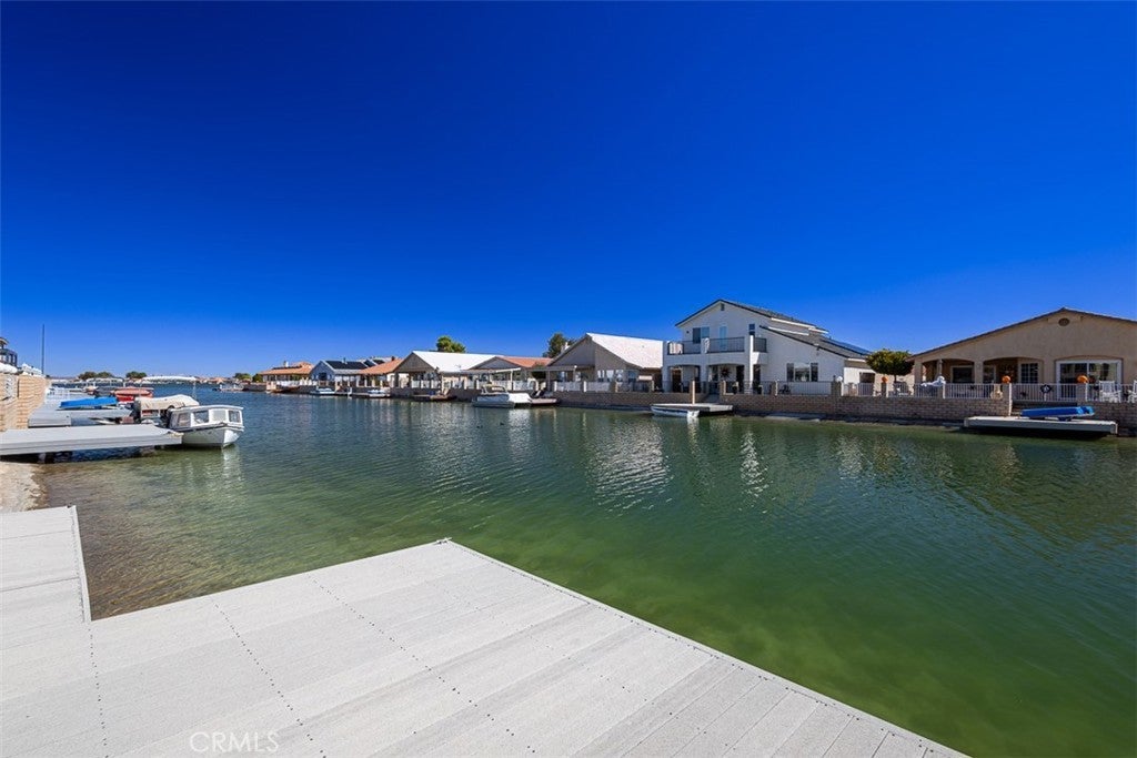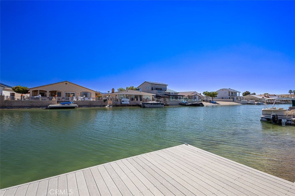Welcome to Silver Lakes! A hidden gem of a community! Super affordable water front homes! Enter the double doors at front and step into a awesome great room featuring high vaulted beamed ceilings! Floor to ceiling rock fireplace with wood stove insert. Nearly all glass along rear wall of living room - looking out to your large private concrete deck with your own boat dock and boat loading ramp! Kitchen with breakfast bar that flows into a family/kitchen eating area. More glass windows and another slider door that leads out to the covered patio deck area. Yes- patio furnishings are included! Living room has a wet bar! So much to offer here! Let's go back inside- to the right of the entry, you will find two large bedrooms and a hallway bath offering a shower stall and single sink with ample counter space- plus lots of cabinet space! Side access door that leads out to a garden patio area. Ceiling fans in both rooms and the front bedroom has a pull down ladder for access to attic for super storage! Now let's go upstairs to the master suite loft area. Notice the wooden stairs with custom wood accent moldings. Awesome slider glass door that goes out to a large balcony. Amazing views of the water and channel! Imagine sipping your morning coffee or a cozy chilled cocktail at sunset from your own balcony!! Check out the vanity counter with more windows offering plenty of natural light! Spacious walk in closet too! Dual sink and oversized tub with shower over head. Large garage with plently of storage room - washer and dryer in garage are included. Both refridgerators (in kitchen and garage) are included.