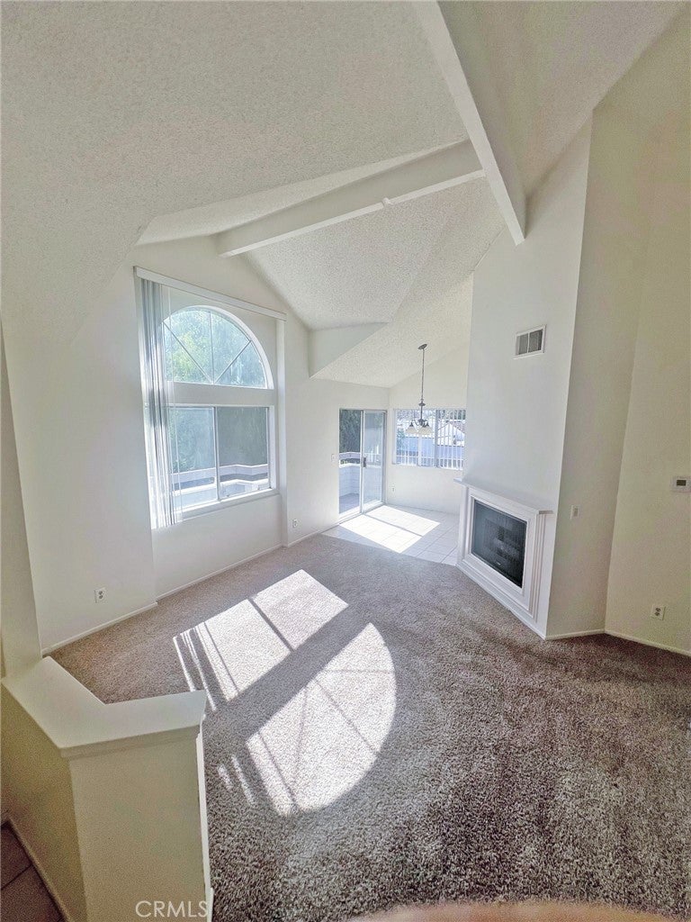 PRICE DROP! This spacious top corner unit has 3 bedrooms, plus bonus loft room upstairs with high vaulted ceilings, fireplace, natural light, views, remodeled kitchen, primary bedroom with high vaulted ceilings, attached 2-car garage tandem parking, and stackable washer/dryer in hallway. The community has multiple pools and tennis courts. Close to shopping centers, schools, restaurants, movie theaters, mall, and much more. Don't miss a chance to own this great condo.