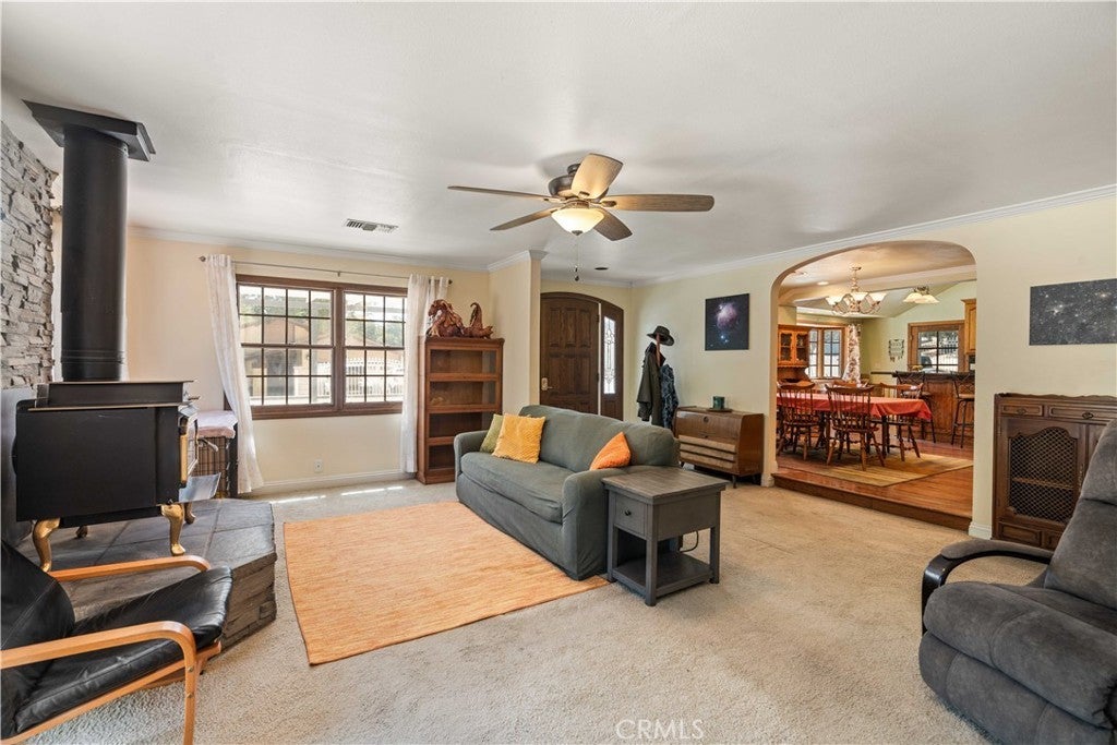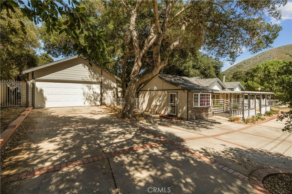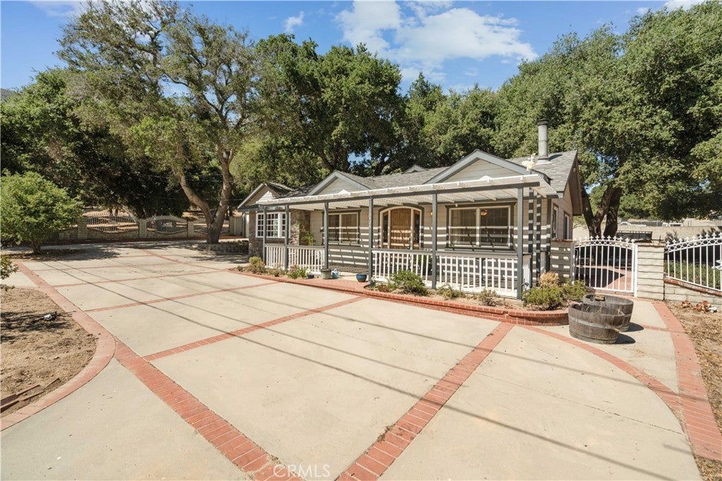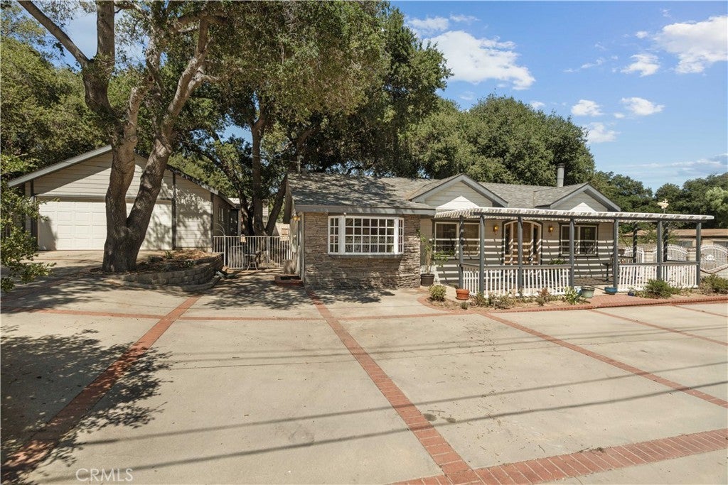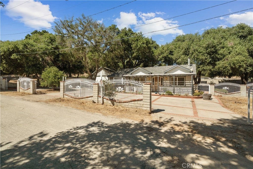 Land Lover’s Dream! 7 Lots – Tons of Land and Endless Possibilities! Charming Custom Single-Story Retreat with Mountain Views, Equestrian, Light Ag Zoning, and Exceptional Outdoor Living on over an acre—spanning two of seven contiguous parcels! Perfect for those seeking a peaceful country lifestyle with room for horses, expansion, or additional improvements. A gated circular driveway welcomes you to this inviting 3-bedroom, 3-bathroom home (assessor shows potential 4th bedroom) offering just under 2,000 sq. ft. of comfortable living space. Surrounded by majestic oak trees and serene mountain views, the property blends privacy, utility, and natural beauty. Inside, the spacious step-down living room features a cozy wood-burning stove and picture windows framing tranquil oak views. The remodeled kitchen includes granite counters, a center island, built-in appliances, and a large dining area perfect for gatherings. The primary suite offers an adjoining office or sitting area, direct patio access, and a spa-inspired ensuite with a jetted tub, separate shower, and walk-in closet. Secondary bedrooms include a guest suite with private bath. Outdoors, enjoy covered RV parking with hookups, a detached 2-car garage, additional out building container workshop with water and power. The perfect multi-functional space for a Gym/Private Office/Tack Room/Storage. The property also boasts a private grandfathered well, 240v wiring in the garage, generator, and transfer switch—making it well-equipped and self-sufficient 24/7. Plenty of space for horses, animals, gardens, or future improvements, with infrastructure for power, water, and conduits already in place. This is a rare opportunity to own a country retreat with modern comforts, equestrian potential, and room to grow—a truly special property designed for those who appreciate space, privacy, and the outdoors.