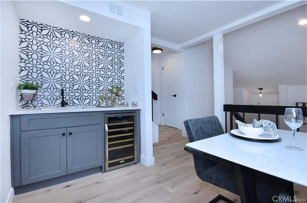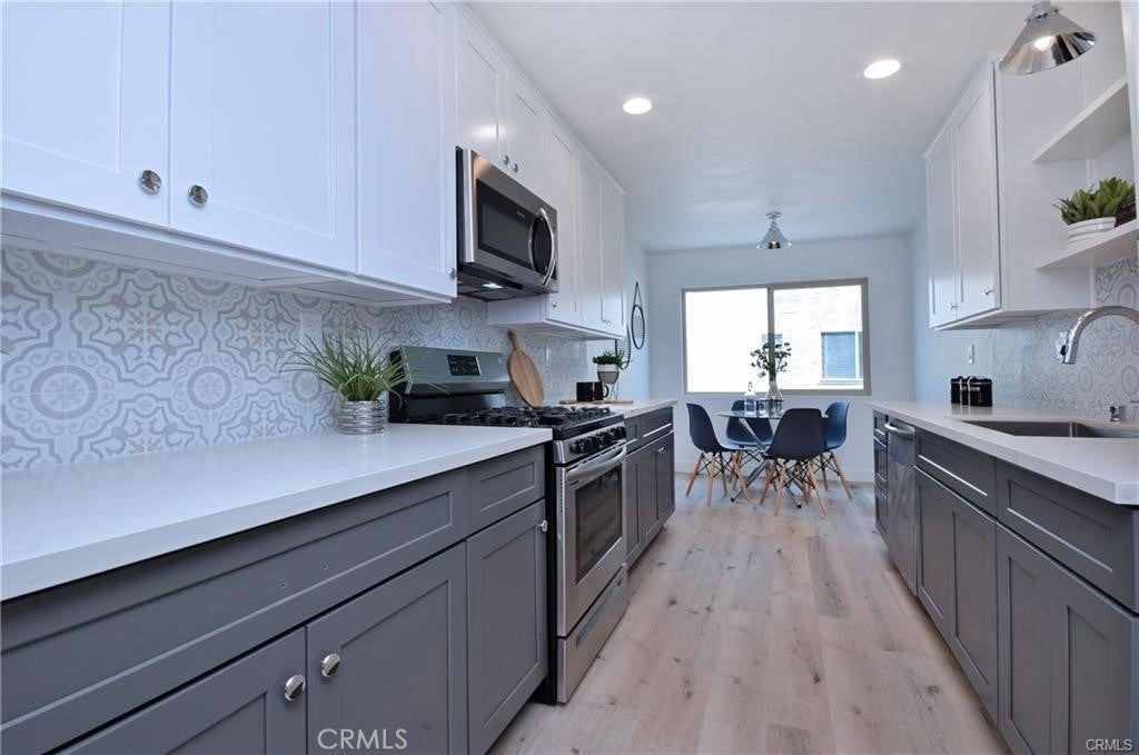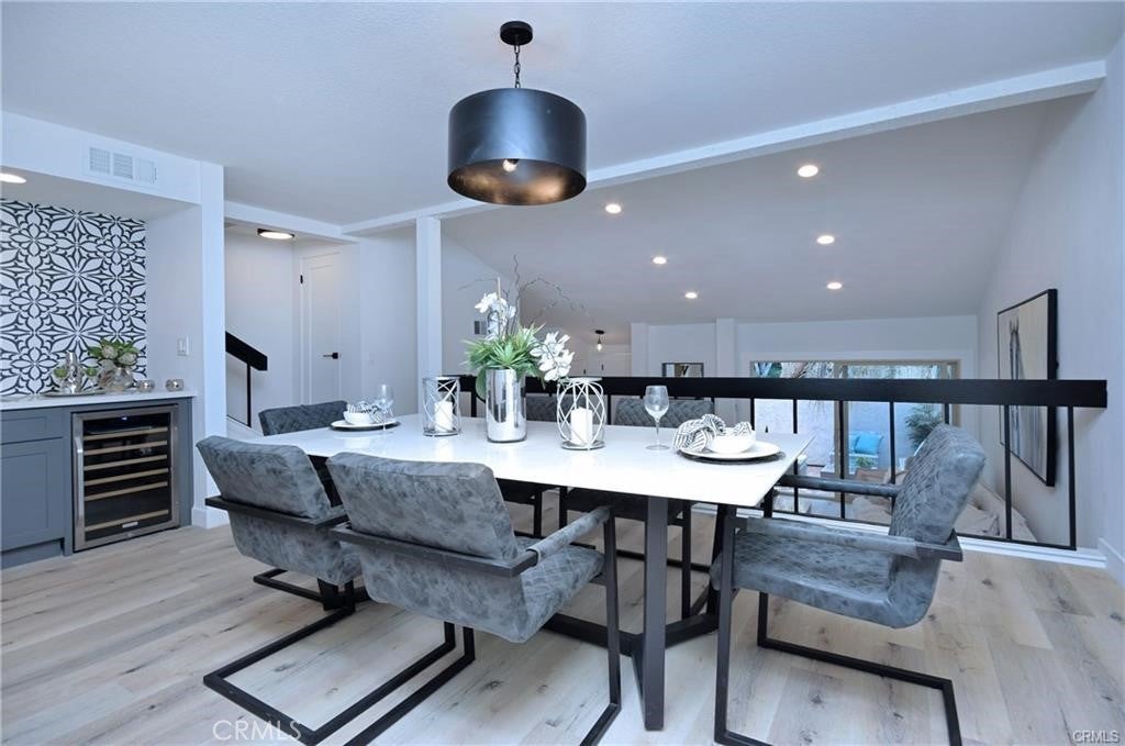 Experience the perfect balance of comfort, style, and convenience in this luxurious tri-level townhouse, completely renovated and located in one of the most desirable areas of Woodland Hills. This light, bright, and airy home features an open-concept living area with high ceilings, modern flooring, a cozy fireplace, and direct access to a private gated patio perfect for outdoor entertaining or quiet relaxation. The spacious dining area includes a wet bar with a wine cooler and flows seamlessly into the updated kitchen. Designed for both function and beauty, the kitchen showcases white shaker cabinets, quartz countertops, custom tile backsplash, and stainless steel appliances, with a convenient eat-in area ideal for casual dining. The refrigerator, washer, and dryer are all included, making this home truly move-in ready. The expansive primary suite is a true retreat, featuring two walk-in closets, a wall-to-wall window seat, and an elegant en-suite bathroom behind a sliding barn door. The remodeled bathroom includes dual sinks, a sleek vanity, and a fully tiled shower and bath with updated fixtures. The second bedroom, located on the main level, offers easy access and includes its own beautifully remodeled bathroom with a marble tile walk-in shower and modern finishes. Additional upgrades include central HVAC, windows and sliding doors, and stylish lighting fixtures throughout. The attached two-car garage offers direct access to the home. Positioned in an ideal spot within the community, this unit provides easy access for guests and convenient proximity to parking. Residents enjoy meticulously maintained grounds, a sparkling pool, and a relaxing spa. The gated complex offers peace of mind and a resort-like setting. This townhome is ideally located just two blocks from The Village, Westfield Topanga, restaurants, shopping, and Warner Center Park with its summer concerts. You’re also minutes from the future Rams Village at Warner Center, which will bring even more dining, entertainment, and recreation options to the area. Whether you’re hosting gatherings in the elegant dining area, relaxing by the fireplace, or enjoying coffee on your private patio, this home provides an exceptional lifestyle in one of the most convenient and vibrant communities in Woodland Hills.