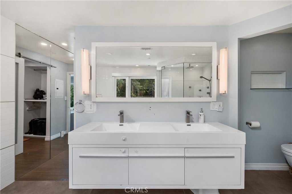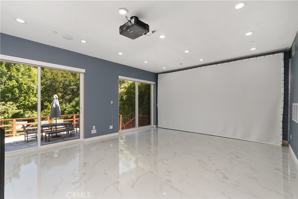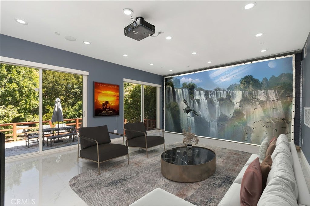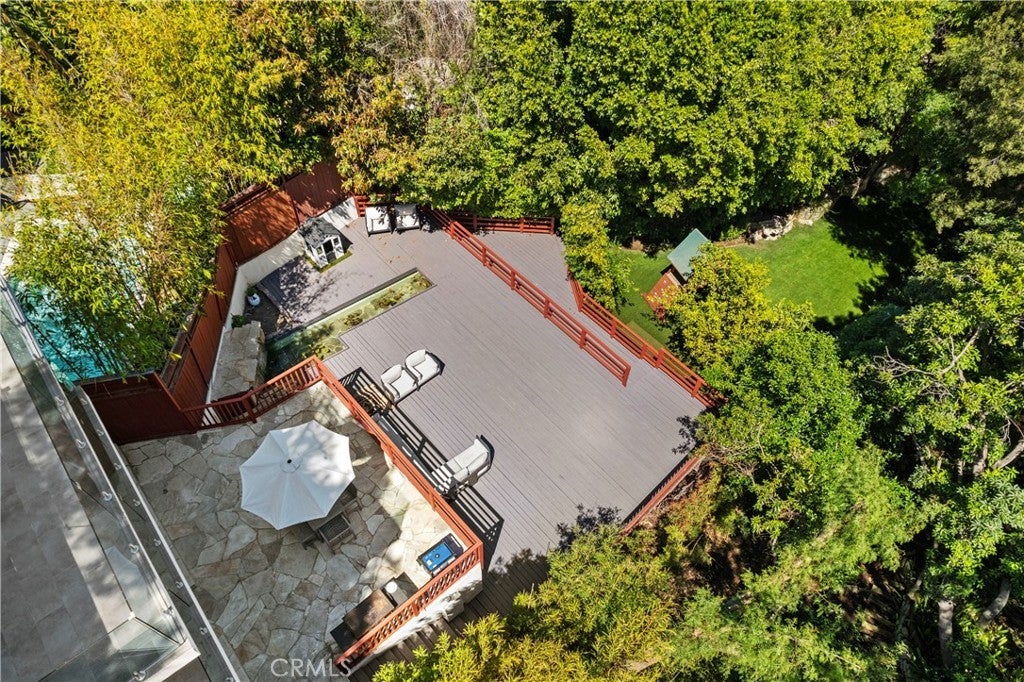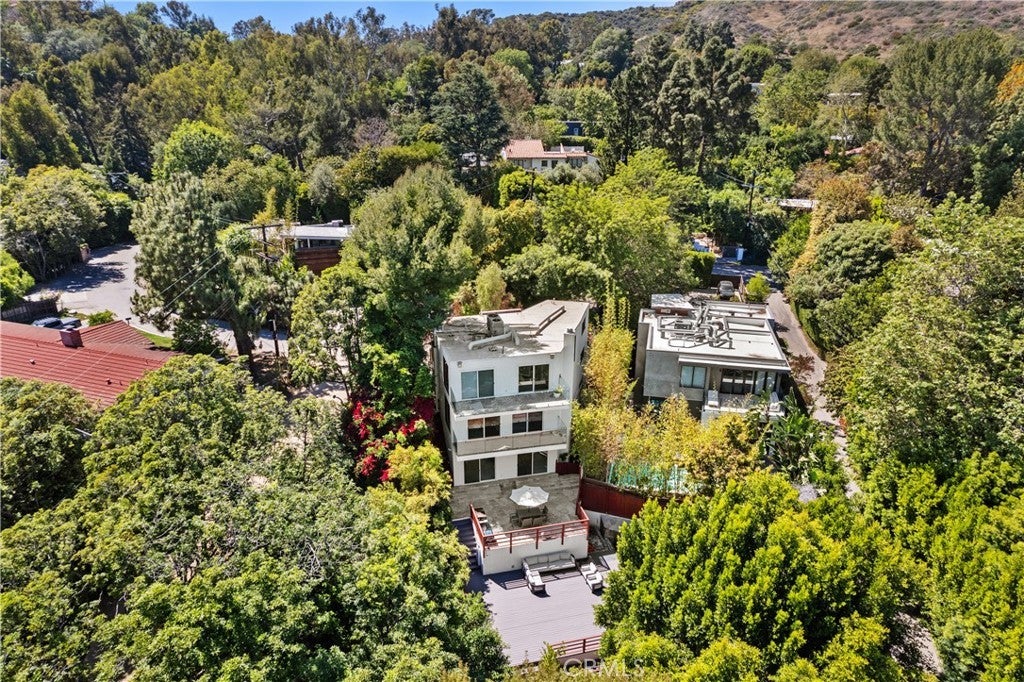 Corporate owned and competitively priced at $2,695,000, this striking modern retreat occupies one of the most coveted addresses on Hollywood’s Prime Celebrity Row—a destination known for privacy, prestige, and proximity to the Sunset Strip. Walls of glass frame serene canyon and treetop views, creating seamless indoor-outdoor living across nearly 3,100 sq ft of contemporary design. Expansive decks invite effortless entertaining, from sunset cocktails to dinner parties under the stars. Inside, open living spaces flow together with natural light and clean architectural lines. The dramatic primary suite offers a spa-inspired bath, custom walk-in closet, and a private balcony suspended in the trees. The flat backyard with turf lawn and koi pond provides a peaceful, low-maintenance setting with ample space to add a pool or spa if desired. Additional features include wide-plank oak floors, smart-home technology, a new HVAC system, elastomeric roof coating, and an 8-camera security system. With parking for five cars and direct Runyon Canyon trail access, this home delivers the rare blend of privacy, design, and location that defines the Hollywood Hills lifestyle.