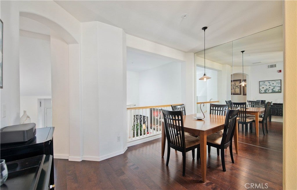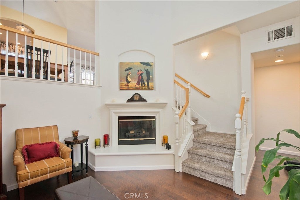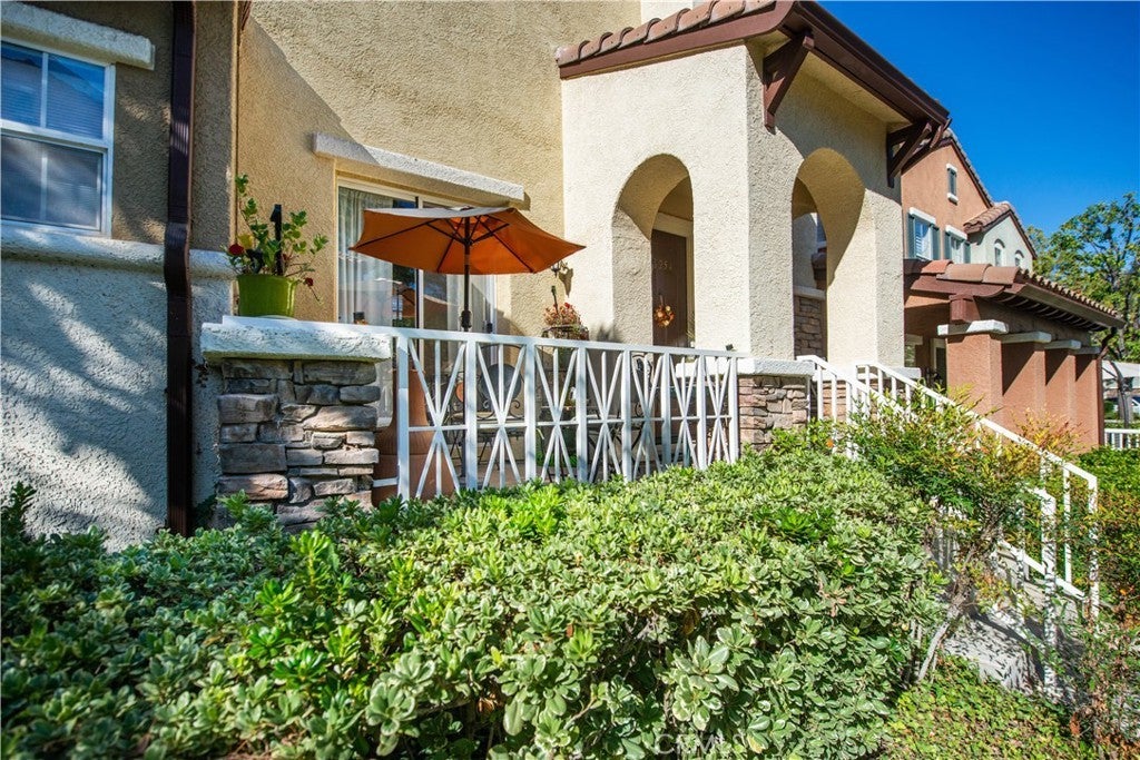 Welcome to this charming 2 bedroom, 2.5 bathroom townhome located in the highly sought-after Village Walk community in Valencia Northpark. Stroll along the beautifully landscaped pathways shaded by mature trees and arrive at the inviting front entrance. Inside, the first floor features a cozy living room with a warm fireplace, beautiful birch wood flooring, and serene views of the patio and greenbelt. Upstairs, the second level boasts a formal dining room that overlooks the living room, creating an open feel. Adjacent to the dining space is the bright kitchen, complete with tile countertops, white appliances including a new dishwasher, and a breakfast bar. The kitchen seamlessly connects to a comfortable family room. A convenient powder room is also located on this level. Birch wood flooring continues throughout the first and second floors, adding to the home’s cohesive design. A built-in desk at the stair landing provides an ideal workspace for a home office setup. On the third floor, you’ll find both bedrooms. The primary suite features a walk-in closet and an en-suite bathroom with luxury vinyl flooring. The secondary bedroom also includes its own private bathroom with a shower/tub combo and luxury vinyl flooring. The laundry area, equipped with a stackable washer and dryer, is conveniently located near both bedrooms for added ease. Step outside to the private patio—an ideal space for BBQs, morning coffee, or simply relaxing while enjoying the peaceful greenbelt views. Additional highlights include an attached two-car garage with direct access and access to the community’s sparkling pool and spa. Ideally situated near parks, schools, shopping, dining, and Valencia’s scenic walking paseos. Best of all, there is no Mello Roos!