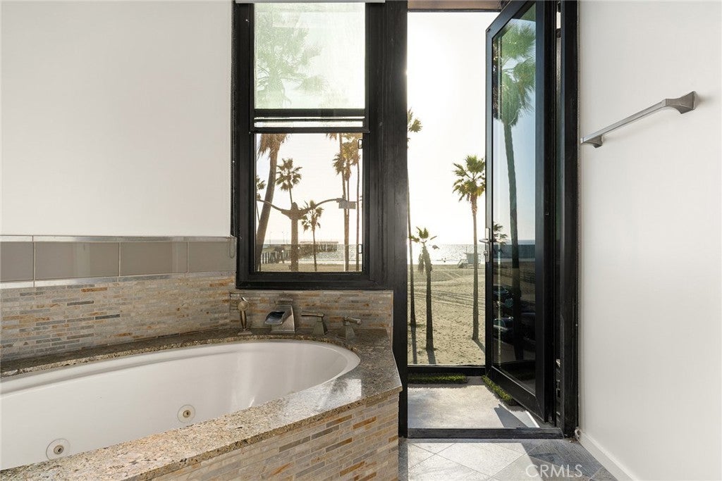 Oceanfront townhouse in the most desirable part of Venice Beach! Wake up to the breathtaking views of the Pacific Ocean from the Santa Monica Mountains all the way to the Marina Coast! This beautifully modern built multi-level townhouse on the beach is the ideal home for those seeking a respite from the complications of day-to-day life in Los Angeles, yet easily accessible from the rest of the city. Large living room with views of the ocean and adjacent kitchen equipped with built-in appliances, such as Miele coffee maker, microwave oven, stove/oven combo and multiple wine coolers which create a welcoming space for you and your guests. White Italian marble floors in the living room, guest bedroom and kitchen with a large balcony facing the ocean on the first floor and the second floor consists of the beach facing master bedroom/bathroom with its own oceanfront balcony along with a 3rd bedroom with side views of the beach. Master bathroom is large a hot tub and steam bath facing the ocean. There are magnificent views of the beach from every corner of this beautifully designed townhouse. Shared roof deck on the top floor provides 360 degree views of the ocean and city. Unit is located in a two unit complex and has exclusive access to one garage parking space and a shared guest parking space. Laundry facilities are located on the first floor next to the garage.