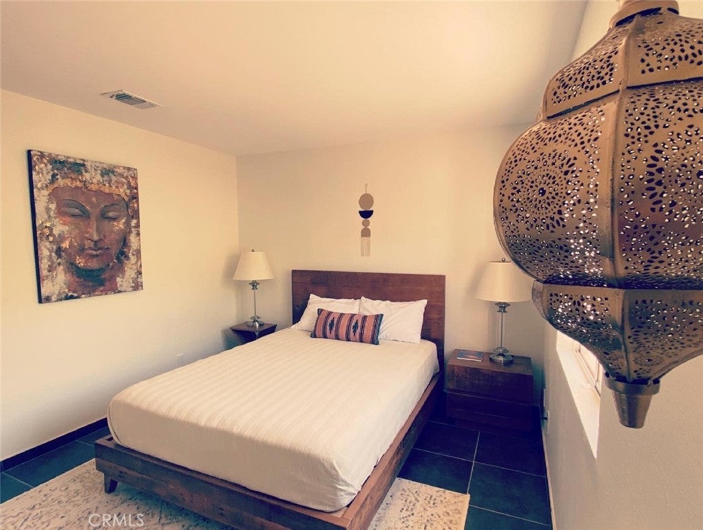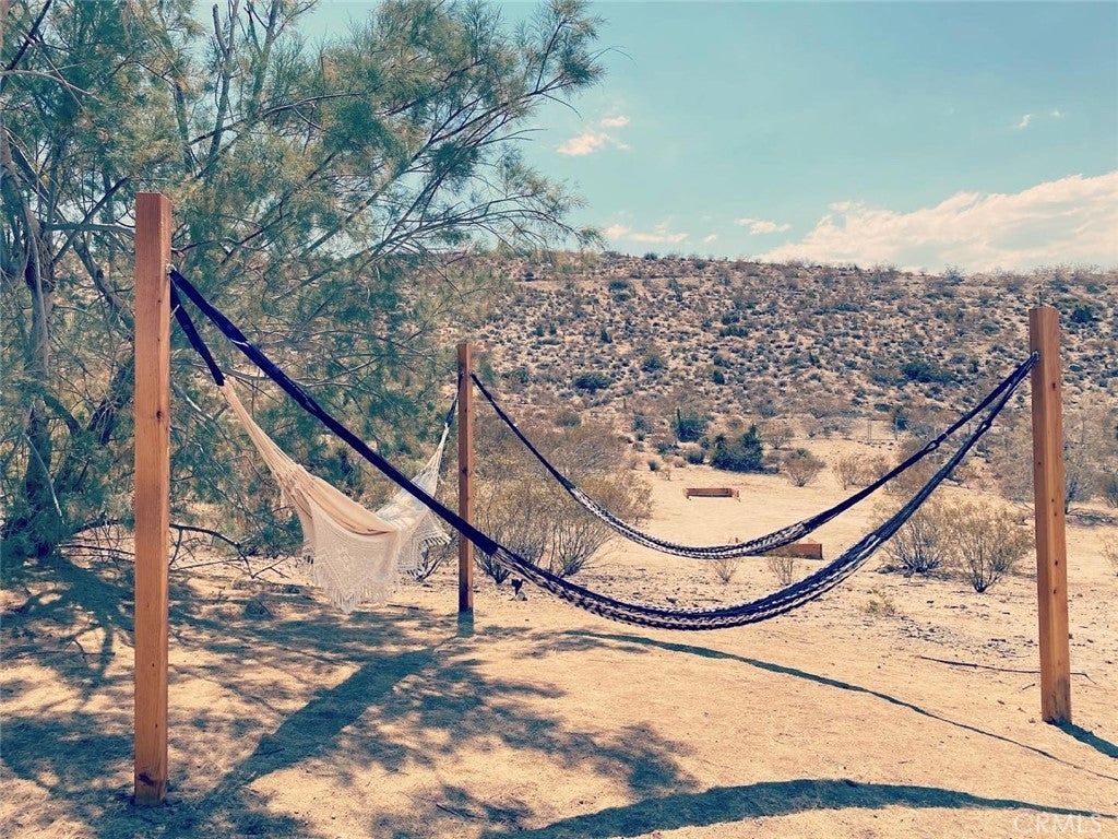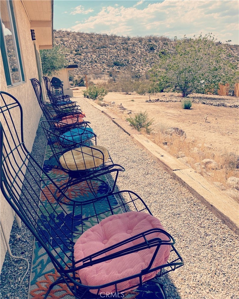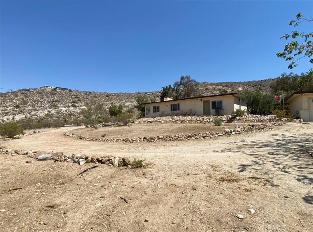 A renovated mid-century modern home nestled hillside on 1.18 acres of fully fenced land. Amazing property with extensive valley and mountain views. Great, rare location! Close to town, yet tucked away hillside on an elevated lot which boasts ample open space. Sweeping panoramic views of the valley below with city lights in the distance at night. Views, Views, views! Currently an Airbnb rental which is able to be negotiated turn-key furnished; including all indoor furnishings and art, as well as all outdoor furniture, cowboy tub, built-in hammock trio, horseshoe pits, fire-pit, built-in tether ball pole, and BBQ. This renovated 3-bedroom, 2-bath 1530 sqft. home with detached garage features large mid-century style windows bringing the outdoors in - lots of natural light. Original stone fireplace, central heat and air. Exterior features several mature tree's, and irrigated landscaping. Three Joshua tree's, two olive tree's and more. The Broker/Agent/Seller makes no guarantee's regarding the accuracy of square footage, lot size, zoning, or any other property details provided, sourced from public records, or other sources. Buyers are encouraged to independently verify all information through personal inspection and consultation with the appropriate professionals.