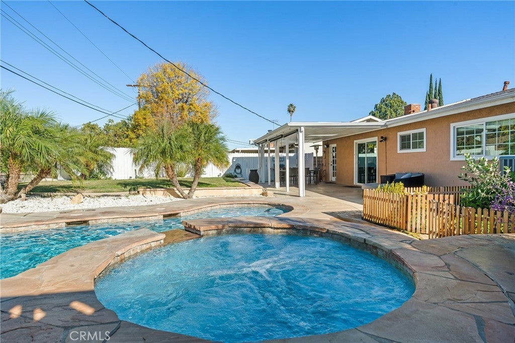 This immaculate and well-maintained, gated West Hills home is located within the highly desirable Welby Way, Hale & El Camino School Districts and is UPDATED throughout with 4 Bedrooms, 2 full Baths and over 2,000 sqft. of living space. The luxurious and oversized primary bedroom provides a private retreat with vaulted ceilings, separate entrance, attached bathroom and water closet, and extra-spacious walk-in closet with bonus storage room attached. There are three additional bedrooms, two with views of the resort-like back yard, and all with ceiling fans and customizable Hue lights. All appliances are energy efficient and there is recessed LED lighting throughout and a customizable Nest thermostat to manage energy use. The updated kitchen features custom cabinets with tons of storage space, pull-outs, and extra-wide drawers, a large kitchen island, and newer appliances (all included). Adjacent to the kitchen is the laundry room (washer/dryer included) with added storage racks, spacious cabinetry and a separate entrance to the backyard. The rear of the home features a beautiful and lush “zen garden” with pond and sitting area to relax and recharge while listening to the waterfall flowing into the sparkling, heated pool and spa. There is a large, covered patio for convenient for indoor / outdoor dining, entertaining, grilling and sunbathing, as well as a grassy lawn, herb garden, rose bushes, and mature pomegranate and lime trees, all surrounded by tall brick walls offering privacy and seclusion. The front yard features beautiful landscaping, a towering coral tree (recently trimmed back), a covered carport with secure parking for up to three vehicles, and an EV charging station. The home is conveniently located next to Pavilions, Rite-Aid, UPS, Starbucks, and more, and a short drive from the Westfield Topanga Mall, the Village, and the Calabasas Commons, as well as nearby parks and hiking trails.