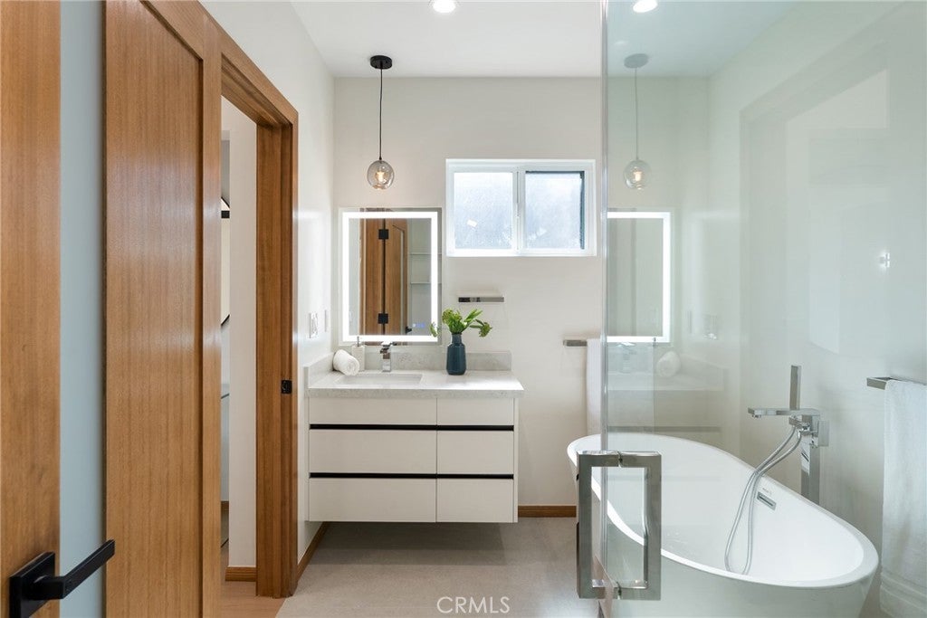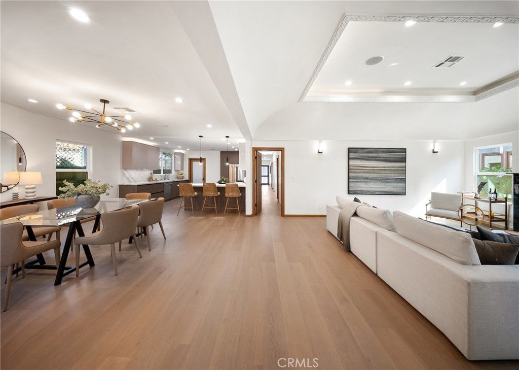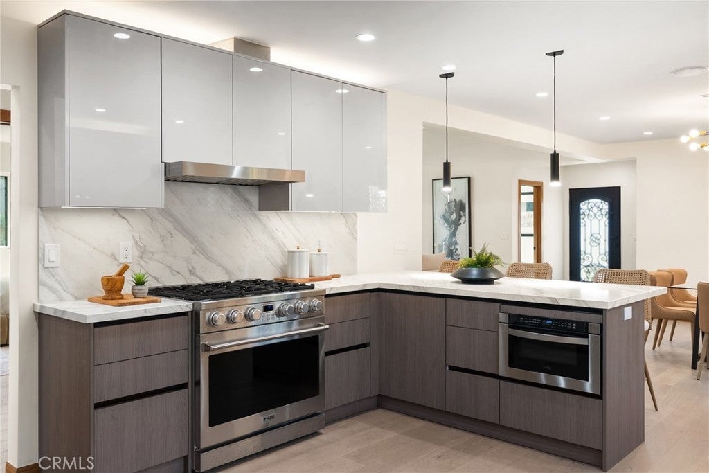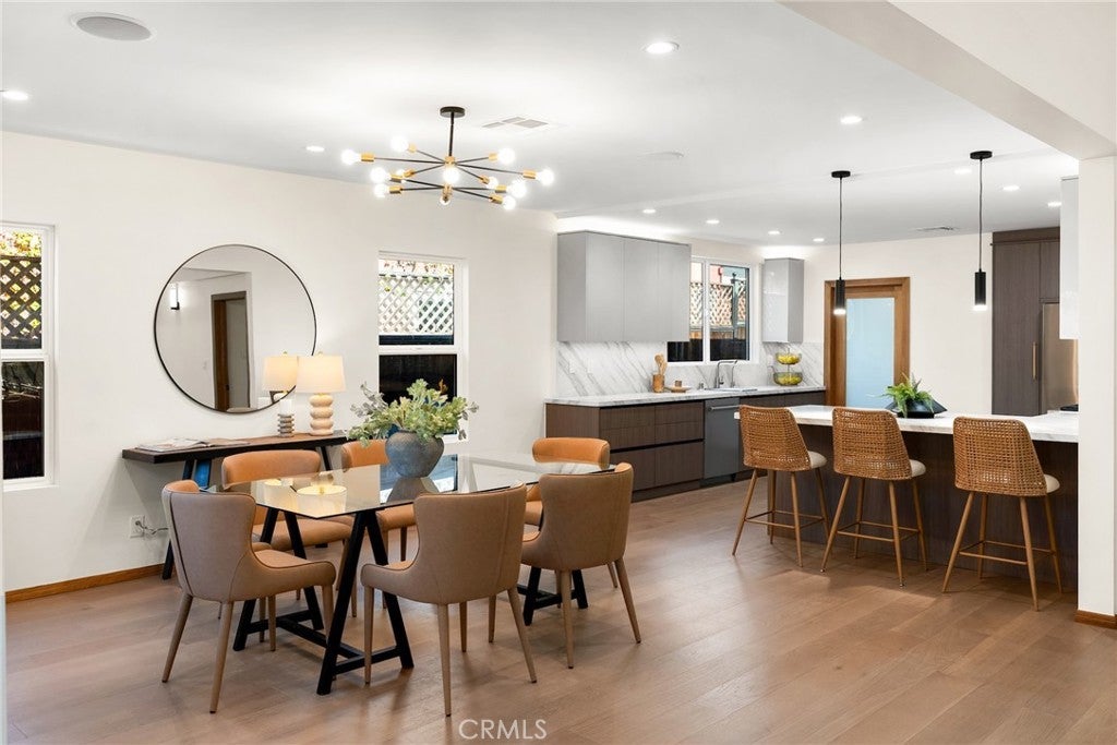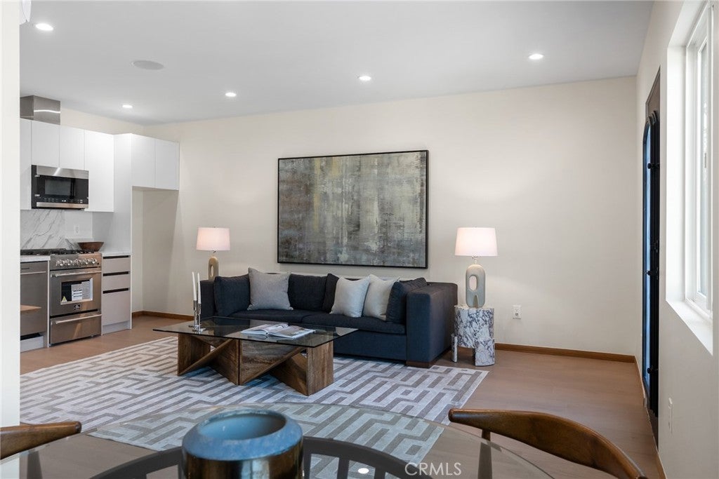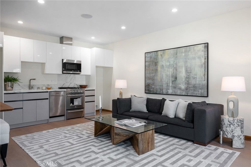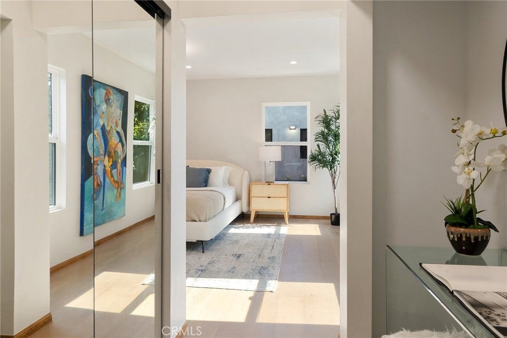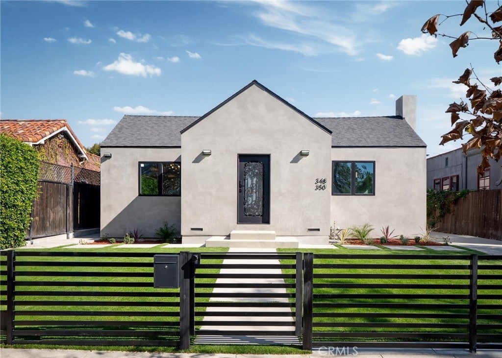 Welcome to this stunning, newly remodeled contemporary residence that beautifully blends timeless Spanish character with modern design and luxury finishes. Step into this fully reimagined 2025 remodel, a gated and private 4-bedroom, 4.5-bath home where every detail reflects high-end craftsmanship and sophisticated style. As you enter the home, you’re immediately greeted by an inviting open-concept floor plan that seamlessly connects the dining area, kitchen, and living room. Natural light floods the space through large windows, highlighting the white oak floors, recessed lighting, skylights, and designer fixtures that bring warmth and modern elegance throughout. The chef’s kitchen is a show-stopping centerpiece, featuring professional-grade appliances, custom cabinetry, and stone-slab countertops designed for dining and entertaining. A dedicated laundry and storage room leads to a versatile basement, perfect for a home office, gym, or creative studio. The adjacent dining area offers an ideal setting for gatherings, while the spacious living room with its statement fireplace provides a cozy focal point for relaxing or entertaining guests. The primary suite is a peaceful retreat, complete with a large walk-in closet, a built-in closet & make-up area. A spa-inspired bathroom with a walking shower & a soaking tub. All bedrooms are en-suite with generous closet space, built-in sound systems, and motion lighting for modern comfort. The private backyard oasis offers lush landscaping, artificial grass, and plenty of room for dining, entertaining, or adding a future pool or spa. The detached ADU includes a 1-bedroom, 1-bath layout with its own living room, dining area, and kitchen, ideal for guests, extended family, or additional rental income. Every major system has been replaced, including electrical, plumbing, roof, and much more. The property also features a sound system, security cameras, motion lighting, and custom built-in cabinets and bookshelves. The front yard provides additional outdoor space to enjoy the charming neighborhood atmosphere, the perfect balance of privacy and community. Moments from Hancock Park, Larchmont Village, 3rd Street, The Grove, Hollywood, premier dining and shopping centers, this home offers the very best of California living in a vibrant yet peaceful central Los Angeles neighborhood, all within the top-rated Third Street School District. Come experience this exceptional home for yourself, fall in love, and call it home.