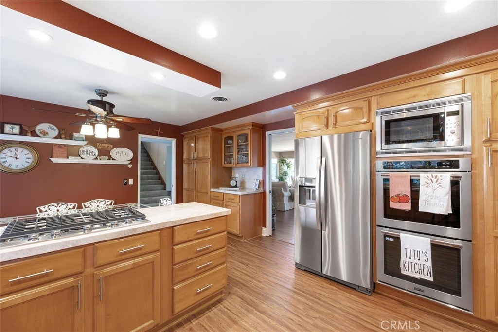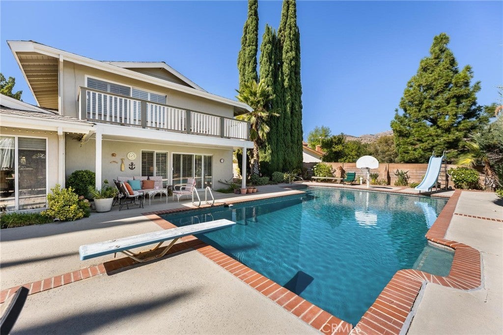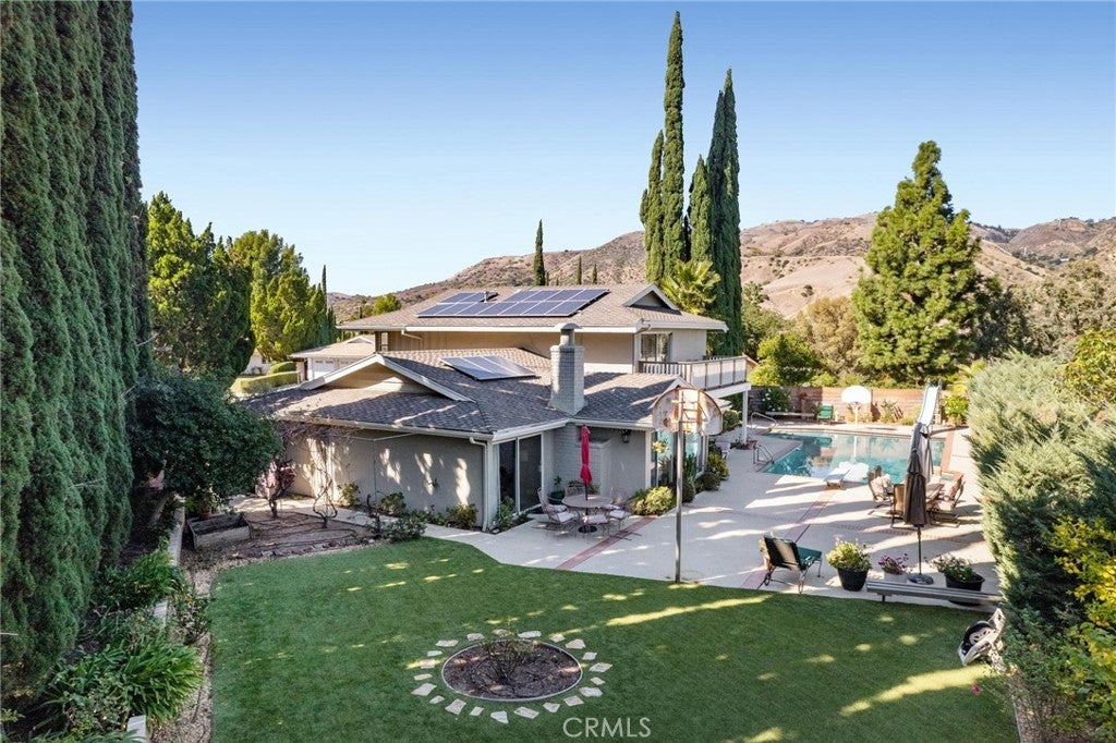 Welcome to 12110 Braemore Place, a beautifully updated home ideally situated on a cul-de-sac north of Rinaldi in the highly desirable Porter Ranch community. This inviting 3-bedroom, 3-bathroom residence blends modern upgrades with exceptional comfort and space, perfect for both everyday living and entertaining. Step inside to discover a remodeled eat-in kitchen featuring stunning quartzite countertops, stainless steel appliances, and abundant cabinetry. A formal dining room opens to a spacious family room with a cozy fireplace, while a separate downstairs den offers flexibility as a home office, playroom, or easily converted 4th bedroom. Upstairs, the primary suite offers two closets, an en suite bathroom with an updated double-sink vanity and large walk-in shower, along with a private balcony showcasing serene mountain views. Enjoy the ultimate backyard retreat—one of the largest lots in the neighborhood—with a generous grassy area, oversized pool, basketball court, and fruit trees, creating the perfect setting for gatherings and outdoor fun. Additional highlights include a 3-car garage, newer A/C system, plantation shutters, sewer sub-meter, Moen leak detector, and fully paid solar panels for energy efficiency. Conveniently located near The Vineyards at Porter Ranch, offering top dining, shopping, and entertainment, and within the highly sought-after Granada Hills Charter High School district—this home perfectly combines comfort, function, and lifestyle in one of Porter Ranch’s most desirable pockets.