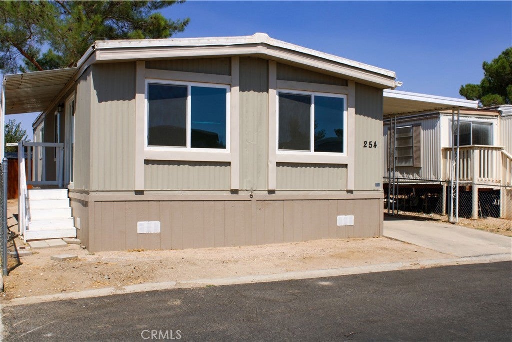Remodeled 2-bedroom, 2-bath mobile home in Desert Oasis family park in Rosamond, presents a fresh look, practical upgrades. The exterior features a newly painted facade in light, reflective colors. Inside, the home boasts durable vinyl plank flooring, and a great floor plan. The kitchen is upgraded with new cabinetry, and stylish countertops. Dont miss out, it is a must see!!