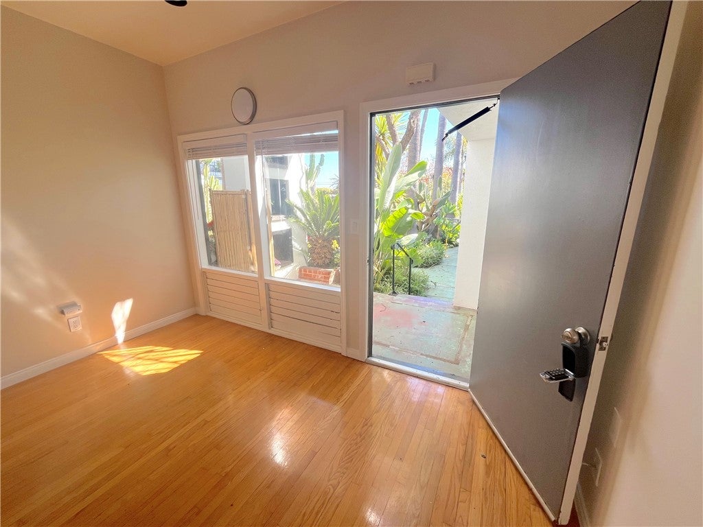 Fantastic north Laguna location just a block from the beach and downtown shops and restaurants! Melrose Place style apartment complex with beautifully landscaped grounds and central courtyard. This ground level one bedroom apartment has a private front entrance as well as a secondary access from the bedroom. The large windows allow for plenty of natural light to peak through. The original hardwood floor throughout the living room have been refinished to an almost perfect condition. A large white kitchen with an eat in bar opens up the living space and is perfect for entertaining. The bedroom comes with a built in closet with plenty of storage space. Assigned parking spot available for $75. TWO WEEKS FREE PROMOTION!!