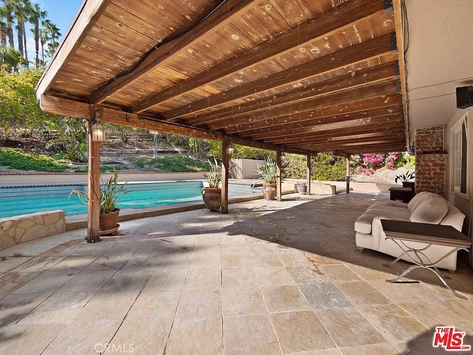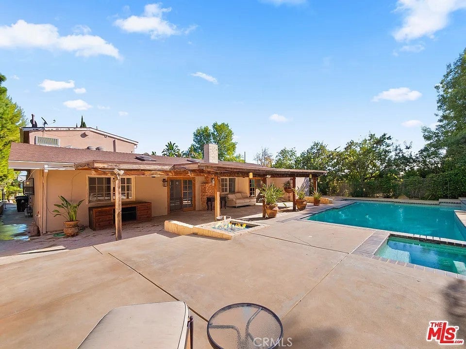 Welcome to this bright and expansive home featuring an open floor plan, dramatic vaulted ceilings, and skylights that flood the space with natural light. With 5 spacious bedrooms, 4 bathrooms, and a bonus room, this home offers versatility and space for any lifestyle. Enjoy the luxury of two master suites, each boasting large walk-in closets. The upstairs master is ideal as a private in-law unit, complete with panoramic valley views—the perfect setting to enjoy fireworks and sunsets. Unwind in the spa-like master bath, complete with a steam sauna designed to melt the stress away. The main living areas feature stylish tile flooring, while the bedrooms offer the warmth of hardwood. The seamless indoor-outdoor flow leads to an entertainer’s backyard with a covered patio, sparkling heated pool, fire pit, and built-in skylights for year-round enjoyment. Located within the highly sought-after El Camino Real Charter High School district (LAUSD), this home checks all the boxes for comfort, convenience, and luxury. IMPORTANT: Please note these photos are not the current state. Home has gone under minor renovations after previous tenants moved out. Home is virtually staged. Kitchen counters have been replaced.