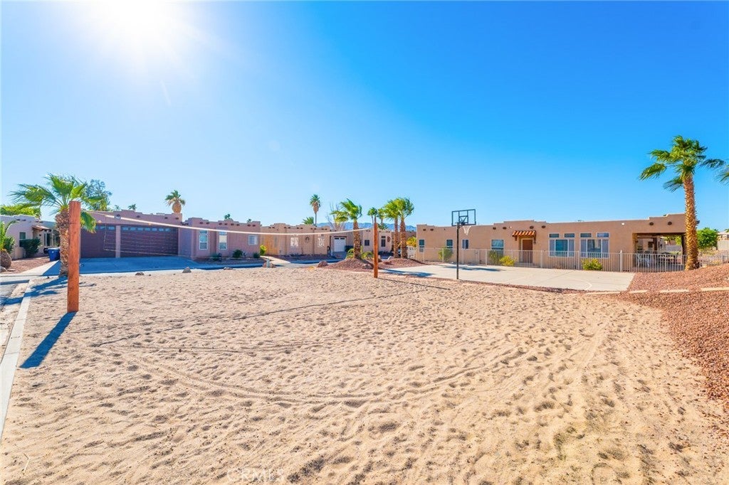 Welcome to your river retreat! This beautifully maintained 3-bedroom home, with a den that can double as a 4th bedroom, offers comfortable desert living at its finest. Bright and spacious with an open-concept layout, it features a large living room, dining area, and kitchen - perfect for entertaining or relaxing after a day on the water. Additional highlights include skylights, a separate laundry room, and a warm, inviting atmosphere throughout the community. Located in a friendly neighborhood, this home is ideal for both full-time residence and vacation getaway. The community amenities include private beaches with golf cart parking, a basketball and volleyball court, a pool, and a spa - all for the residents’ enjoyment. Best of all, it is just steps from the water and minutes from the Colorado River, Needles Marina, and Needles Golf Course! Step outside to a fully fenced backyard designed for entertaining or unwinding under the desert sky. Enjoy a covered patio, built-in gas and BBQ, and a cozy gas fire pit- the perfect spot to take in those peaceful, spectacular sunsets. The property also features an attached large 2-car boat garage, with interior access and a rear door for easy river access. Do not wait- this beautiful river home!