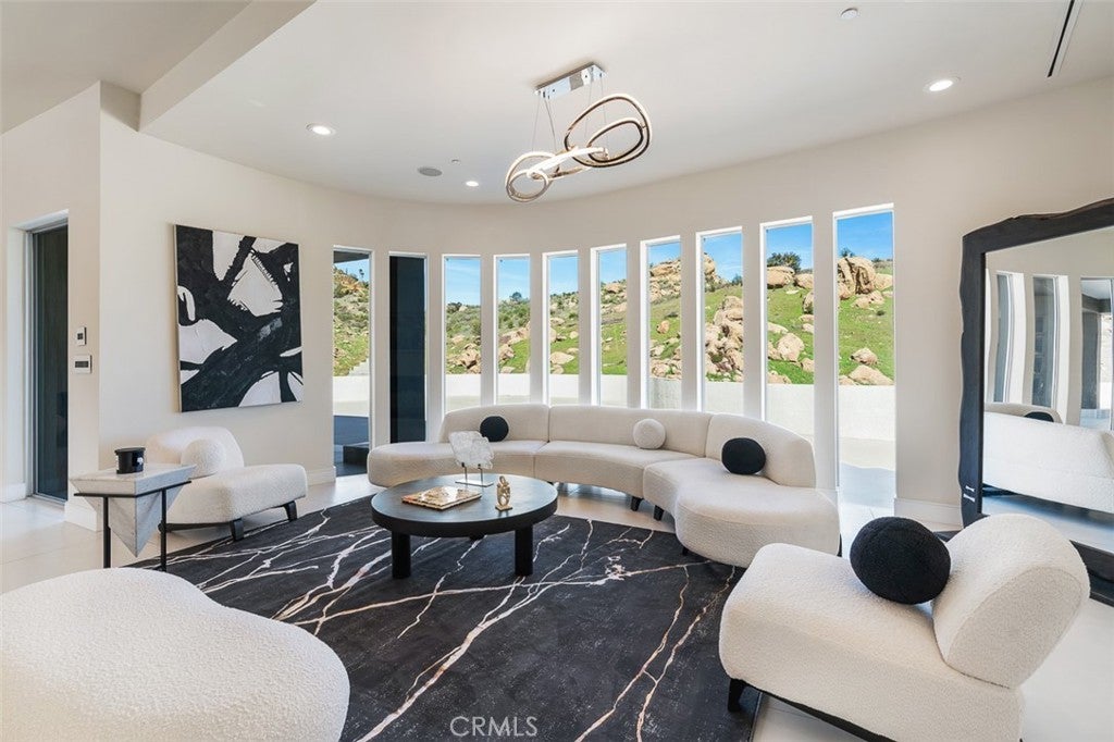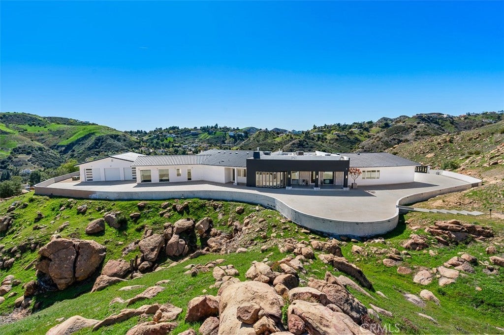 Discover the pinnacle of luxury living in this 2020-built, single-story modern estate, situated on over 31 private acres in the prestigious guard-gated community of Bell Canyon. Accessed via a triple-gated entry and a quarter-mile private driveway, this architectural masterpiece offers unobstructed 360-degree mountain vistas, ensuring both serenity and seclusion. As one of the most coveted properties in Bell Canyon, this estate boasts 5 spacious bedrooms and 5.5 opulent bathrooms across 6,751 square feet of meticulously designed living space. Constructed with steel framing, copper plumbing, and premium insulation, the home exemplifies quality and durability. Inside, wide plank oak flooring and Italian 48x48 Imola tiles complement soaring ceilings and solid core doors adorned with EMTEK chrome hardware. The state-of-the-art chef's kitchen features a massive center island, mother-of-pearl backsplash, Thermador appliances, and a 16-foot buffet—perfect for entertaining. Every room is bathed in natural light, offering breathtaking mountain views. This property captures the perfect balance of privacy, grandeur and tranquility. Additional amenities include a media/ballroom, game room, and an entertainer's wet bar. The grand primary suite offers seamless indoor/outdoor living, an all-stone spa-like bath, and a 370-square-foot walk-in closet. The estate's expansive grounds feature large flat areas ideal for equestrian pursuits or recreational activities. Bell Canyon's Class-A equestrian facility accommodates over 75 horses and is open to both residents and non-residents. Community amenities include parks, hiking trails, pickleball and tennis courts, playgrounds, a residents' gym, and organized events for all ages.The large backyard offers a fully equipped barbecue center, fireplace with patio seating, room for your own farm or ADU or extra car garage, plus loads of space for year-round relaxation or hosting family gatherings, all framed by peaceful views of the surrounding hills & mountains. This elegant home is also served by the award-winning Las Virgenes School District, which provides convenient bus service for Bell Canyon residents.This home has its own fire hydrant connected to the city in case of emergencies, Price reduced by $499,000 to account for the home being offered without a swimming pool. For buyers who would like to add one, full engineering plans are already completed and available. This home is also available for rent @$28,000