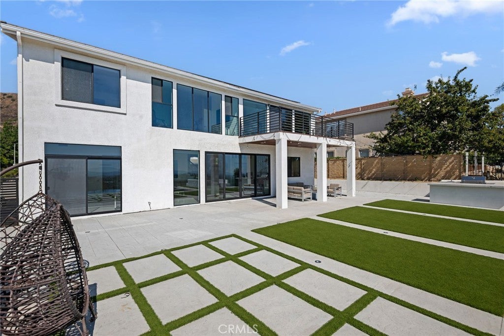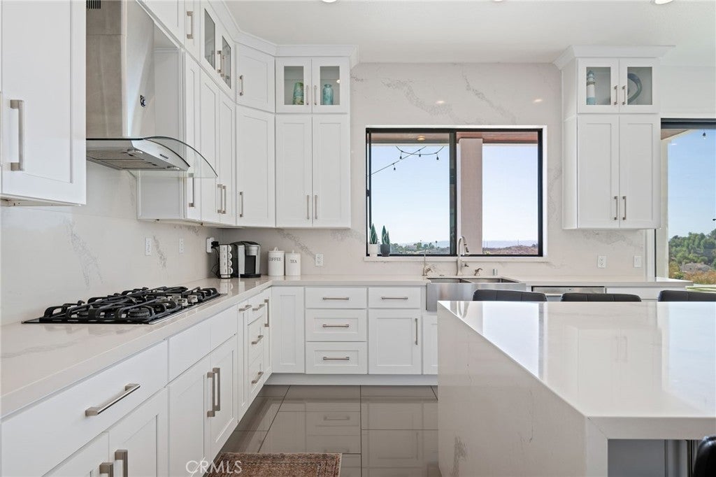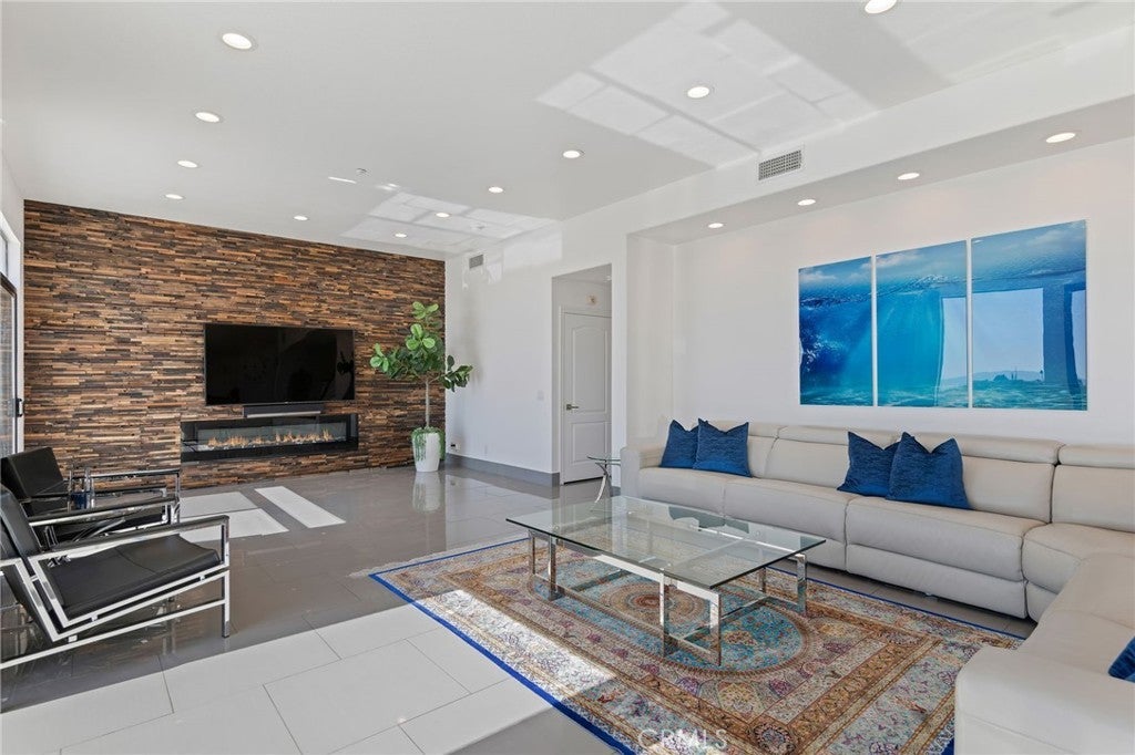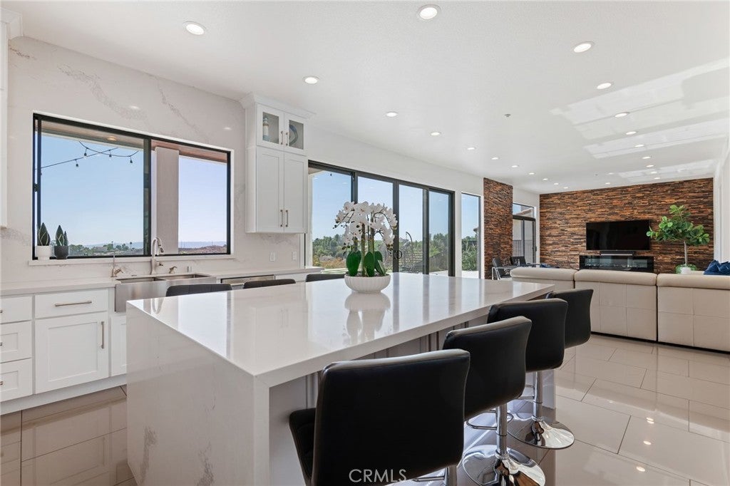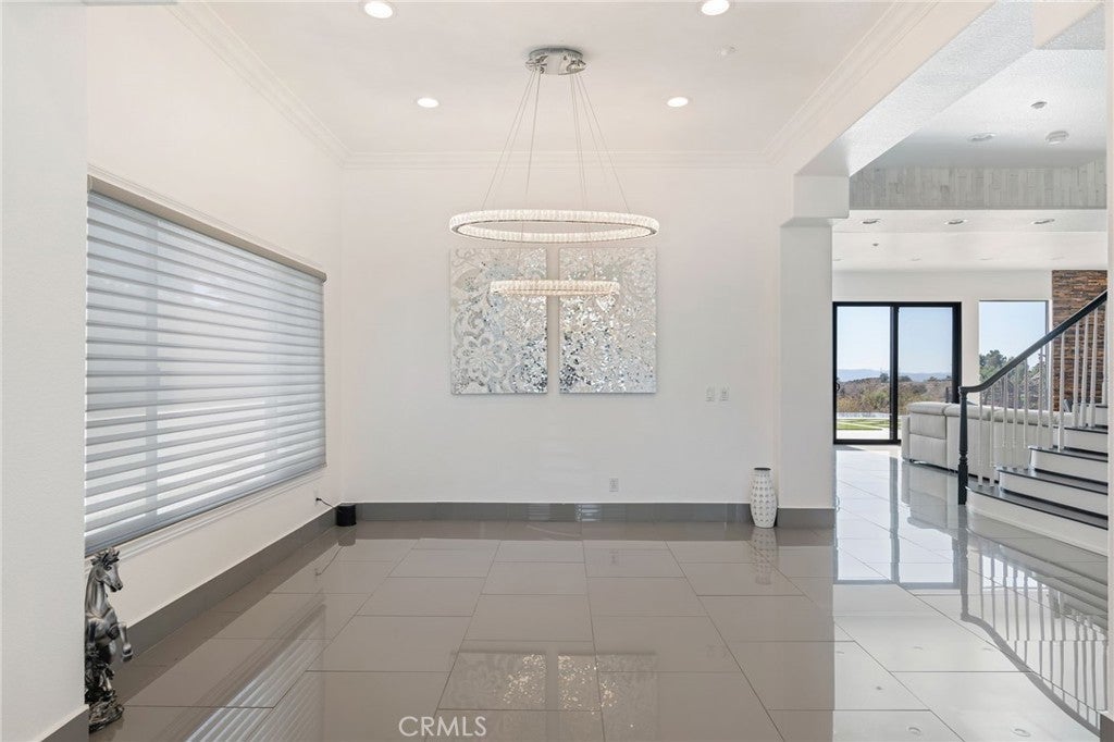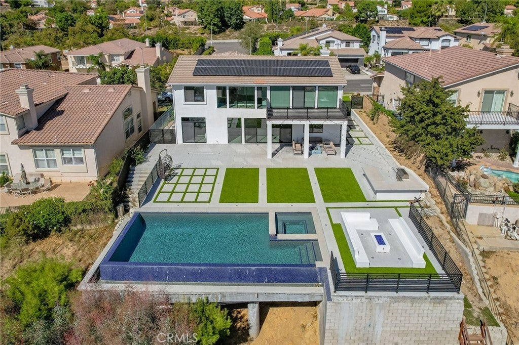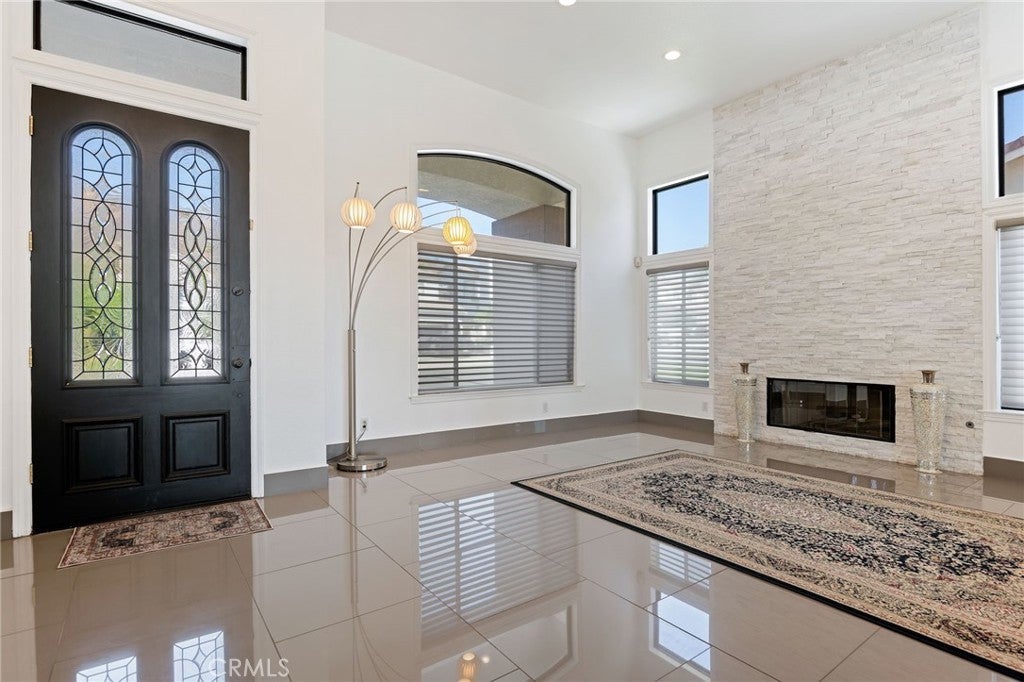 Masterpiece of Modern Luxury and Timeless Elegance! Step into a world of refined sophistication and breathtaking beauty at this exquisitely remodeled estate, perfectly situated to capture panoramic views of the San Fernando Valley and beyond. From the moment you enter through the custom front door, the grand entrance sets the tone for the luxury that awaits. The opulent living room greets you with custom stone flooring and a striking stone fireplace, offering a warm and elegant ambiance. Adjacent, the formal dining room seamlessly connects for effortless entertaining, making every gathering a special occasion. At the heart of the home lies a true chef’s kitchen – a culinary dream outfitted with top-of-the-line stainless steel appliances, double ovens, a built-in microwave, and quartz countertops with a waterfall edge. The oversized island is ideal for casual dining or hosting, while a walk-in pantry and window showcasing mountain and city light views complete the space. The spacious family room features soaring ceilings, recessed lighting, and a custom stone accent wall with a built-in fireplace. A sleek custom slider opens to your private backyard oasis, blurring the line between indoor and outdoor living. On the main level, a full bathroom with a custom shower adds both convenience and luxury. Ascend the custom wood staircase, accented by a stunning marble wall, to discover the primary suite – a true sanctuary. Enjoy your own private balcony with sweeping, floor-to-ceiling views of the valley and city below. The spa-inspired en-suite bathroom has been fully reimagined with a soaking tub, luxurious stone finishes, and a serene atmosphere perfect for unwinding. The upper level also offers an expansive loft with uninterrupted panoramic views, ideal for a media space, home office, or additional lounge. A downstairs indoor laundry room and energy-efficient solar panels add practical comfort to the home’s abundant style. Show-stopping backyard is an entertainer’s dream. Dive into the custom infinity pool and spa, gather around the fire pit, or prepare a meal in the custom outdoor kitchen. Multiple sitting areas, additional fire features, and lush landscaping complete this ultimate resort-style retreat. This home is a private escape where luxury, design, and natural beauty converge. Experience the pinnacle of Southern California living in this one-of-a-kind estate that delivers elegance, comfort, and unmatched views in every direction.