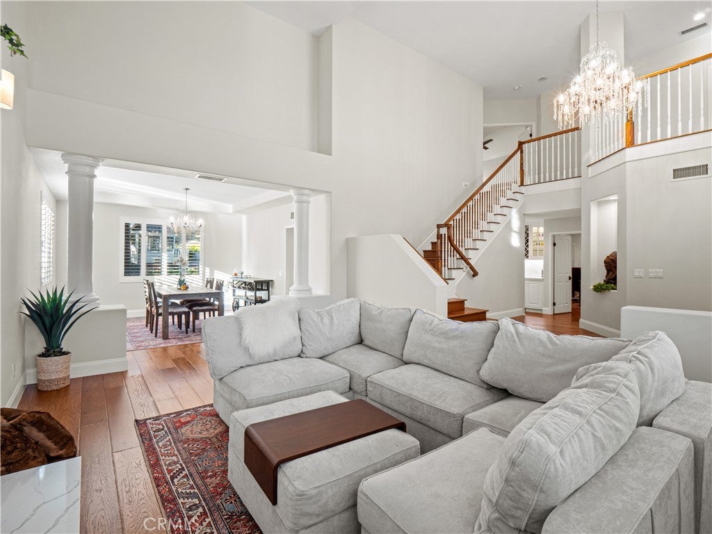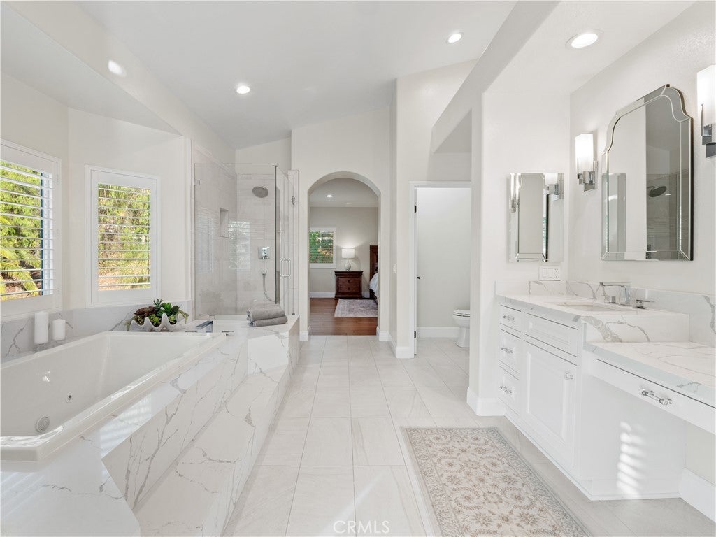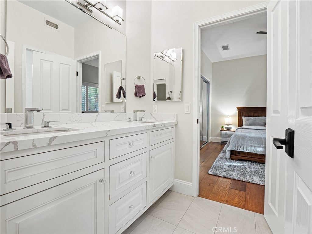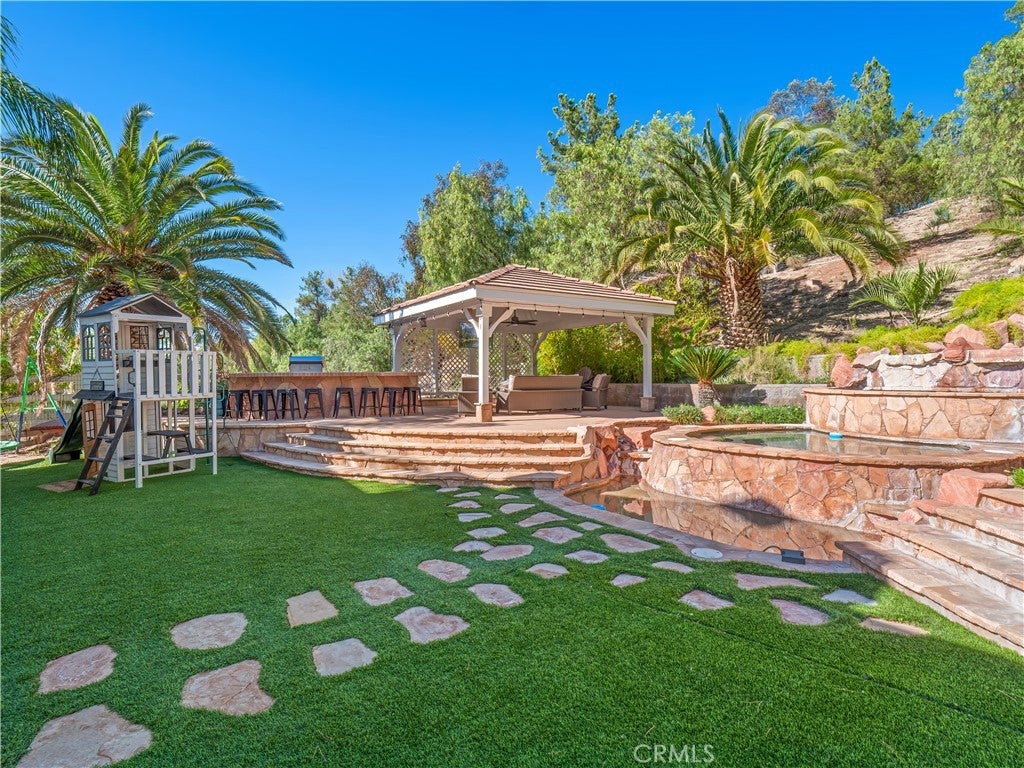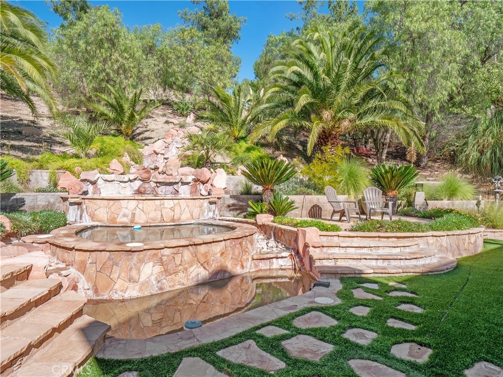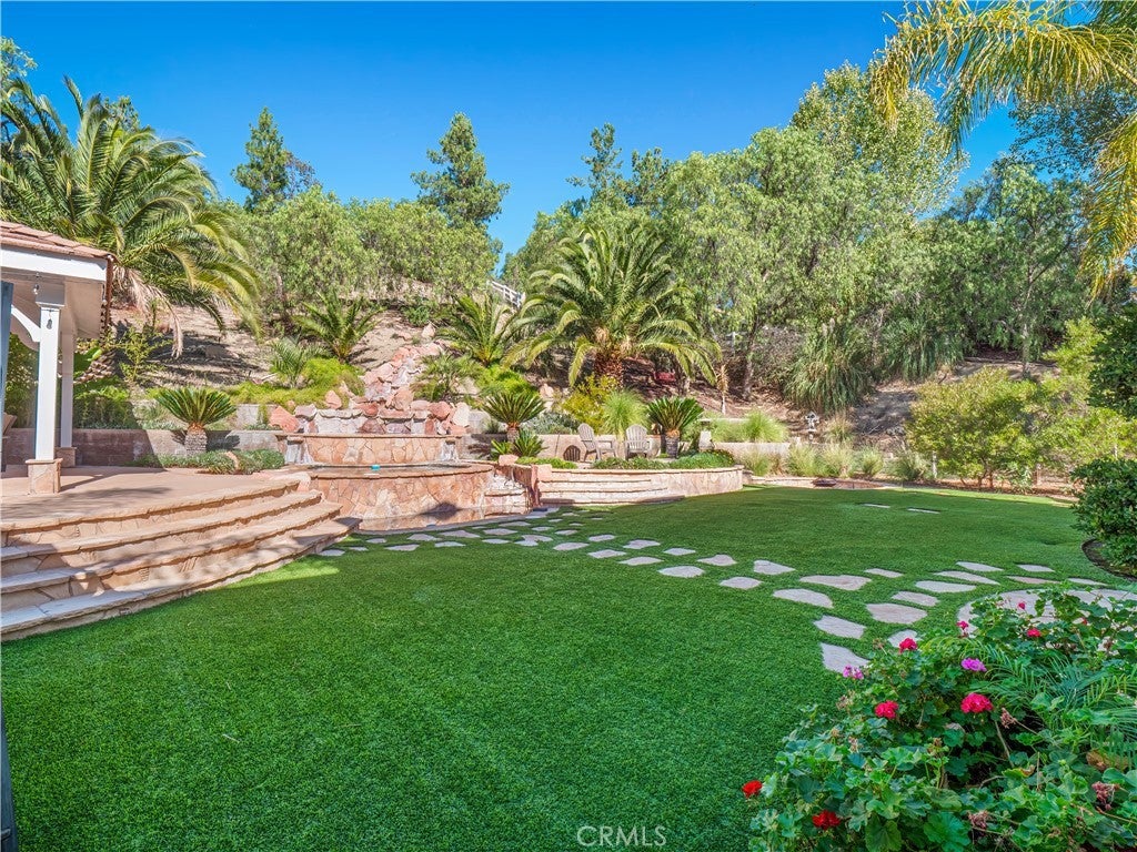 Exquisite Fully Remodeled 5 Bedroom, 3 Bath Sand Canyon Home with Over 4,000 Sqft, Primary with Retreat, Massive Bonus Room, Downstairs Bedroom, Office, and Full Bath, Owned Solar, Solar Back up Battery, 3 Car Garage with a Tropical Oasis Yard on a Cul-De-Sac! Step through the double-door entry into a grand living room featuring a captivating fireplace that opens to the elegant dining area. Interior highlights include crown molding, stunning chandeliers and designer light fixtures throughout, new flooring, new HVAC, new water heater, and shutters. Enjoy a large gourmet eat-in kitchen complete with a Wolf stove and microwave, Cove dishwasher, Sub-Zero refrigerator, expansive center island, farm sink, and a cozy breakfast nook. The kitchen opens to the inviting family room with a beautiful fireplace, custom hearth and mantel, built-in entertainment center, and French doors that lead to the tropical oasis yard. Adjacent to the family room is a built-in bar area with a wine refrigerator, perfect for entertaining. The main floor offers two bedrooms, a full bath, and a laundry room with storage cabinets and a utility sink. Upstairs, find a built-in desk area and bookcases off the landing. The double-door entry primary retreat showcases a fireplace, a large bonus room, and a spa-like ensuite with dual sinks and vanity area, a cast iron custom jet tub, and a glass-enclosed walk-in shower. Two additional bedrooms share a Jack-and-Jill bathroom with dual sinks, and there’s also a massive bonus room with built-in storage and a balcony offering stunning views. Step outside to your private tropical paradise featuring a built-in cooking station with a large bartop and plenty of seating, a huge gazebo, a tranquil waterfall flowing into the spa (with new safety gate and heater), and a large sunken firepit area perfect for gatherings. Located near Sand Canyon Golf Course, new shopping centers, and with easy freeway access — this home truly has it all! Don’t miss your opportunity to make this your New Home!