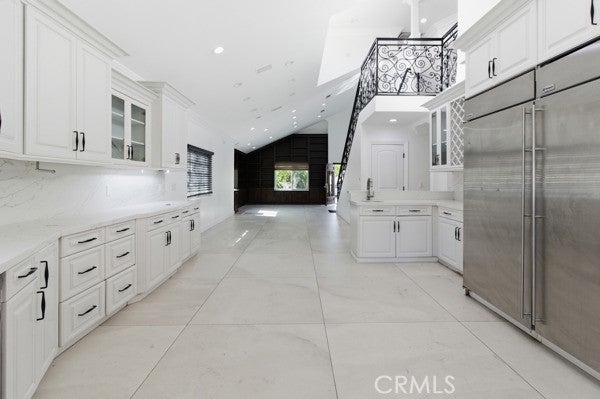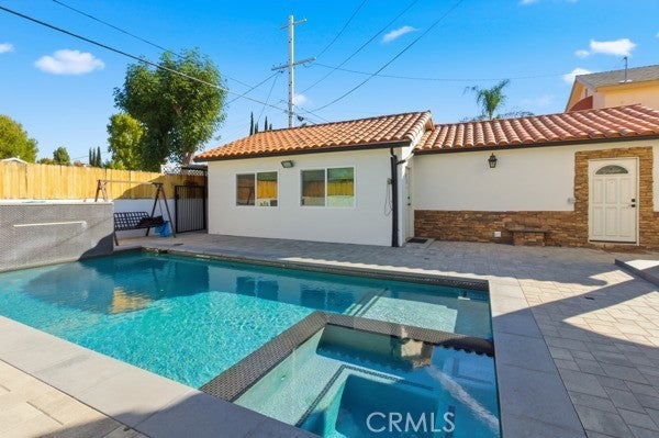A gorgeous south-of-the-boulevard gated Villa with a high ceiling, open floor plan, and lots of bookshelves, featuring bedrooms & bathrooms on both levels including the full detached guest house. Smooth stucco, tile roof, a long driveway & fruit trees all give this villa a spectacular look. Excellent floor-plan comfortably accommodates seven bedrooms. Interior features include extensive use of granite, marble and stone work with travertine floors throughout the entire home, LED recessed lights, high ceilings, ceiling fans in bedrooms, surround sound, & security camera system. Two master suites (one upstairs & one downstairs), the incredible chef's kitchen features breakfast bar, custom cabinetry, stainless appliances including brand name gas range & a built in refrigerator. Guest room perfect for extended family or private office. Private, cozy backyard with covered patio fenced pool and a long drive for RV access and EV wall charger. Walking distance to the Blvd, freeway, shops, restaurants, and houses of worship.