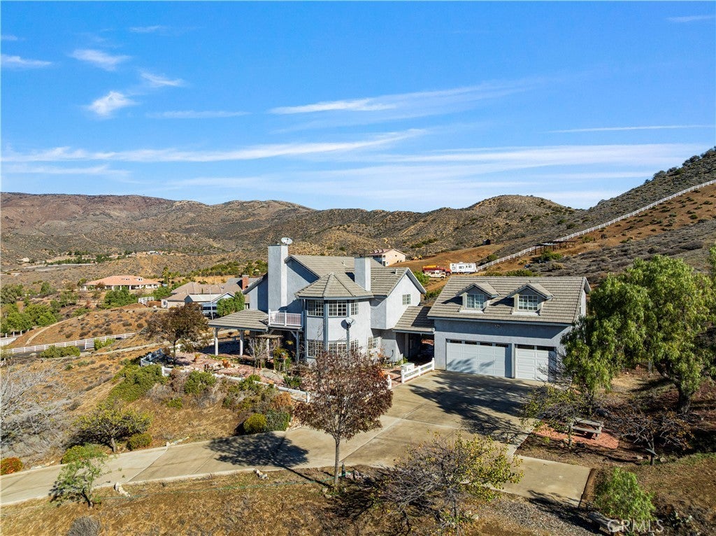 Welcome to your beautifully crafted hilltop home. With over 3,598 square feet of living space, this home offers the perfect blend of comfort, elegance, and breathtaking views. Located off a paved road it’s just minutes from the freeway, yet feels like your own peaceful oasis. Step onto the wraparound porch and take in unobstructed 180° views of the mountains, rolling hills, ranches, and the town below—a picture-perfect backdrop for morning coffee or evening sunsets. Inside, a warm and inviting entryway greets you, featuring a beautiful staircase that leads to four generously sized bedrooms, each with its own walk-in closet. The primary suite is a true retreat, complete with a cozy sitting area, fireplace, and a private balcony where you can savor the serene surroundings. The kitchen is bright and welcoming, with an eat-in area and a spacious walk-in pantry. Open to a large family room, it is sure to be the hub for family and friends. The first floor also features a formal dining room ideal for hosting gatherings large or small, a formal living room, a convenient half bath, and a laundry room. This floor plan was thoughtfully designed for everyday life and entertaining. A breezeway connects the main house to a 3-car garage with a large recreation space above it-- offering endless possibilities, whether you’re looking for a game room, studio, or future guest suite. With its thoughtful design, incredible views, and warm, inviting atmosphere, this home isn’t just a place to live—it’s a place to truly feel at home.