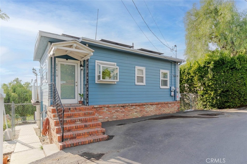 Exceptionally priced single-family home in the heart of Chatsworth This unique single-family home offers 3 bedrooms and 2 baths across approximately 1,100 sq. ft. of living space on a 3,547 sq. ft. lot. The bright and airy main level features French doors leading to the primary suite with a remodeled bath and shower. Enjoy double-pane windows with custom wood shutters framing one-of-a-kind mountain views. The outside features a wrap-around deck, inviting you to soak in the peaceful lush hillside and magical sunsets. Two spiral staircases add architectural character, one leading to a relaxing spa area and the other to the second and third bedroom and bath (buyer to verify). Ideal for those seeking a more self-sufficient lifestyle, this property is equipped with propane, septic, solar panels, and a Tesla Powerwall backup battery. Home offers ample parking for up to six vehicles.
