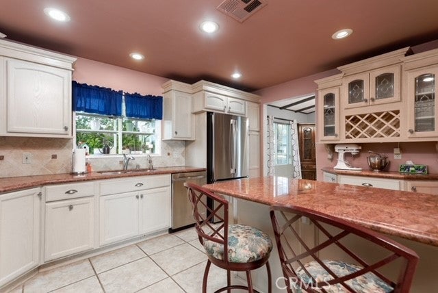 Welcome home to 22128 Barbacoa, a beautifully updated residence offering a bright, wide-open floor plan. Originally a three-bedroom home, it has been thoughtfully reconfigured into a spacious two-bedroom layout, providing flexibility and room to grow. The expansive kitchen is a true centerpiece, featuring granite countertops, a large center island, a pop-up appliance cabinet perfect for a KitchenAid, and convenient slide-out drawers for effortless organization. The primary suite boasts a fully remodeled bathroom with a jetted soaking tub, dual sinks, and stylish tile flooring, creating a relaxing retreat. Additional highlights include a newer AC system, paid solar, and a Tesla battery system, offering both comfort and energy efficiency. Situated in a wonderful neighborhood with pleasant views, this home truly has so much more to offer.