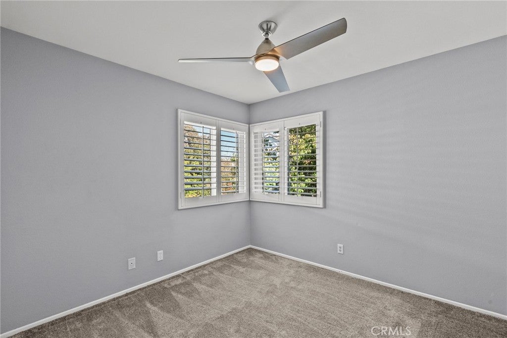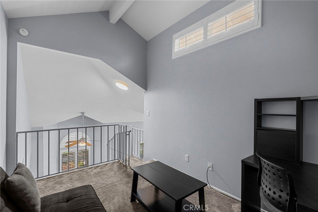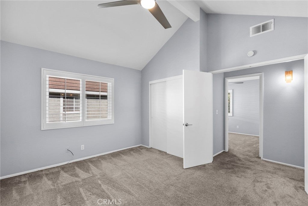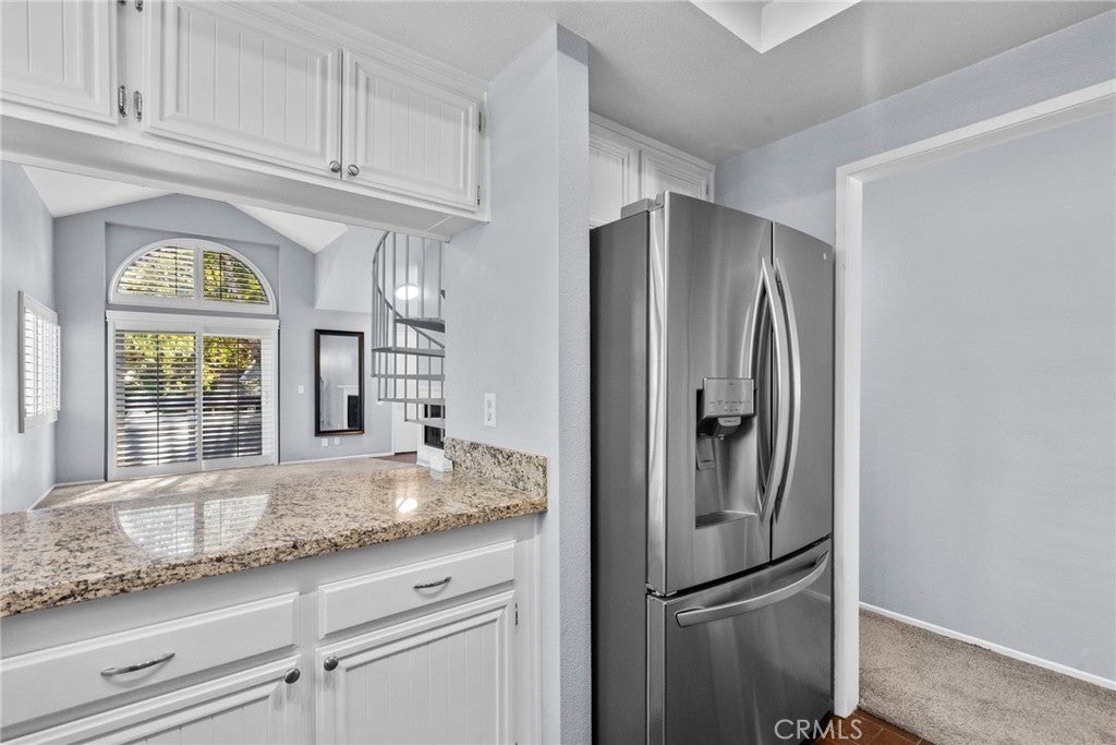 Welcome home to one of the most desirable locations in the community! An exceptional upper end unit offering rare privacy, abundant natural light, and an expansive layout that lives more like a single-family residence than a condo. This stunning home features 3 bedrooms plus a spacious loft, perfect for a home office, media lounge, or guest retreat. Step inside to discover a beautifully remodeled kitchen appointed with granite countertops, brand new LG smart stainless steel appliances, and modern LED recessed lighting. Both bathrooms have been tastefully upgraded with newer granite surfaces, updated plumbing and lighting fixtures. Soaring vaulted ceilings over 15 feet high create an airy and open atmosphere, complemented by NEW dual-pane windows, custom plantation shutters, and a NEW sliding glass door that enhance comfort, efficiency, and timeless style. Additional upgrades include a newer HVAC system, newer water heater, and fresh custom interior paint in some areas. Everyday convenience continues with private in-unit laundry featuring a NEW full-size MAYTAG washer and dryer. Enjoy peaceful mornings and relaxing evenings on your private balcony overlooking the serene greenbelt, with the pool nearby yet positioned for quiet enjoyment. The extra-spacious private 2-car garage offers both practicality and flexibility for parking, storage, or hobbies. Truly move-in ready, this residence offers an elevated level of comfort, convenience, and lifestyle that is hard to match. Community amenities include multiple pools, spas, tennis courts, playgrounds, and beautifully maintained plush greenbelt areas, all surrounded by the convenience of nearby shopping, dining, entertainment, top-rated schools, biking and hiking trails, freeway access, and Metrolink stations. No Mello Roos. HOA coverage of water, trash, exterior maintenance, and insurance. Schedule your private showing today, this is one you don’t want to miss.