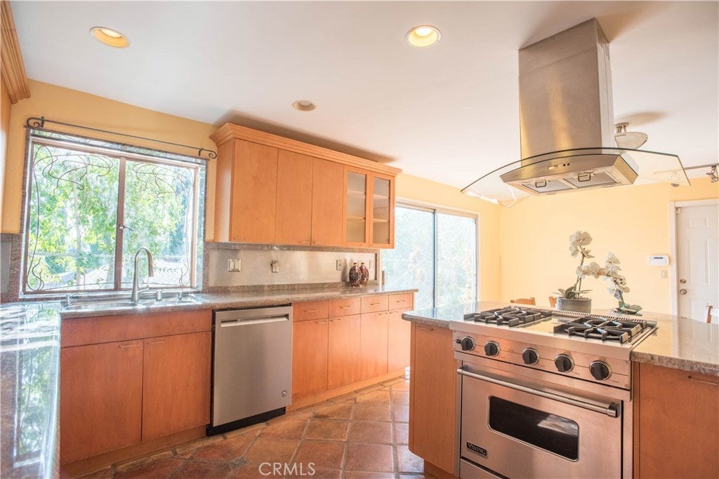 Spacious 3-Bedroom, 2-Bathroom Home with Breathtaking Views in a Highly Desirable Neighborhood. Step into this stunning home featuring an open floor plan and elegant "Spanish Paver" flooring throughout. The family room invites warmth and relaxation with its cozy fireplace, while designer windows in the kitchen, family room, and dining area create a bright, welcoming ambiance. The updated kitchen is a chef’s dream, boasting a center island, built-in breakfast area, marble countertops, stainless steel appliances—including a Viking stove and refrigerator—and ample cabinet space for all your storage needs. Enjoy three generously sized bedrooms with hardwood floors and spacious closets. The master suite features a walk-in closet and designer bathroom, offering a luxurious retreat. Take in unobstructed panoramic views of city lights and mountains from the family room and formal dining room. The backyard is perfectly sized for entertaining, making this home ideal for gatherings and outdoor living. Additional features include an attached 2-car garage with washer and dryer, access to excellent schools, proximity to the freeway, and the tranquility of a quiet neighborhood. This home effortlessly combines comfort, style, and spectacular views—truly a must-see!
