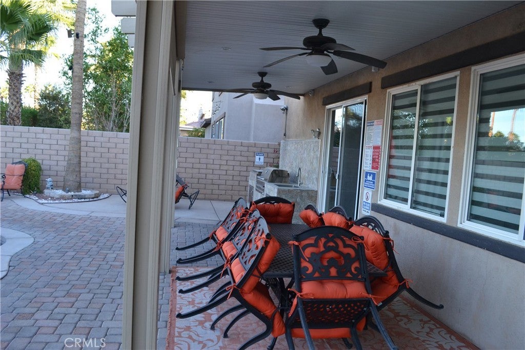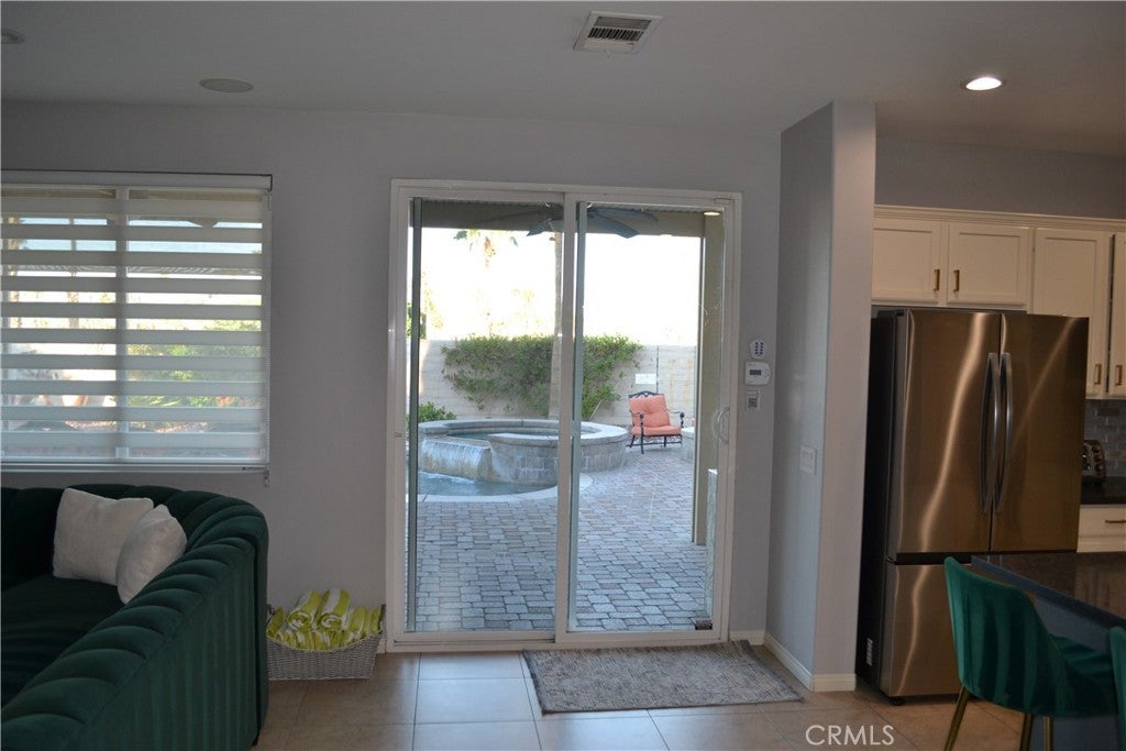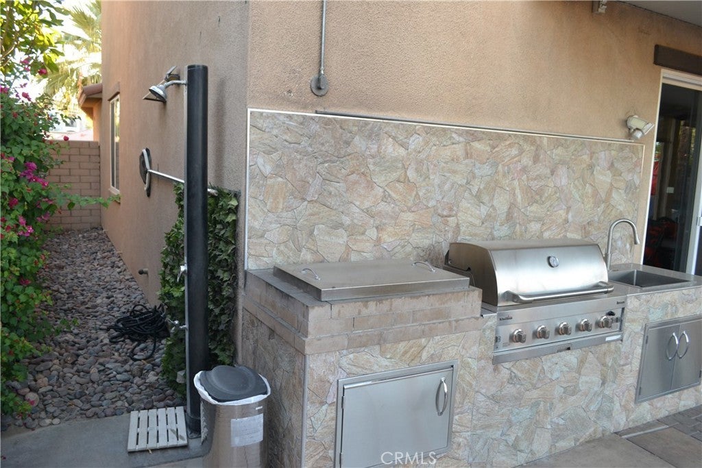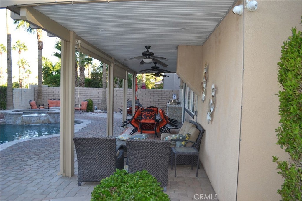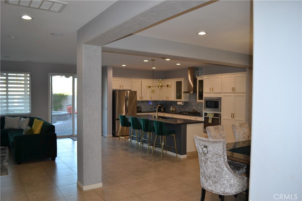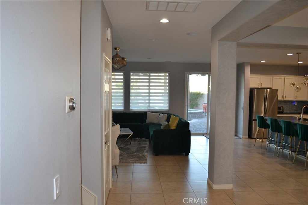 Welcome to Terra Lago! Luxurious 2-story home with 5 bedrooms, 2.5 baths, and a full-size saltwater pool & spa. Fully licensed STR with stunning mountain, sunset & city-light views. Bright open floor plan features great room with fireplace and upgraded entertainer’s kitchen with quartz counters, gold-trim cabinetry, custom backsplash, farmhouse sink, stainless appliances, new fridge, built-in cooktop & breakfast island. Large dining area with built-in credenza, wine & beverage fridges. Ceramic tile & luxury laminate flooring—no carpet! Motion lighting, surround sound & custom fixtures throughout. Private yard with pavers, covered patio w/misters & fans, outdoor shower, BBQ island, fire pit, and new pool heater. Beautifully landscaped front & back. Leased solar (removable) plus 2-car garage & golf-cart space. Your desert oasis awaits!