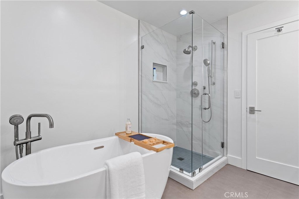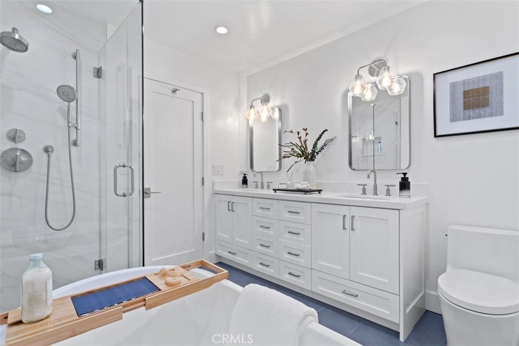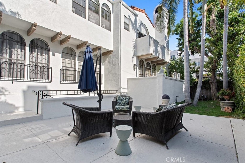 Location, Location, Location!! This fully updated and spacious 2-bed, 2.5-bath contemporary townhome in the heart of WeHo offers ample living space and abundant natural lighting. The interior features a gorgeous living room, dining area, immaculate fireplace and bar. With recessed lighting throughout, engineered hardwood floors, and two private patios in the living space and primary bedroom, this stunning home is an entertainer's dream. The kitchen boasts custom cabinetry and professional grade stainless steel appliances. Adjacent to the kitchen is a powder room for your guests and a stairway that provides direct access to the garage, including two side by side parking spaces. As you head upstairs, the primary suite features high ceilings, exquisite en-suite bath with separate tub and shower, huge walk-in closet, and private balcony, resembling a hotel-style luxury retreat. The guest bedroom also unveils high ceilings with more natural light and adjacent bath with updated features. This lovely unit also includes washer/dryer, and garage with direct access to the unit. The amenities include on-site gym and a small grassy area just behind the unit, perfect for walking your furry friends!
