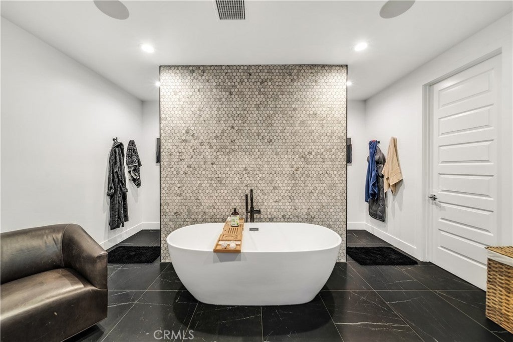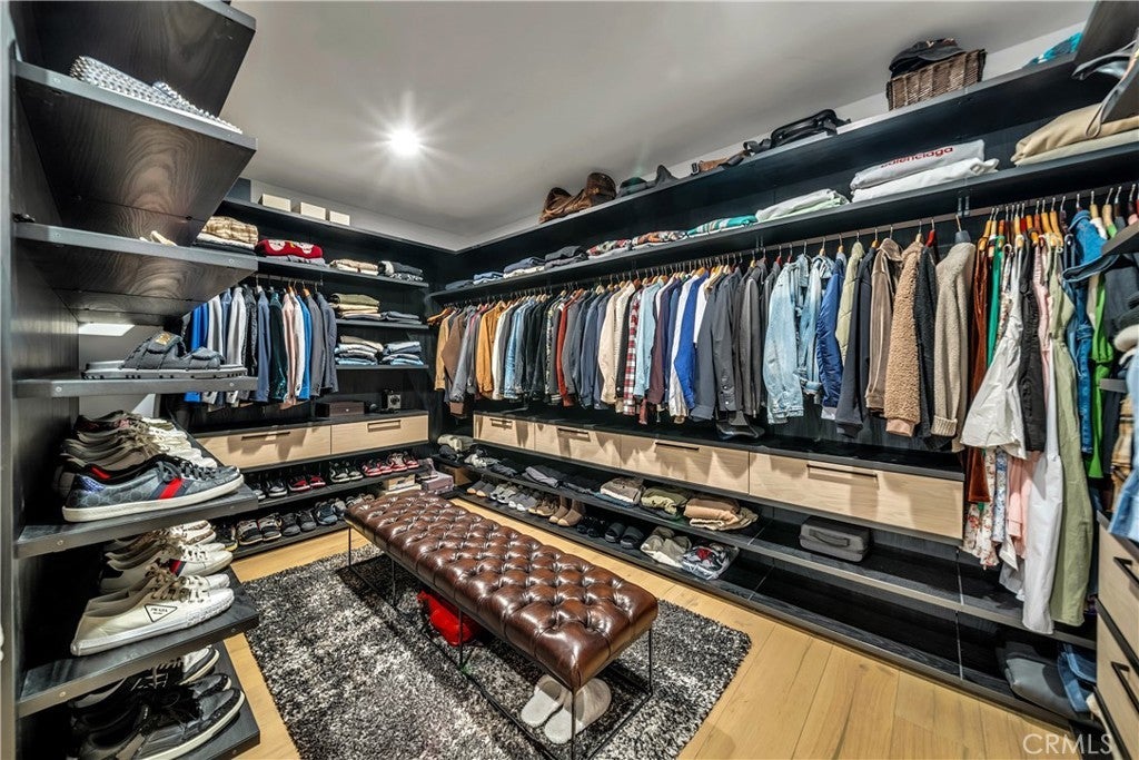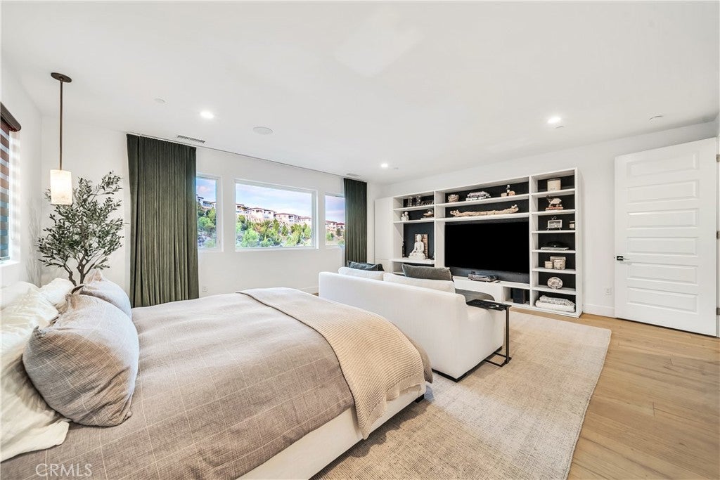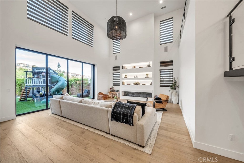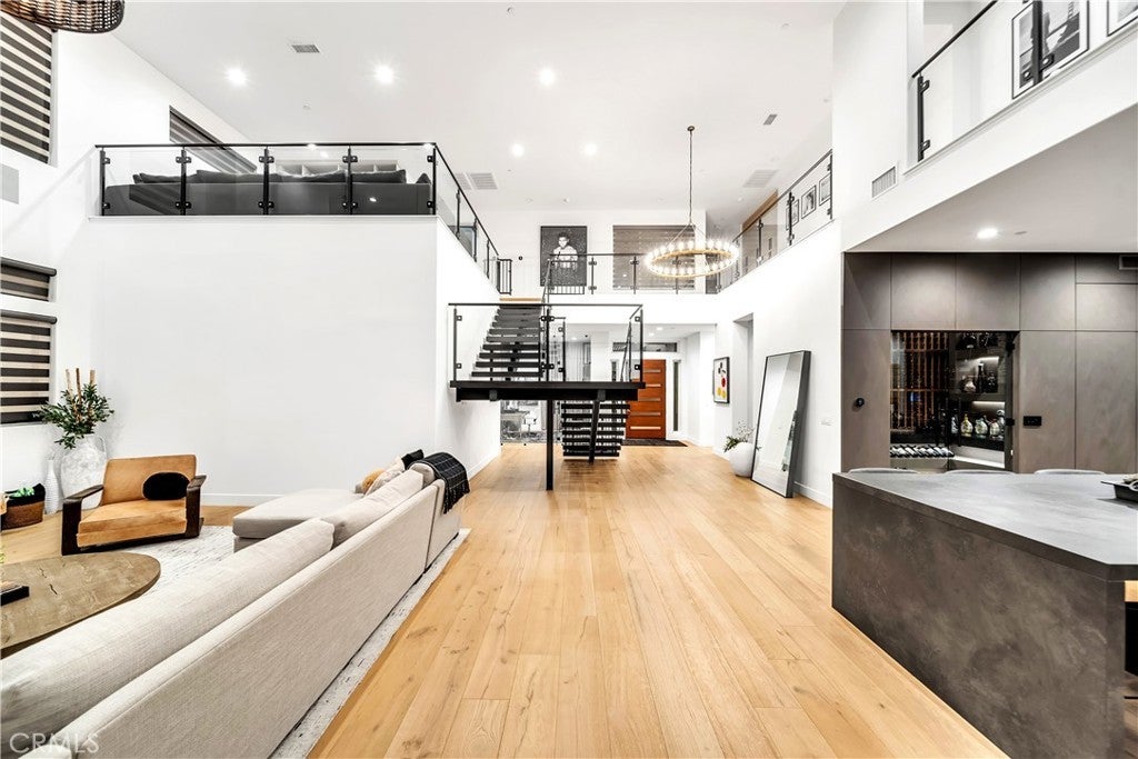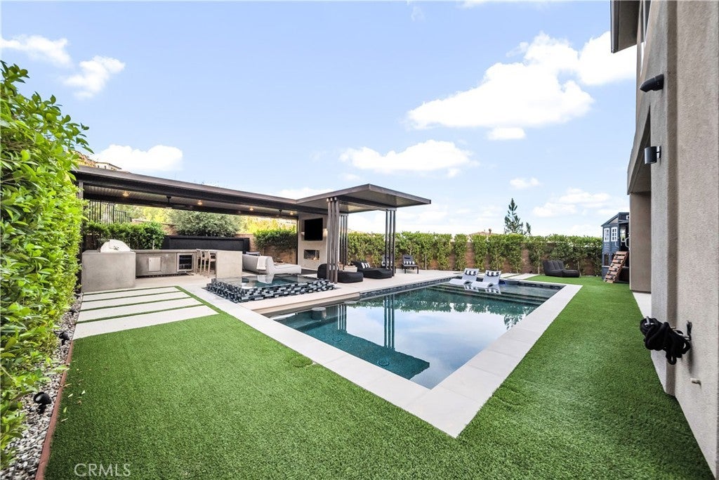 This luxurious residence sits on nearly 19,000 square feet, one of the largest lots available. Showcasing meticulously landscaped grounds with a grand driveway and a charming walkway lined with expensive age-old olive trees. Located behind the gates in the prestigious Westcliffe community, a guard gated enclave in the upscale Los Angeles suburb of Porter Ranch. This Vega floor plan- Cascades Collection is 4,932 square feet of living space, and it's no surprise that this layout is a favorite among many. As you enter, you’ll be captivated by the dramatic floating piano-black staircase, expansive 11-inch white oak flooring, and soaring ceilings that create an inviting atmosphere. This home offers five spacious bedrooms and five bathrooms, including a generous en-suite bedroom on the first floor with a retreat area. An elegant executive-style office, complete with double glass doors, provides an ideal executive workspace. The heart of the home is the state-of-the-art Elmar Cucine kitchen, known for its exquisite Italian craftsmanship. Featuring clay-finished and matte lacquer cabinets, a striking 20-foot custom porcelain island, and high-end Thermador appliances. Flush sliding pocket doors and floor-to-ceiling windows enhance the open-concept layout, allowing natural light to flood the space. Enter the living area to find breathtaking 72 inch open shelving fireplace with custom floor-to-ceiling wall treatment. Ascend to the second floor to discover the expansive master suite, complete with dual vanities, a walk-in shower, and a luxurious freestanding soaking tub set against Italian oak finished vanity with white quartz countertops. Four additional bedrooms and three bathrooms with a loft area featuring custom built-ins serving as movie room. Step outside to your private backyard oasis, featuring a pebble Fina pool and spa, two fire pits, an oversized recessed patio lounge, a BBQ center, tranquil waterfall feature and outdoor pool shower. Smart home with an integrated sound system, sonos speakers for seamless backyard entertaining, and OWNED SOLAR PANELS. This incredible home offers the ultimate blend of luxury and comfort in a sought-after community.