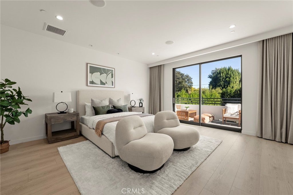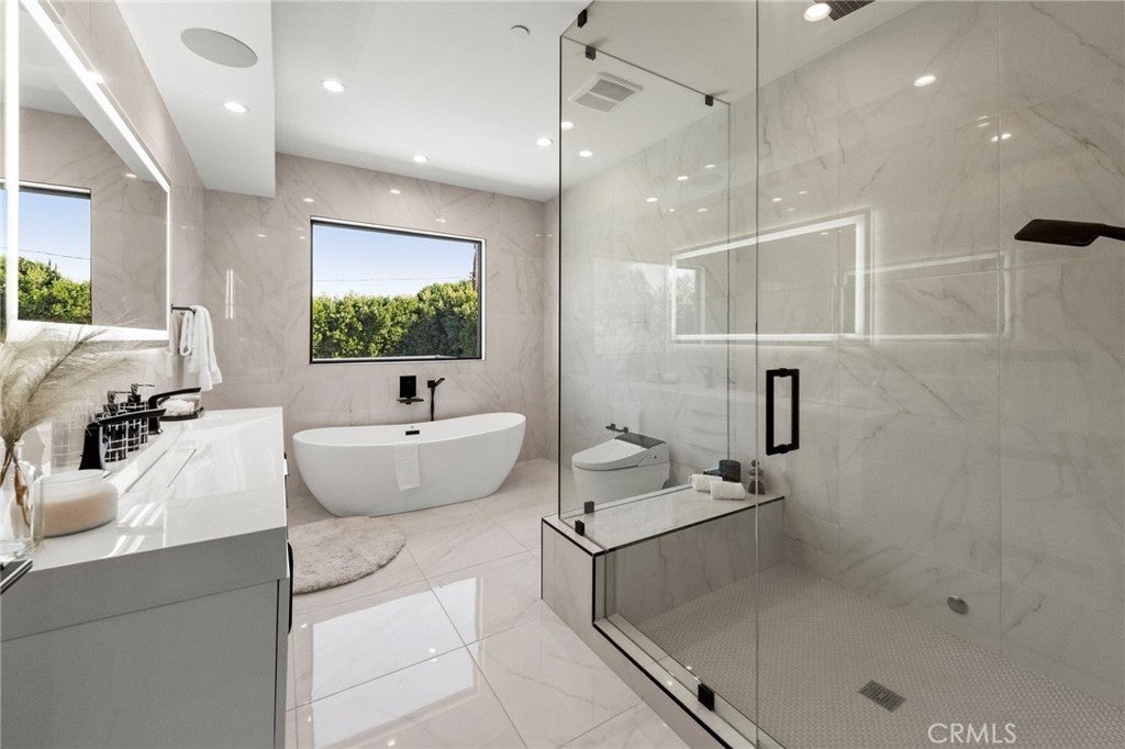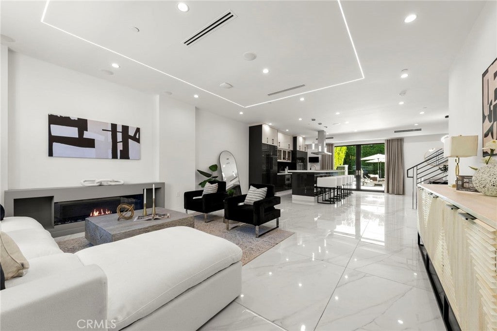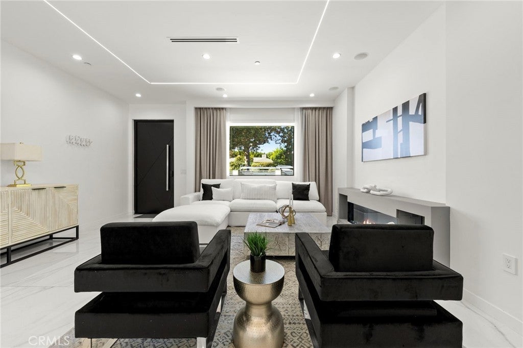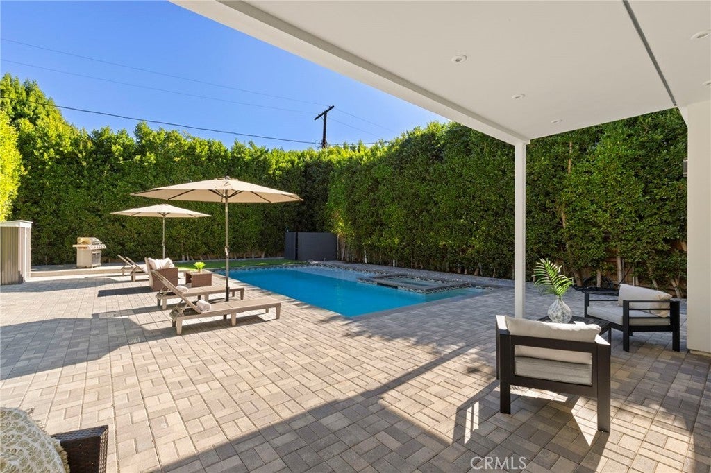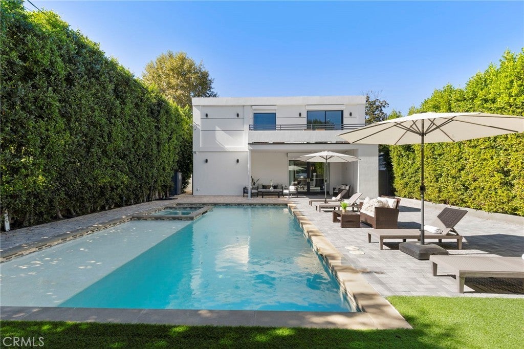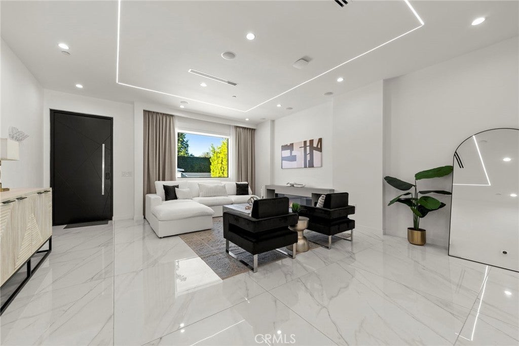 2024 Modern Architectural with Pool, Spa, Designer Closet, Paid Solar & Smart-Home Luxury in Carpenter School District. This 2024 modern architectural residence defines sophistication, innovation, and comfort in one of Studio City’s most desirable neighborhoods. Located within the highly rated Carpenter Community Charter School District, the home offers nearly 2,900 square feet of contemporary living space behind sleek automated gates, combining privacy, sustainability, and elegance with seamless indoor-outdoor flow. The open-concept main level is anchored by a dramatic living area featuring a linear fireplace and floating ceiling that enhance both scale and comfort. The dining area transitions effortlessly into the chef’s kitchen, showcasing a waterfall-edge quartz island, high-gloss European cabinetry, and premium built-in appliances. Every room is designed with modern precision, abundant natural light, and a harmonious sense of balance. Upstairs, the primary suite serves as a private sanctuary with a large terrace and a spa-inspired bathroom featuring a freestanding soaking tub, frameless glass shower, floating double vanity, and LED-lit mirrors. The custom walk-in closet rivals a high-end boutique, with glass-enclosed shelving, a central island, soft-close drawers, and integrated lighting. A secondary suite with its own private balcony and designer finishes completes the upper level. Sliding glass doors open to a tranquil backyard oasis surrounded by tall ficus hedges for complete privacy. The outdoor space features a fully automated pool and spa, multiple lounge areas, and a covered dining patio designed for effortless entertaining and relaxation. This home is powered by paid-off solar panels, offering energy efficiency and long-term savings. A fully integrated smart-home system allows control of lighting, climate, security, and pool settings from your phone. Additional features include wide-plank engineered flooring, skylights, designer bathrooms with matte black fixtures, a two-car garage with frosted glass door, gated driveway, and lush privacy landscaping. Just moments from Ventura Boulevard’s dining, boutiques, and entertainment, this residence embodies the pinnacle of modern California living—where architecture, technology, and sustainability meet in perfect harmony.