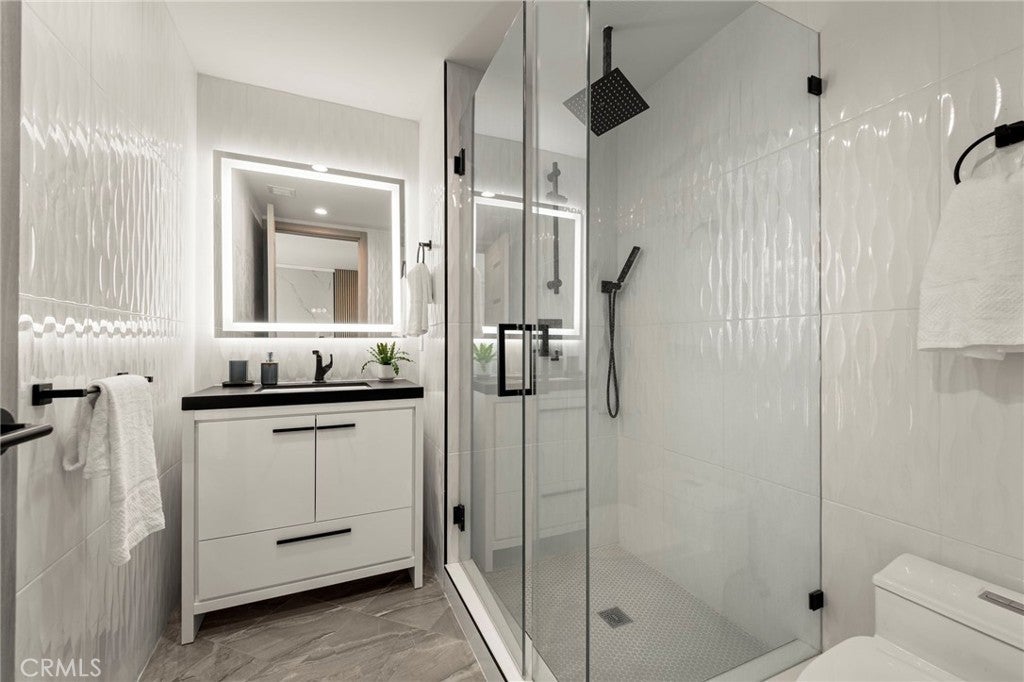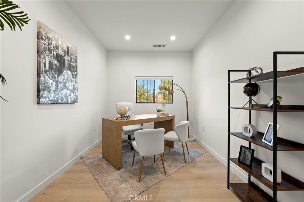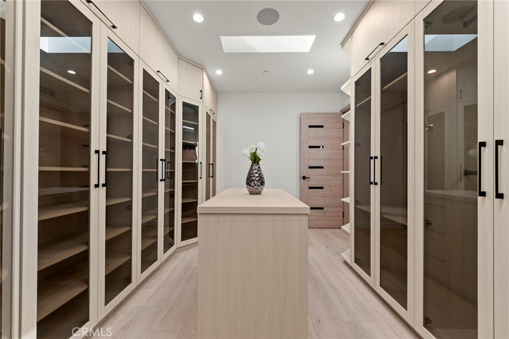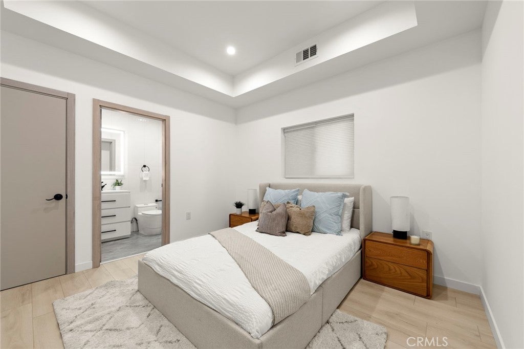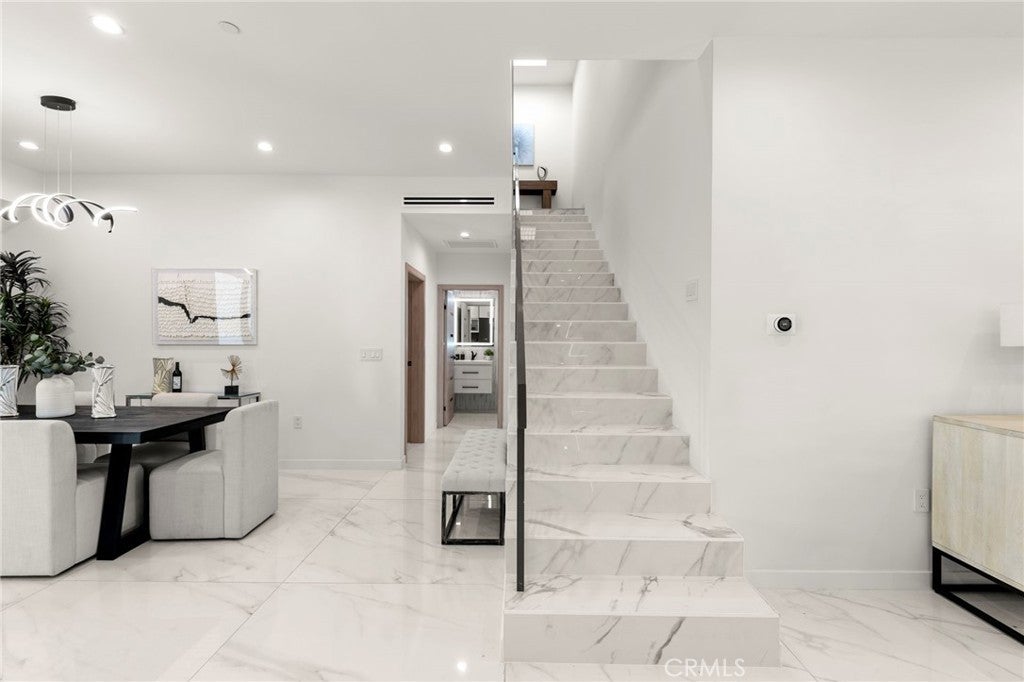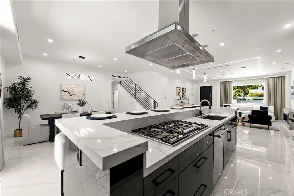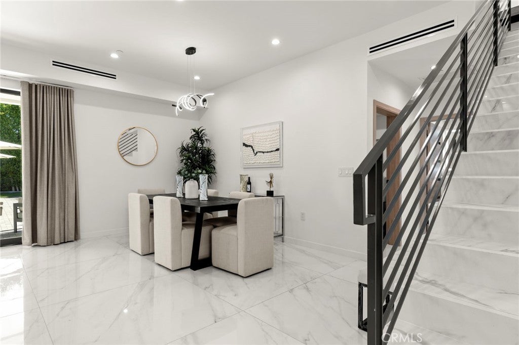2024 Modern Architectural with Pool, Spa, Designer Closet, Paid Solar & Smart-Home Luxury in Carpenter School District. This 2024 modern architectural residence defines sophistication, innovation, and comfort in one of Studio City’s most desirable neighborhoods. Located within the highly rated Carpenter Community Charter School District, the home offers nearly 2,900 square feet of contemporary living space behind sleek automated gates, combining privacy, sustainability, and elegance with seamless indoor-outdoor flow. The open-concept main level is anchored by a dramatic living area featuring a linear fireplace and floating ceiling that enhance both scale and comfort. The dining area transitions effortlessly into the chef’s kitchen, showcasing a waterfall-edge quartz island, high-gloss European cabinetry, and premium built-in appliances. Every room is designed with modern precision, abundant natural light, and a harmonious sense of balance. Upstairs, the primary suite serves as a private sanctuary with a large terrace and a spa-inspired bathroom featuring a freestanding soaking tub, frameless glass shower, floating double vanity, and LED-lit mirrors. The custom walk-in closet rivals a high-end boutique, with glass-enclosed shelving, a central island, soft-close drawers, and integrated lighting. A secondary suite with its own private balcony and designer finishes completes the upper level. Sliding glass doors open to a tranquil backyard oasis surrounded by tall ficus hedges for complete privacy. The outdoor space features a fully automated pool and spa, multiple lounge areas, and a covered dining patio designed for effortless entertaining and relaxation. This home is powered by paid-off solar panels, offering energy efficiency and long-term savings. A fully integrated smart-home system allows control of lighting, climate, security, and pool settings from your phone. Additional features include wide-plank engineered flooring, skylights, designer bathrooms with matte black fixtures, a two-car garage with frosted glass door, gated driveway, and lush privacy landscaping. Just moments from Ventura Boulevard’s dining, boutiques, and entertainment, this residence embodies the pinnacle of modern California living—where architecture, technology, and sustainability meet in perfect harmony.