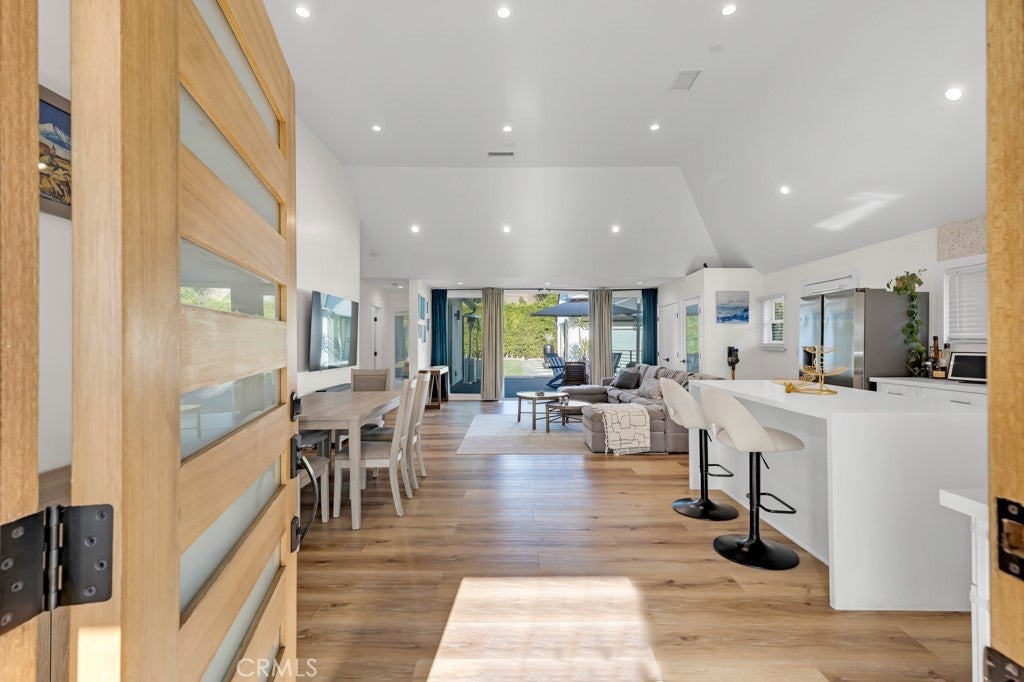Welcome to 1911 W. Kenneth Road, a beautifully renovated modern home in the highly sought-after 91201 zip code, just steps from charming Kenneth Village. This stylish 3-bedroom, 2-bath residence offers 1,638 sq. ft. of living space on a generous 7,028 sq. ft. flat lot with exceptional curb appeal and a finished detached garage with french doors that can be used as an office, studio, or future ADU. ADU! Vehicle charging station included. A plus is the Seller also has an RTI permit to build a 2 bedroom, 800 sq. ft. Step inside to discover a bright, open floor plan with high ceilings, newer flooring, and a seamless flow between the kitchen, dining, and the living area. The huge designer kitchen features stainless steel appliances, a beautiful backsplash and modern finishes. The spacious living room area has plenty of outdoor light coming in from the huge glass doors and a view of the gorgeous deck. The master bedroom has custom sliding doors that step to the private, luscious green backyard. The custom deck is perfect for indoor-outdoor entertaining. The property has copper plumbing, a tankless water heater, recessed lighting, Nest thermostat, and fresh interior and exterior paint. Located in one of Glendale’s most desirable neighborhoods, this move-in-ready gem combines luxury, comfort, and location. A must see!