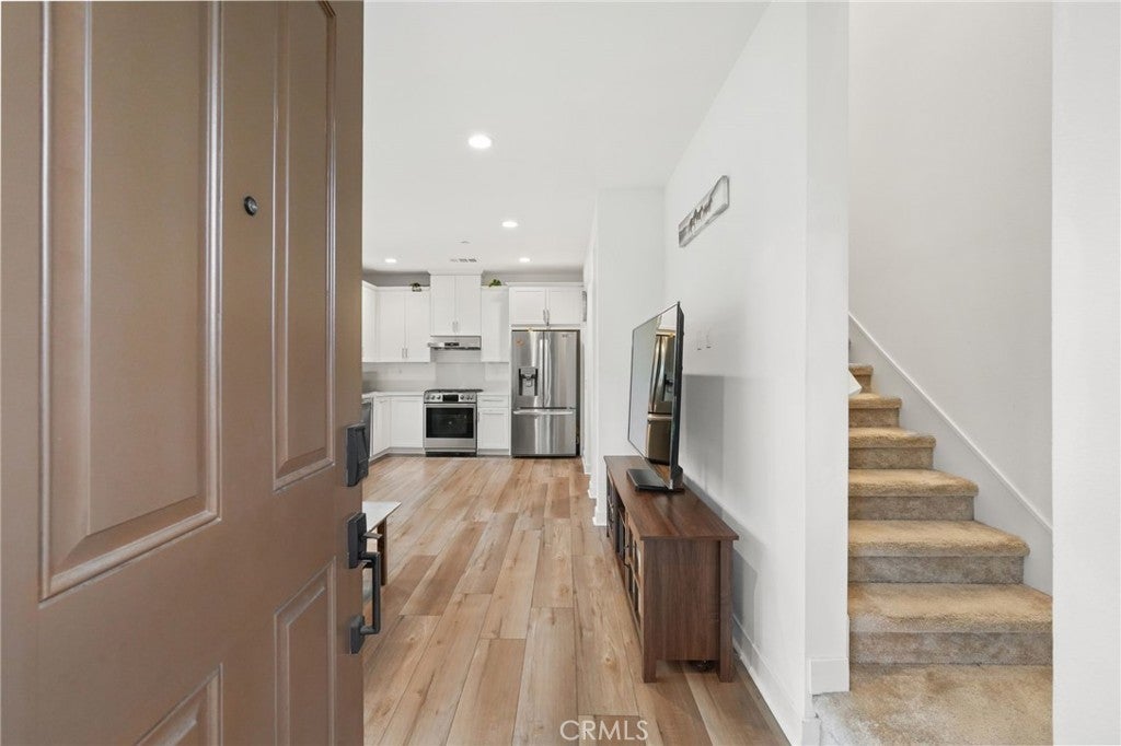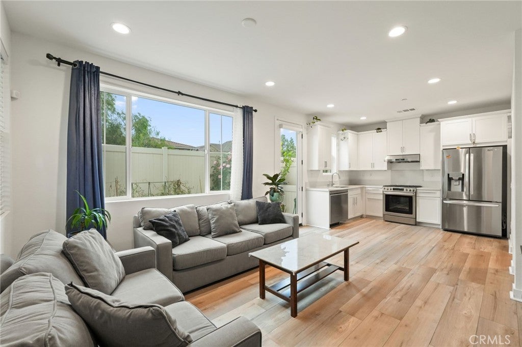 *PAID OFF solar panels* Luxurious 2023 End-Unit Townhome in the Heart of Simi Valley. Tucked away in a quiet, end-of-community location, this stunning 2023-built modern townhome offers the perfect blend of luxury and privacy. As a rare end-unit, it boasts open views, minimal shared walls, and close proximity to a serene park and walking path, all while being just minutes from the best of Simi Valley. Step inside to soaring ceilings, luxury vinyl plank flooring, and a bright open floor plan designed for modern living. The upgraded kitchen is a chef’s dream, featuring sleek quartz countertops, white cabinetry, and stainless steel appliances. The spacious living room is framed by custom shutters, picture-perfect windows, and a stylish ceiling fan, seamlessly connecting to the dining area and the expansive private backyard and side yard. Downstairs also includes a convenient powder room and direct access to a 2-car garage. Upstairs, you'll find three generously sized bedrooms. The primary suite is a true retreat, offering a spa-like bath with a large walk-in shower, dual vanities, and a spacious walk-in closet. A separate laundry room upstairs adds everyday convenience. Additional highlights include: Tankless water heater, HVAC, and furnace – all just 2 years old. With its prime location, high-end upgrades, and attention to detail, this move-in-ready townhome is a rare opportunity in today’s market. Don’t miss your chance to own this exceptional property in one of Simi Valley’s most desirable communities!