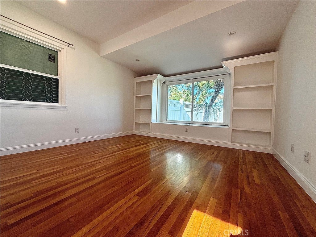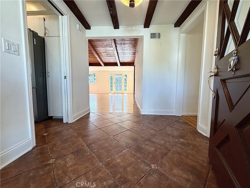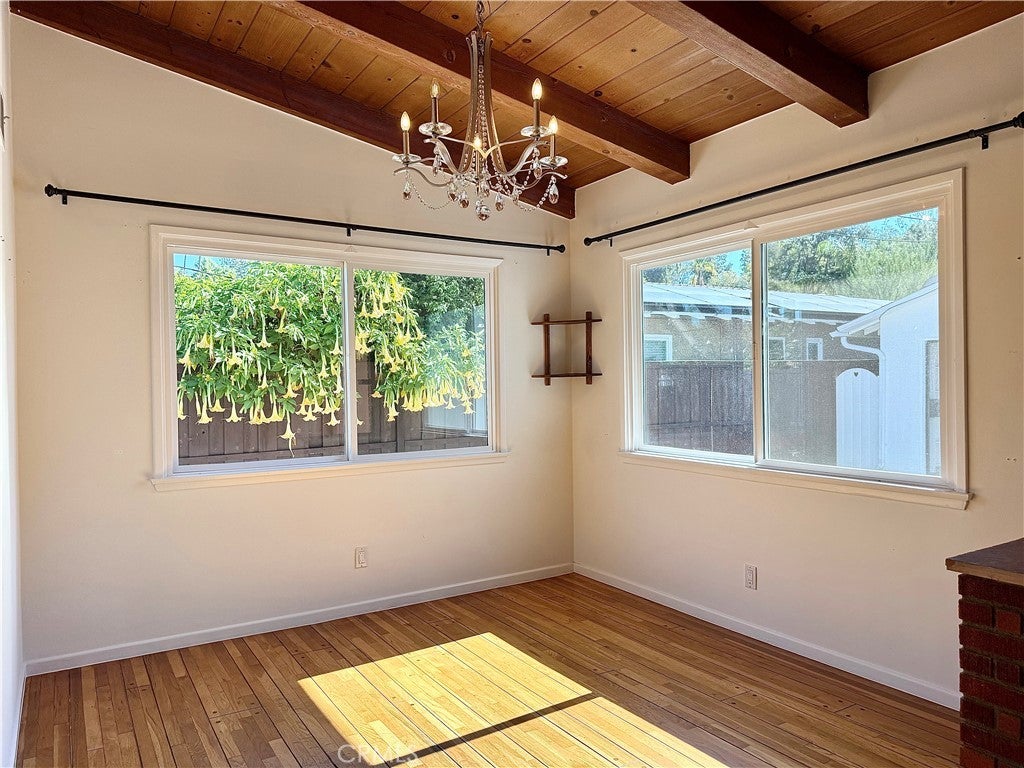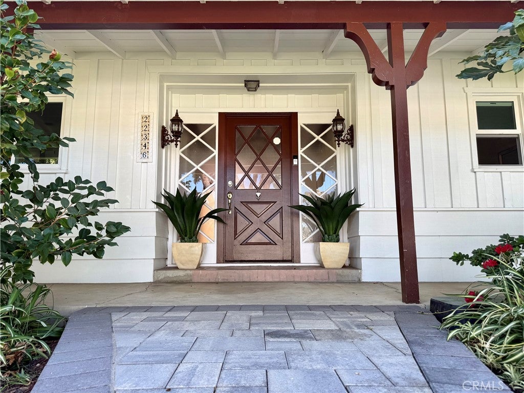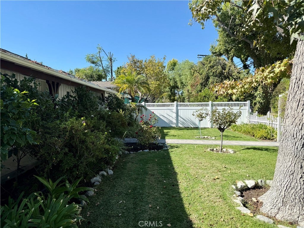 Through a beautifully landscaped garden, on the quietest part of Burbank Boulevard, we are proud to offer this mid-century estate for lease. The common living spaces feature beautiful wood floors and soaring ceilings with gorgeous beams, every corner suffused with natural light. The freshly updated kitchen features stainless steel appliances, gas range, and a lovely eat-in dining nook. The first oversized bedroom grants access to the private backyard with high ceilings and skylight, and the second bedroom features gorgeous built-ins surrounding the bay window with a bench overlooking the lush front yard. Your primary bedroom comes with three large closets, your own personal air conditioning if you don't need to cool the rest of the home, direct backyard access, and an attached bathroom with a spacious soaking tub and luxurious shower. The backyard oasis includes a mature avocado tree, complete privacy, and a two-car garage with laundry room attached. Come discover the perfect balance of home, location, and peace in Woodland Hills.