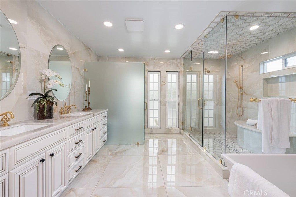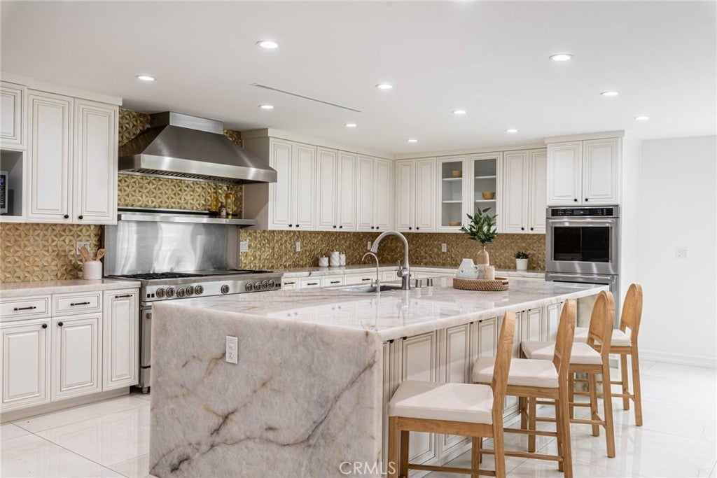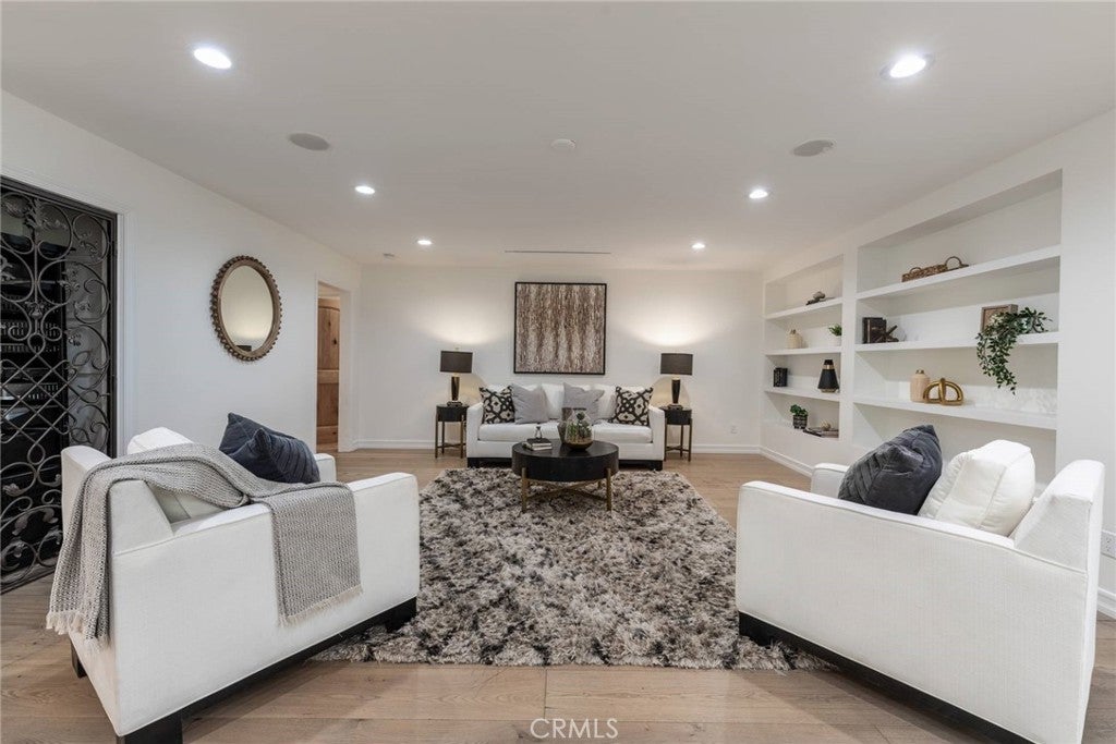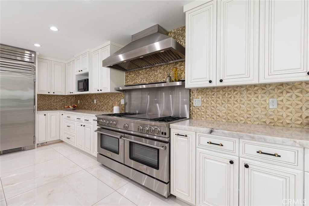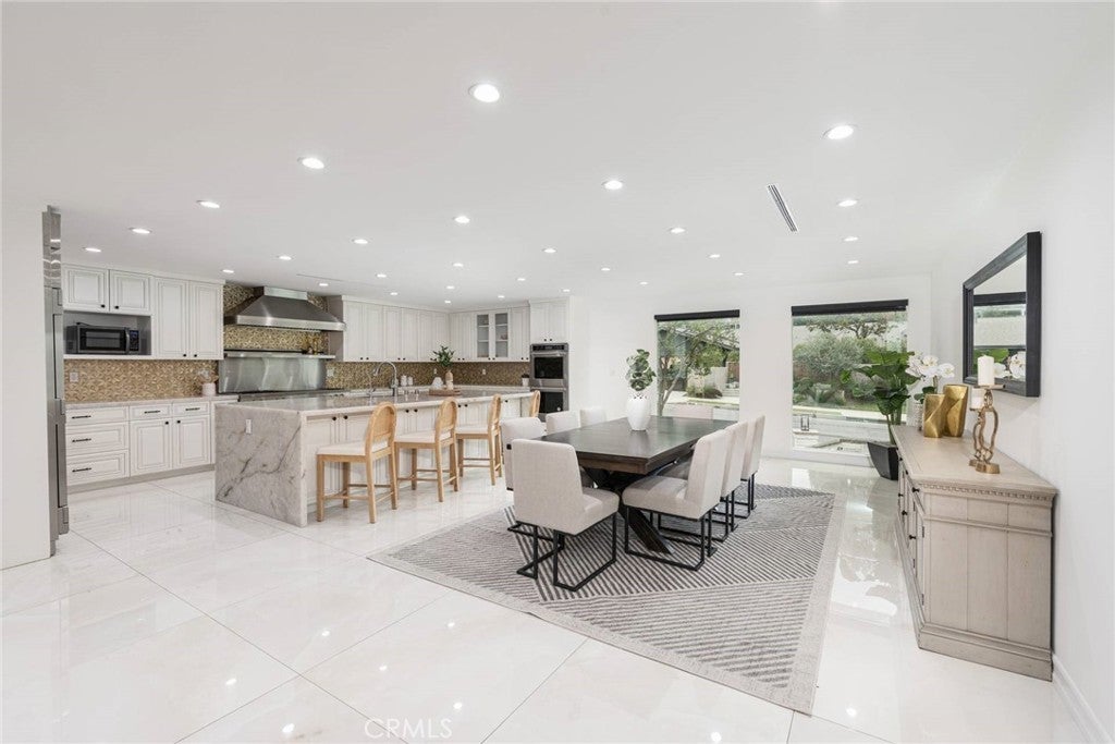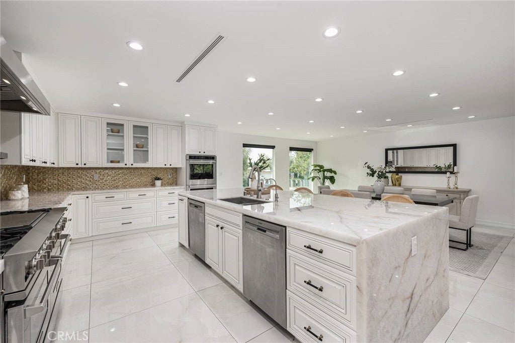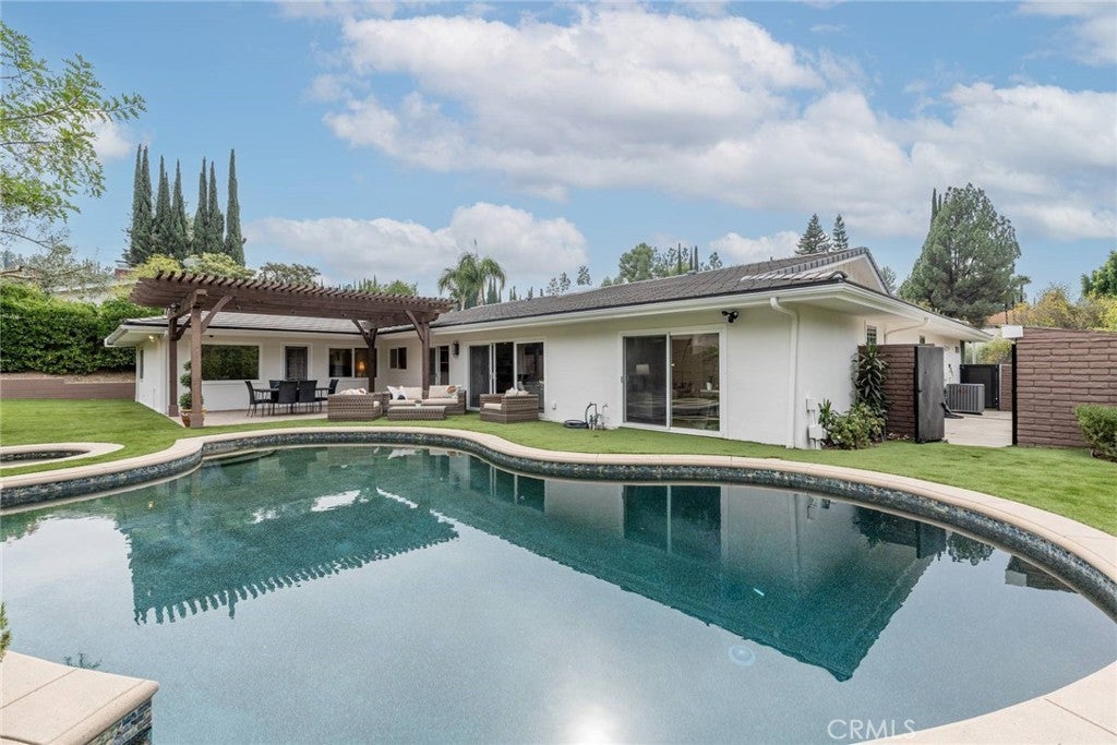 Experience the ultimate in refined privacy and exceptional value at this brilliantly reimagined single-level estate in Encino Hills’ exclusive Lake Encino enclave. Secluded on an expansive corner parcel spanning over one-third acre, this architectural gem seamlessly blends timeless sophistication with contemporary luxury, offering discerning buyers an extraordinary turnkey lifestyle. Originally crafted in 1964 and completely transformed with no detail overlooked, this 5-bedroom, 4.5-bath residence spans 4,338 square feet of thoughtfully curated living space. Wide-plank hardwood floors, expansive walls of glass, and an adaptable open floor plan bathe the interiors in natural light and invite effortless indoor-outdoor living…perfectly attuned to modern demands for versatility and privacy. Culinary enthusiasts will revel in the state-of-the-art gourmet kitchen, appointed with a dramatic quartzite waterfall island, Blue Star professional range, dual KitchenAid ovens, double Bosch dishwashers, a True Refrigerator with wine storage, integrated wine fridge, artisan tile work, and stunning marble flooring. The elegant atmosphere flows through the open-concept living and dining areas, highlighted by a sophisticated wet bar mirroring the kitchen’s bespoke finishes…an entertainer’s dream. Retreat to the sumptuous primary suite, where dual walk-in closets, a flexible bonus room (ideal for nursery, gym, or home office), and a spa-caliber bath with high-design fixtures, custom cabinetry, and indulgent soaking tub create a private sanctuary. Four spacious secondary bedrooms, a custom laundry center, butler’s pantry, and a meticulously finished garage further elevate the home’s everyday comfort and convenience. Resort-style oasis…a free-form heated Pebble Tech pool with separate spa, professional-grade BBQ, refrigerator, pergola covered patio, and meticulously landscaped, low-maintenance grounds set the stage for elegant alfresco dining and year-round relaxation, all in seclusion bestowed by mature landscaping and the property’s privileged placement. Leading-edge home systems…fully owned solar energy (including solar pool heating), dual Navien tankless water heaters, 200-amp electrical service, built-in speakers, and a comprehensive alarm system ensures security, efficiency, and sustainability. Situated on one of Lake Encino’s most coveted streets, this rare offering effortlessly blends energy independence, magazine-worthy entertaining spaces, and the ultimate in privacy.