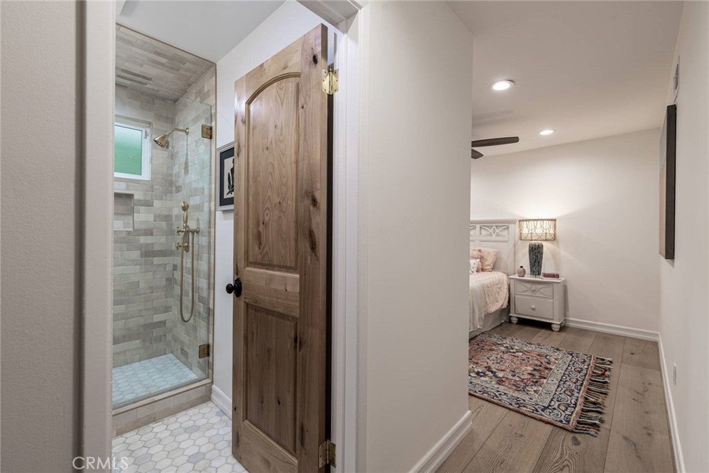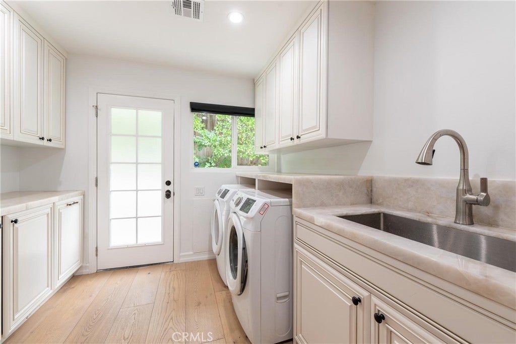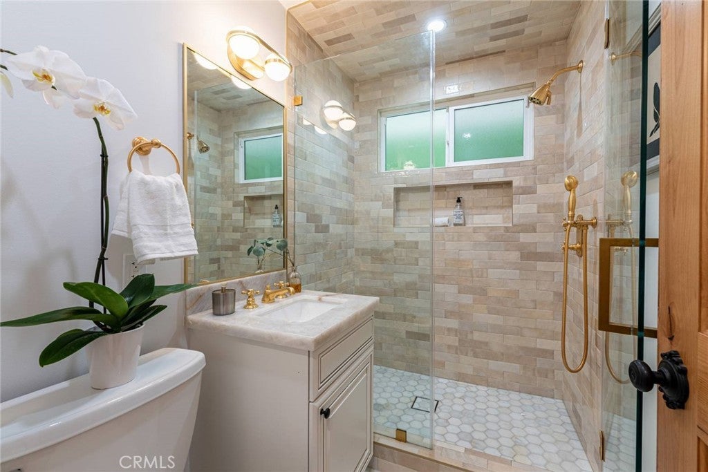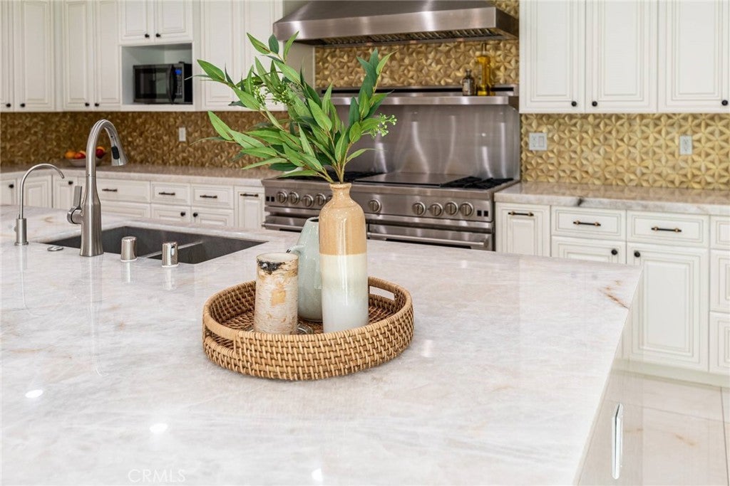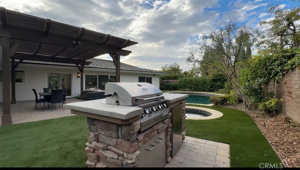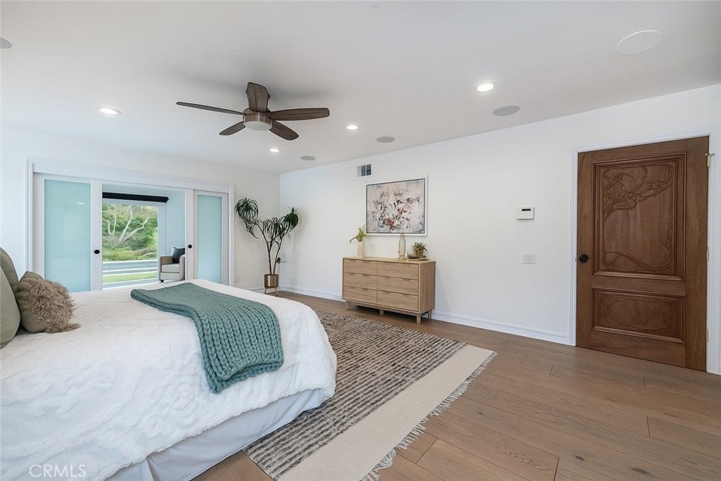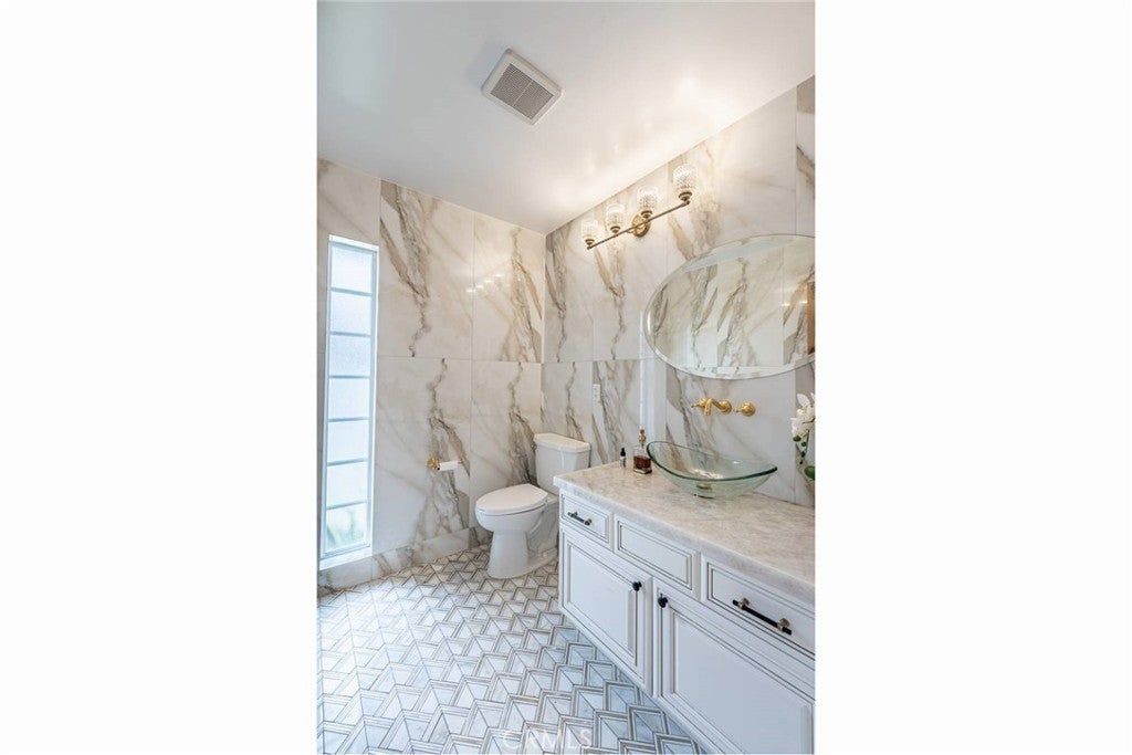 Experience the ultimate in refined privacy and exceptional value at this brilliantly reimagined single-level estate in Encino Hills’ exclusive Lake Encino enclave. Secluded on an expansive corner parcel spanning over one-third acre, this architectural gem seamlessly blends timeless sophistication with contemporary luxury, offering discerning buyers an extraordinary turnkey lifestyle. Originally crafted in 1964 and completely transformed with no detail overlooked, this 5-bedroom, 4.5-bath residence spans 4,338 square feet of thoughtfully curated living space. Wide-plank hardwood floors, expansive walls of glass, and an adaptable open floor plan bathe the interiors in natural light and invite effortless indoor-outdoor living…perfectly attuned to modern demands for versatility and privacy. Culinary enthusiasts will revel in the state-of-the-art gourmet kitchen, appointed with a dramatic quartzite waterfall island, Blue Star professional range, dual KitchenAid ovens, double Bosch dishwashers, a True Refrigerator with wine storage, integrated wine fridge, artisan tile work, and stunning marble flooring. The elegant atmosphere flows through the open-concept living and dining areas, highlighted by a sophisticated wet bar mirroring the kitchen’s bespoke finishes…an entertainer’s dream. Retreat to the sumptuous primary suite, where dual walk-in closets, a flexible bonus room (ideal for nursery, gym, or home office), and a spa-caliber bath with high-design fixtures, custom cabinetry, and indulgent soaking tub create a private sanctuary. Four spacious secondary bedrooms, a custom laundry center, butler’s pantry, and a meticulously finished garage further elevate the home’s everyday comfort and convenience. Resort-style oasis…a free-form heated Pebble Tech pool with separate spa, professional-grade BBQ, refrigerator, pergola covered patio, and meticulously landscaped, low-maintenance grounds set the stage for elegant alfresco dining and year-round relaxation, all in seclusion bestowed by mature landscaping and the property’s privileged placement. Leading-edge home systems…fully owned solar energy (including solar pool heating), dual Navien tankless water heaters, 200-amp electrical service, built-in speakers, and a comprehensive alarm system ensures security, efficiency, and sustainability. Situated on one of Lake Encino’s most coveted streets, this rare offering effortlessly blends energy independence, magazine-worthy entertaining spaces, and the ultimate in privacy.