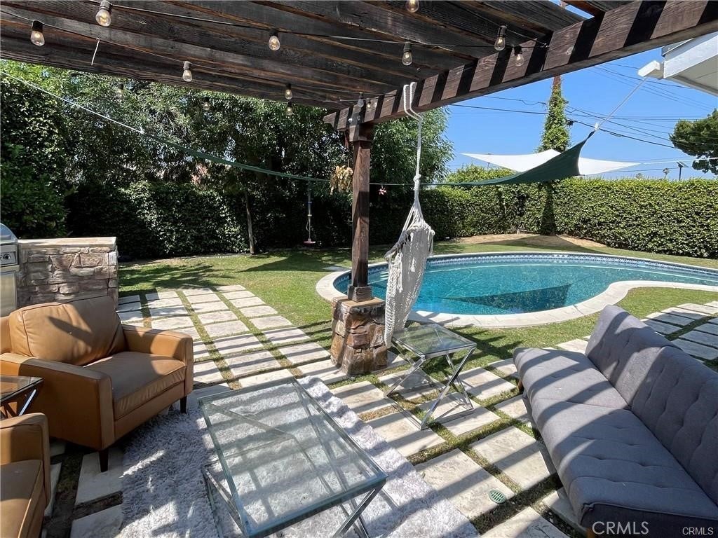 *REMODELED BATHROOMS* Beautifully upgraded 4-bed, 2-bath home with over 2,100 sqft on a quiet, tree-lined street in prime Winnetka. Features include a chef’s kitchen with marble counters and stainless steel appliances, formal living and dining rooms, spacious family/playroom, and dual-sided fireplace. The large primary suite offers a walk-in closet and Roman-style bath. Enjoy a private backyard with a pool, built-in stone BBQ, and lush landscaping—perfect for entertaining. Detached 2-car garage, recessed lighting, crown molding, and energy-efficient windows throughout. Don’t wait—call today to schedule your private tour! Available short term - price will vary.